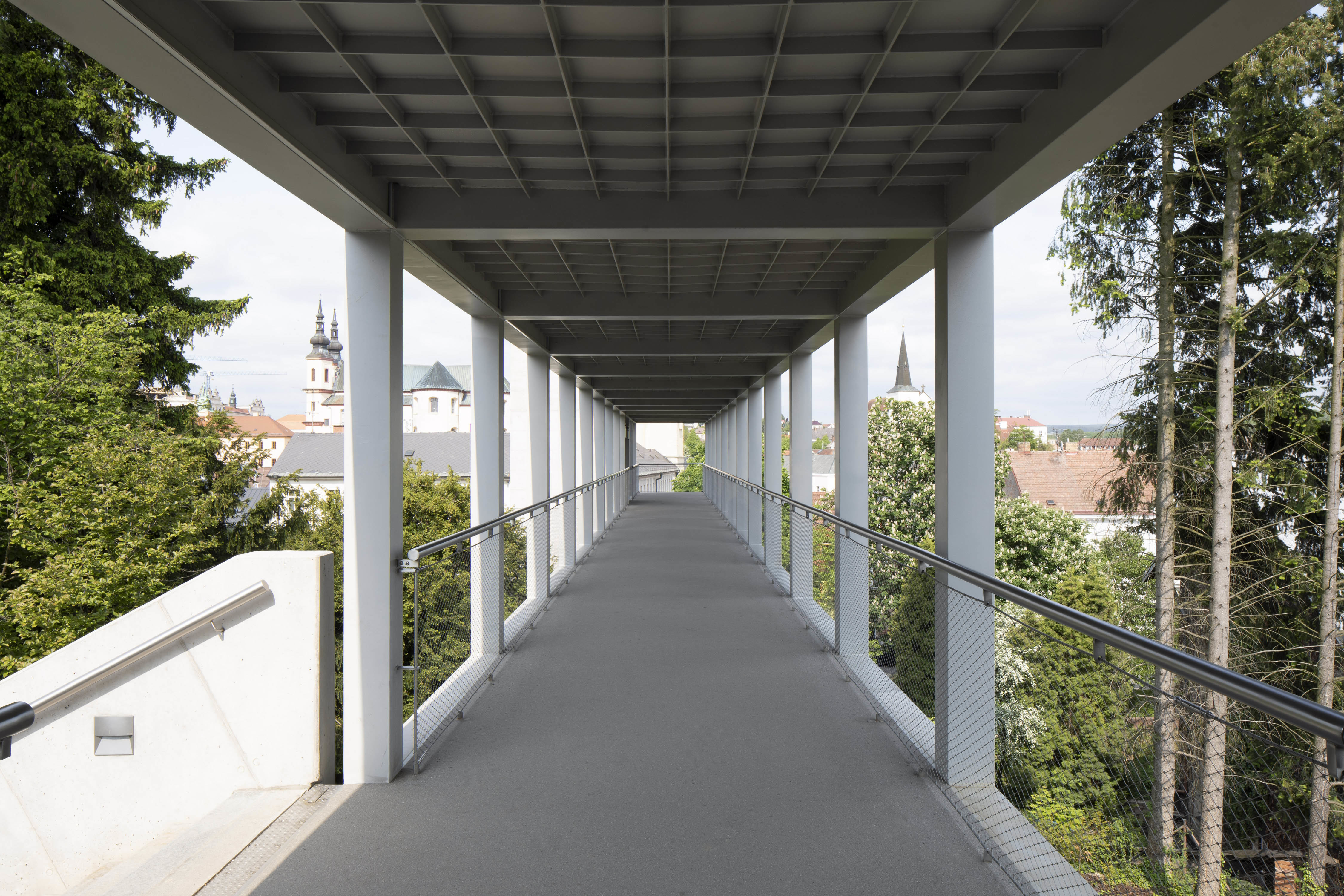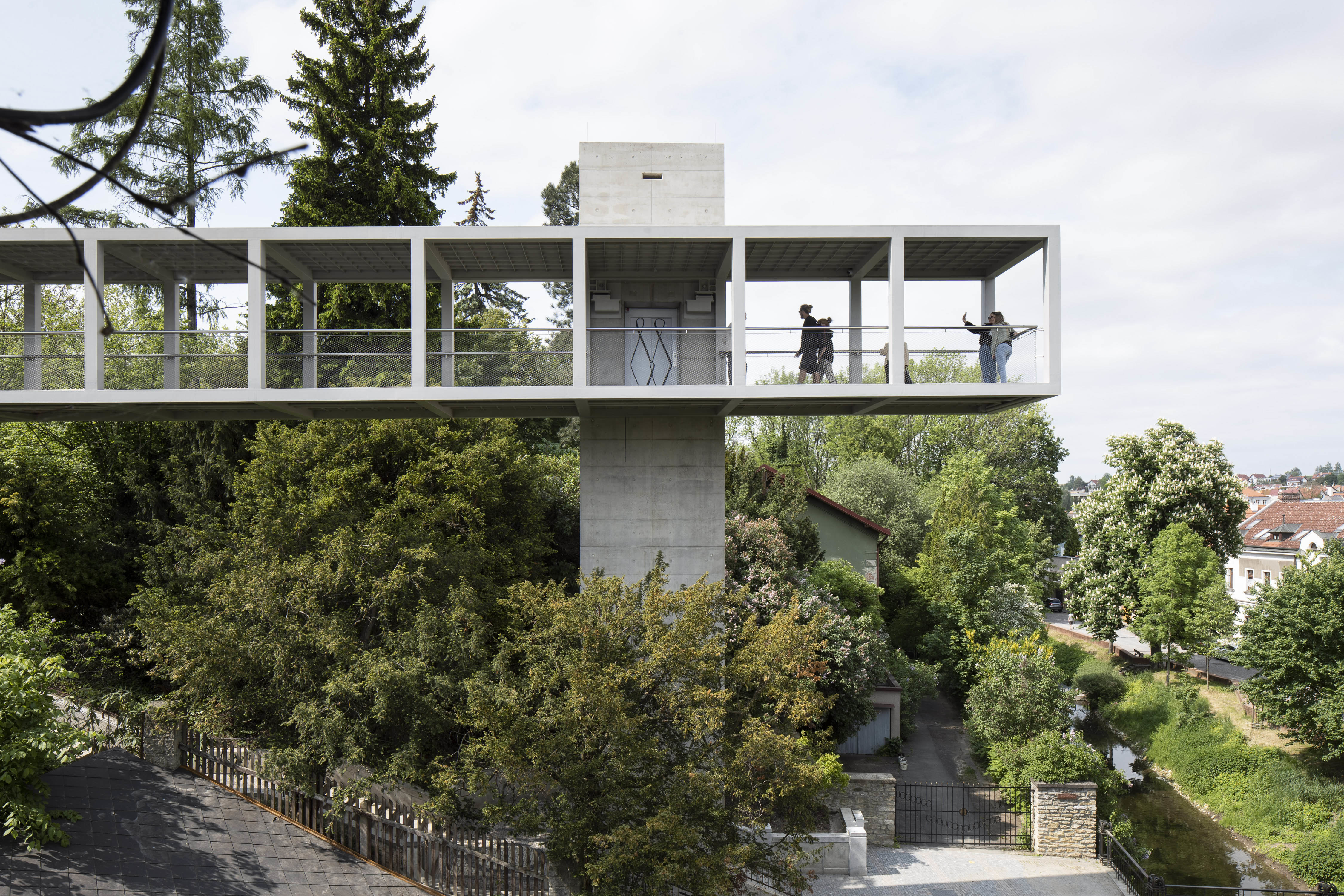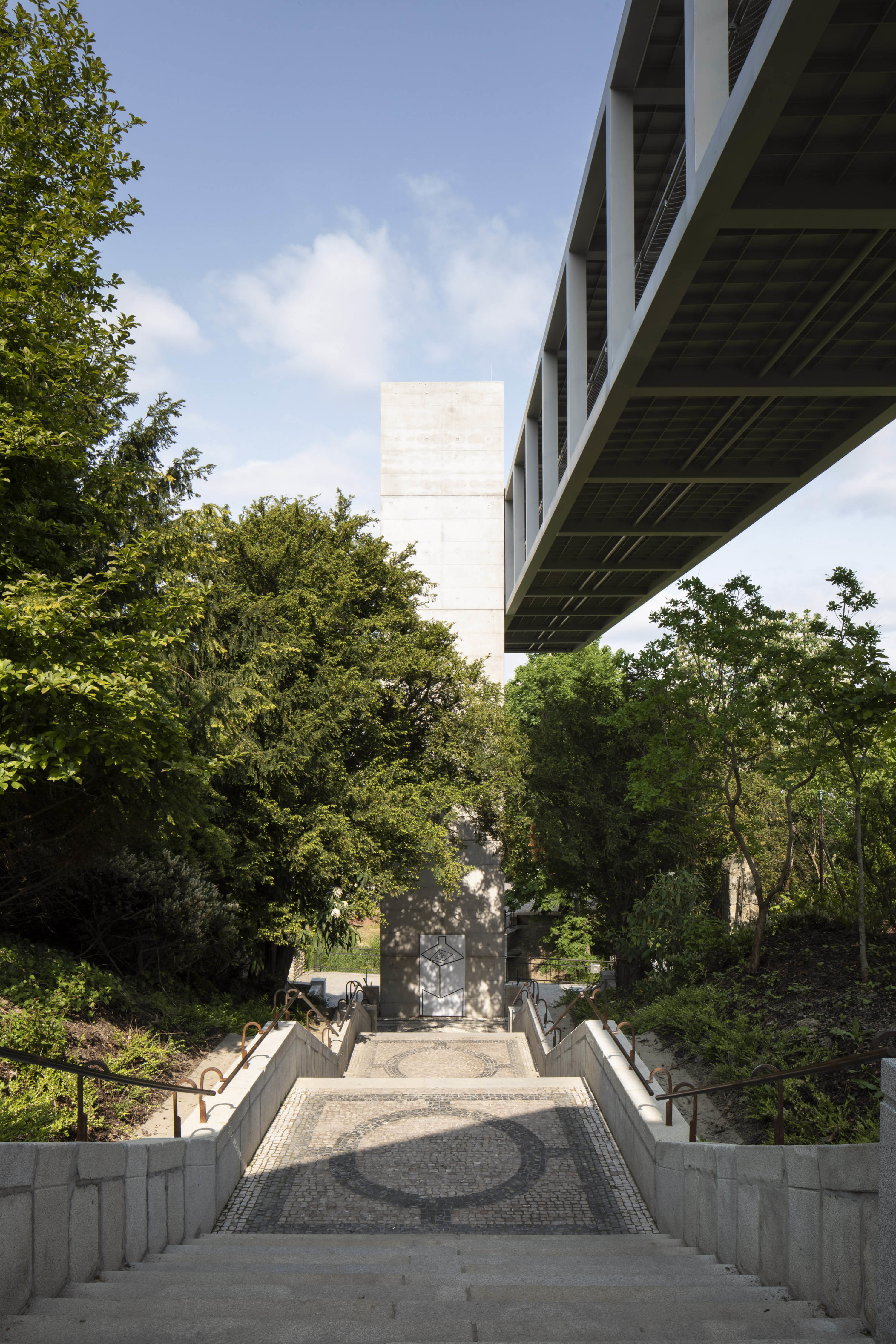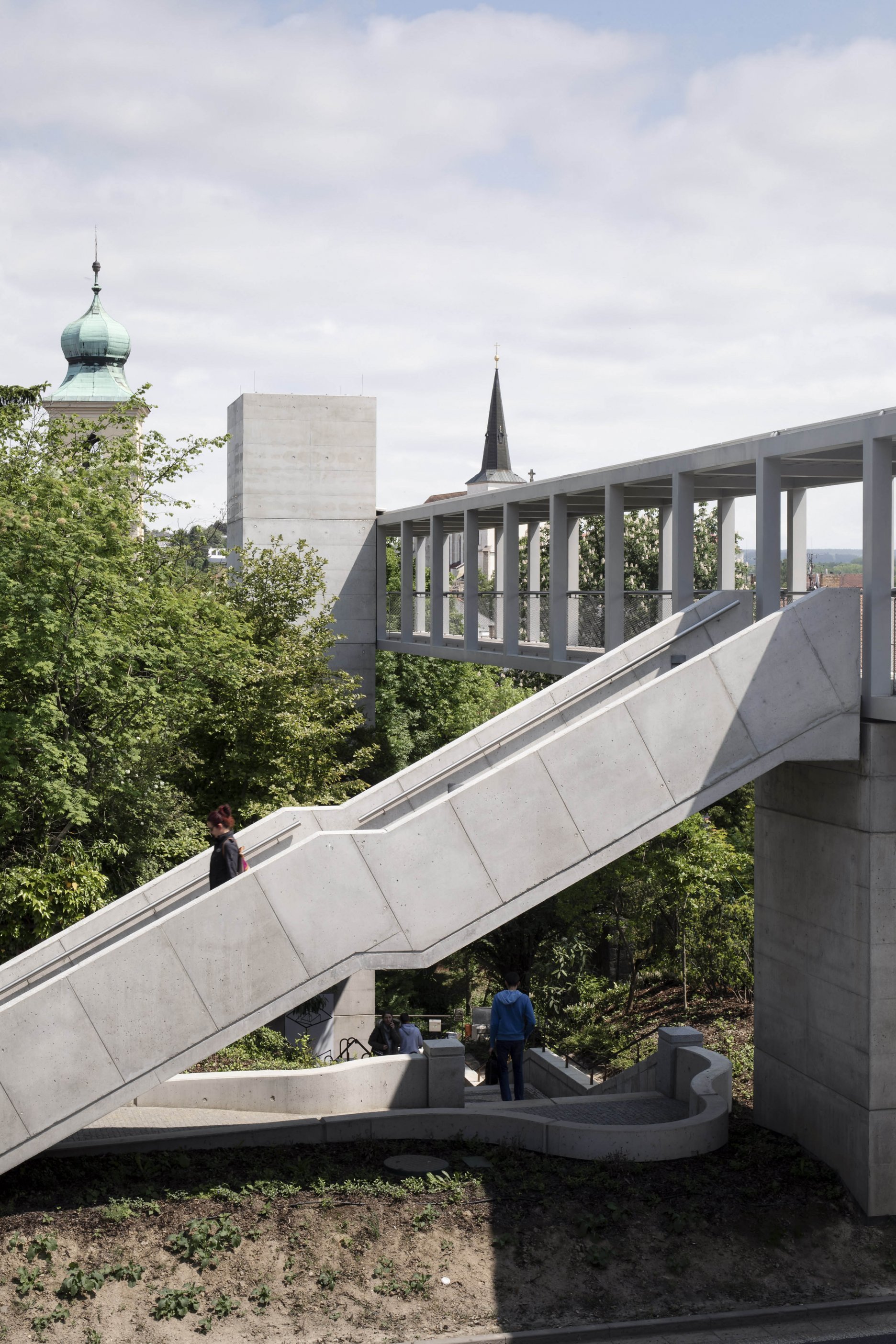 Subtílnu oceľovú konštrukciu nesú masívne oceľobetónové piliere. Zvýšený pylón výťahu je umiestnený v osi pôvodného schodiska. Zároveň vytvára novú dominantu - vežu, viditeľnú z námestia v prehľade cez ulicu Ropkova.