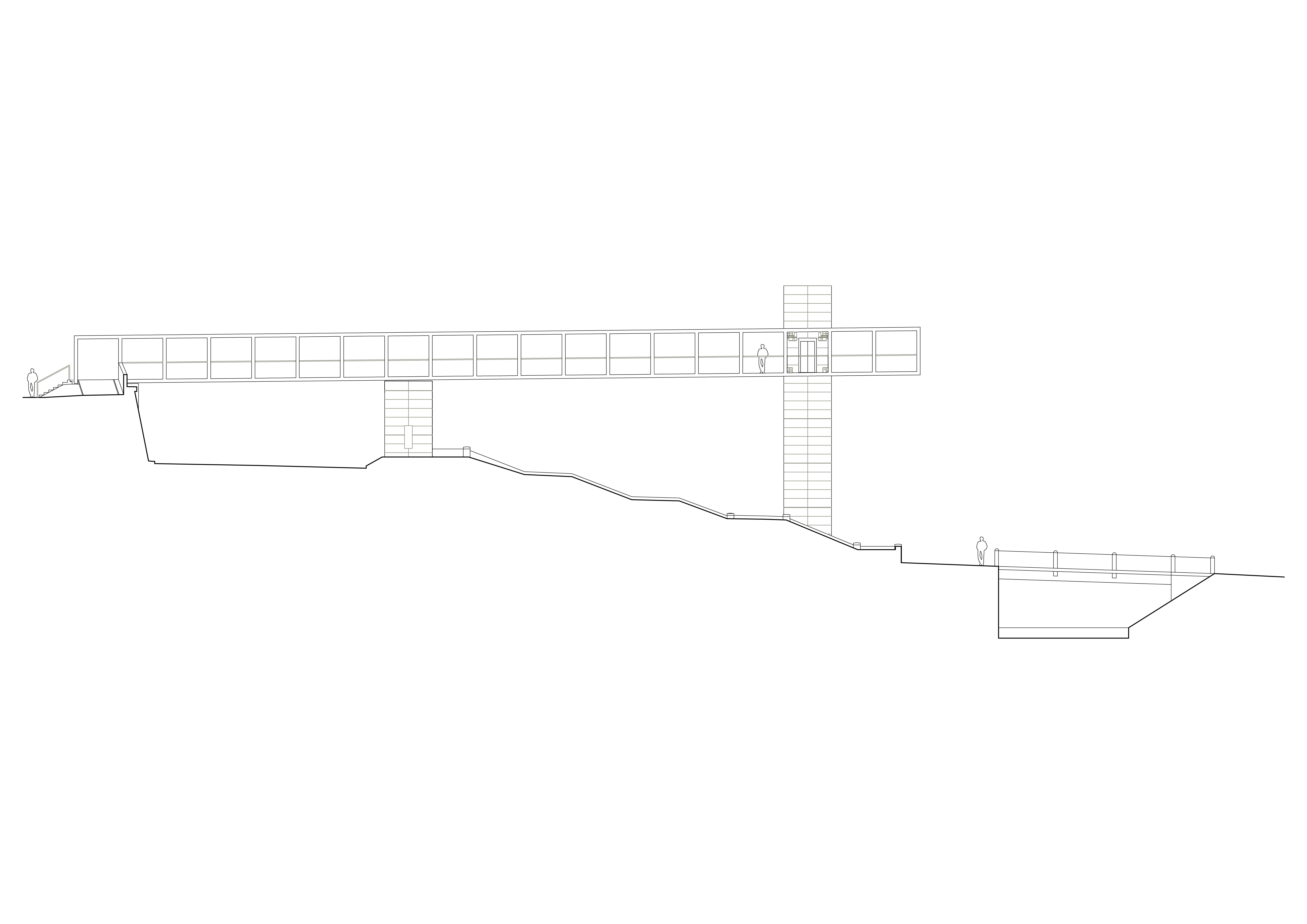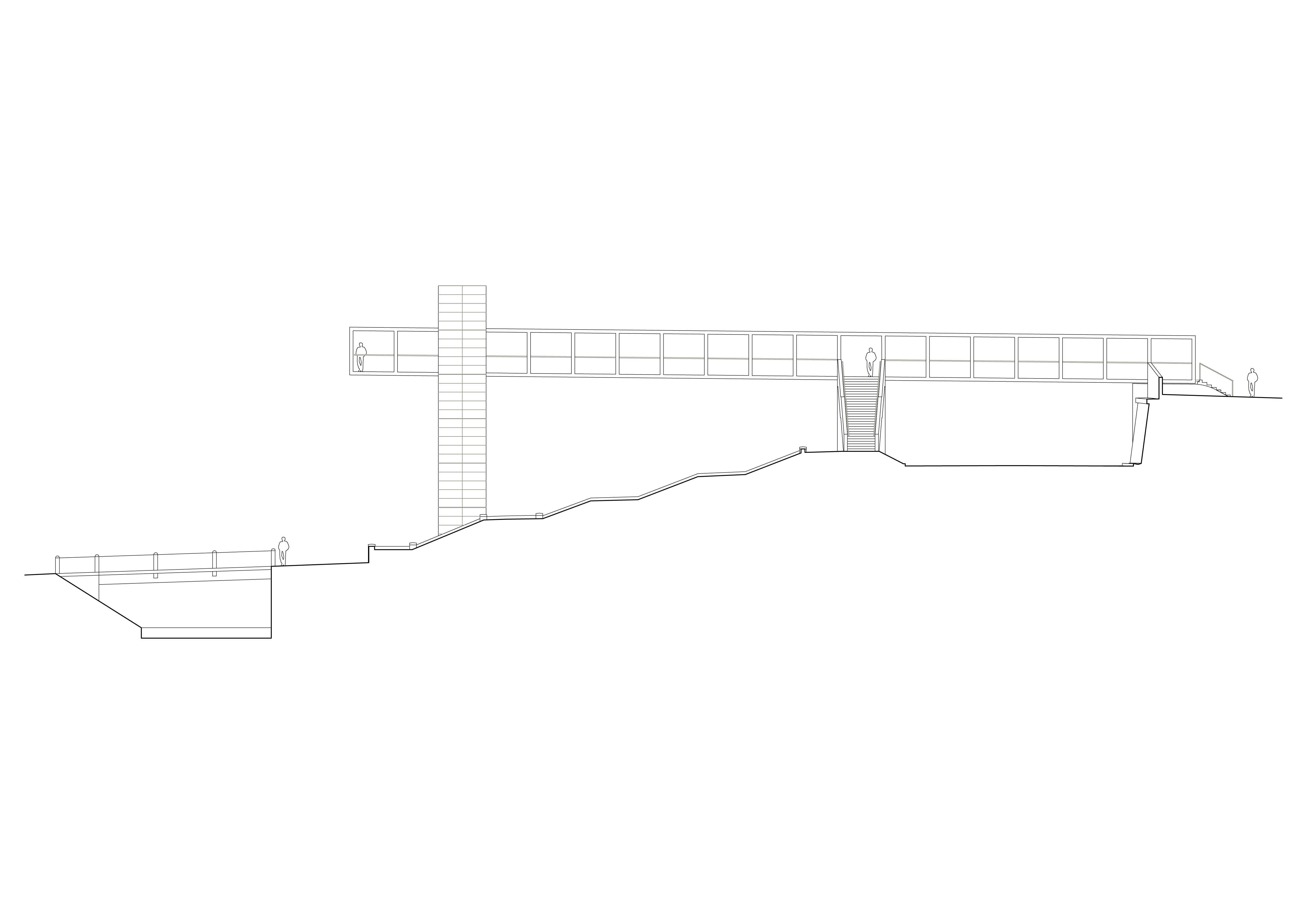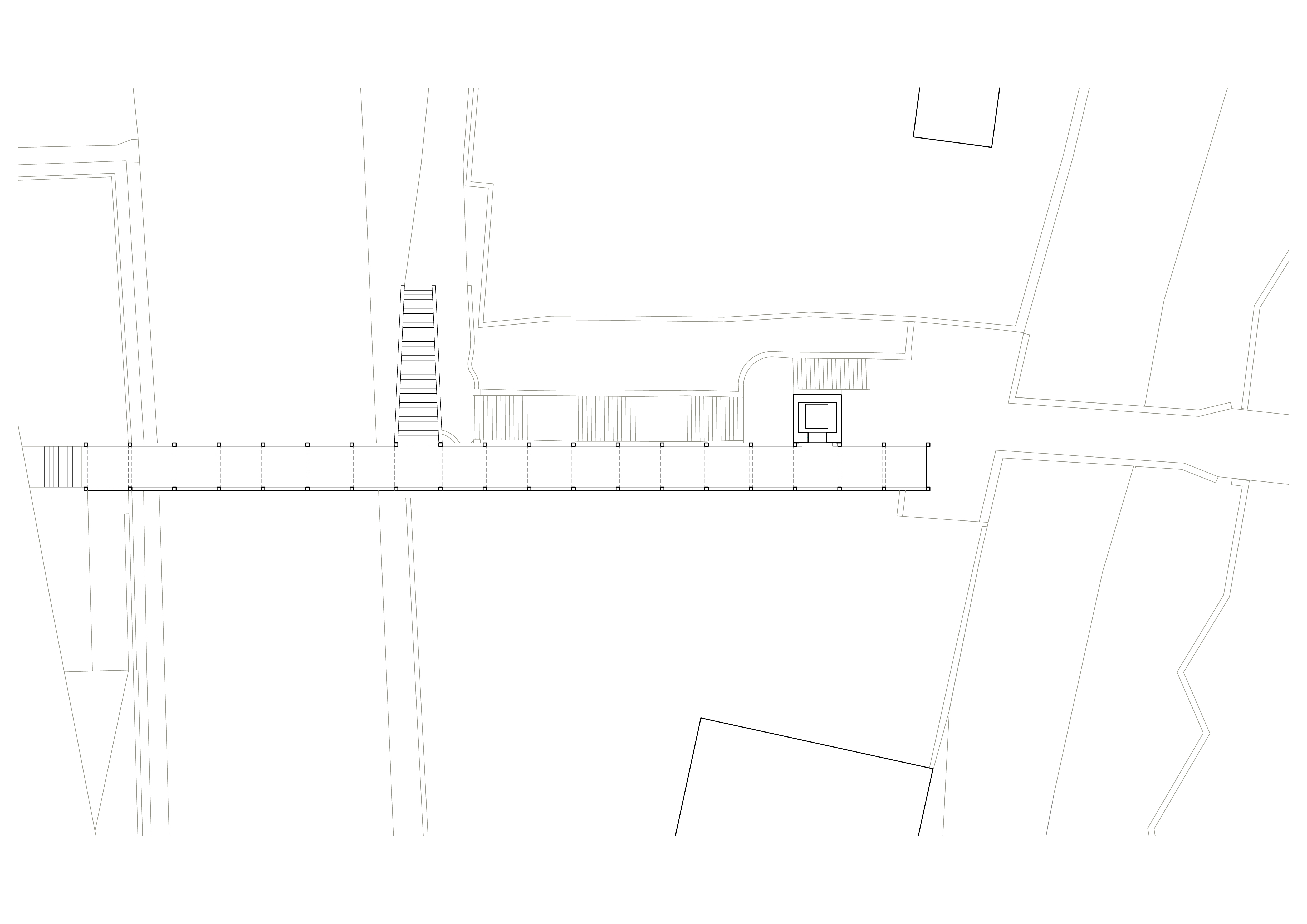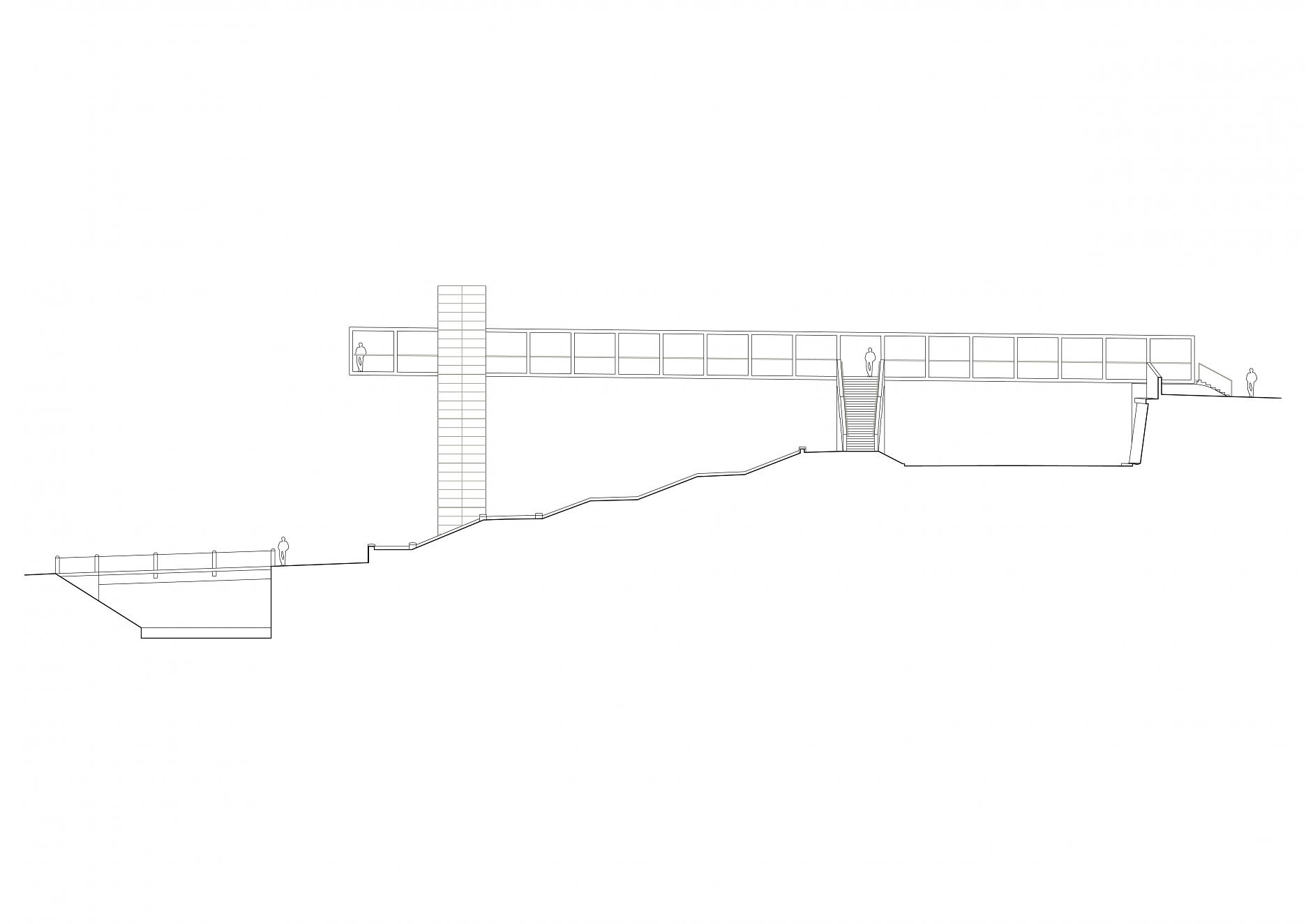 Subtílnu oceľovú konštrukciu nesú masívne oceľobetónové piliere. Zvýšený pylón výťahu je umiestnený v osi pôvodného schodiska. Zároveň vytvára novú dominantu - vežu, viditeľnú z námestia v prehľade cez ulicu Ropkova.