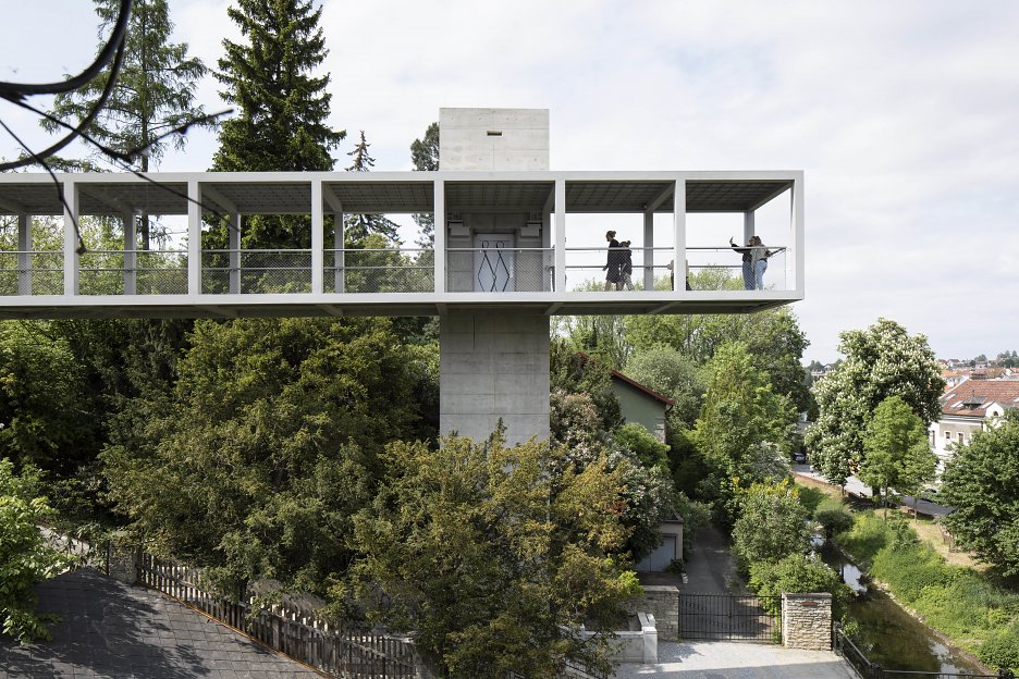 Nebol by to však Litomyšl, keby sa architekti nechopili príležitosti povýšiť bežnú inžiniersku stavbu na plnohodnotné architektonické dielo. Krytá komunikácia sa zároveň stáva vyhliadkou a novou dominantou - vežou pri pohľade z námestia.