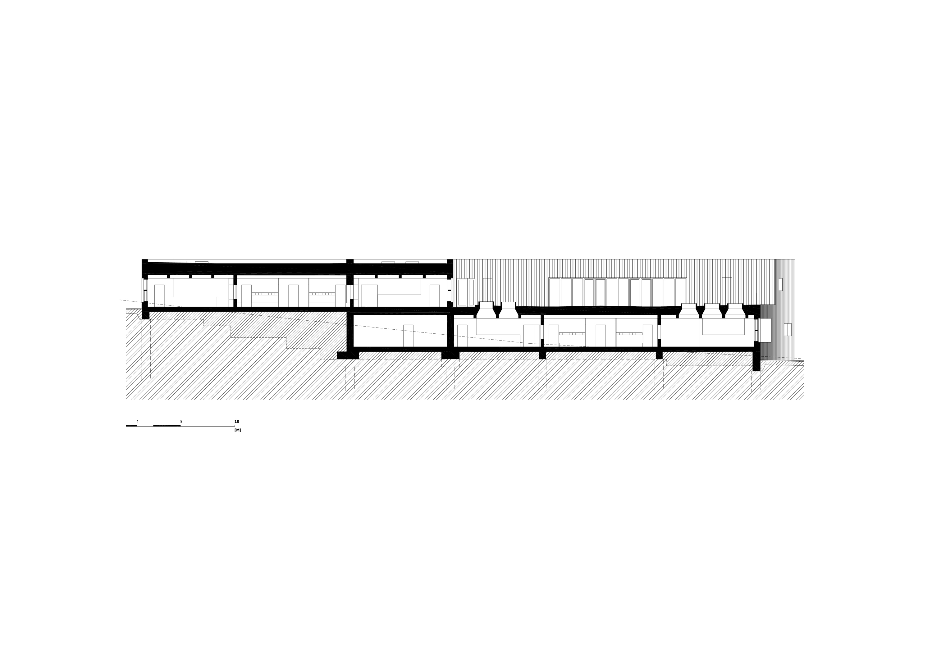 Monolitické železobetónové stropy dopĺňajú pohľadové rebrové konštrukcie s heraklitovými akustickými obkladmi. Strecha je jednoplášťová, monolitická železobetónová, s tepelnou izoláciou a extenzívnou zelenou skladbou. Fasáda kombinuje kontaktné zateplenie minerálnou vlnou a predsadený prevetrávaný drevený obklad z thermowoodu (tepelne upravená borovica). Rozsiahle presklené plochy tvoria hliníkové okná s vonkajšími žalúziami v integrovanom kastlíku. Prevládajúce hliníkové veľkoformátové výplne otvorov dopĺňajú drevené okná.