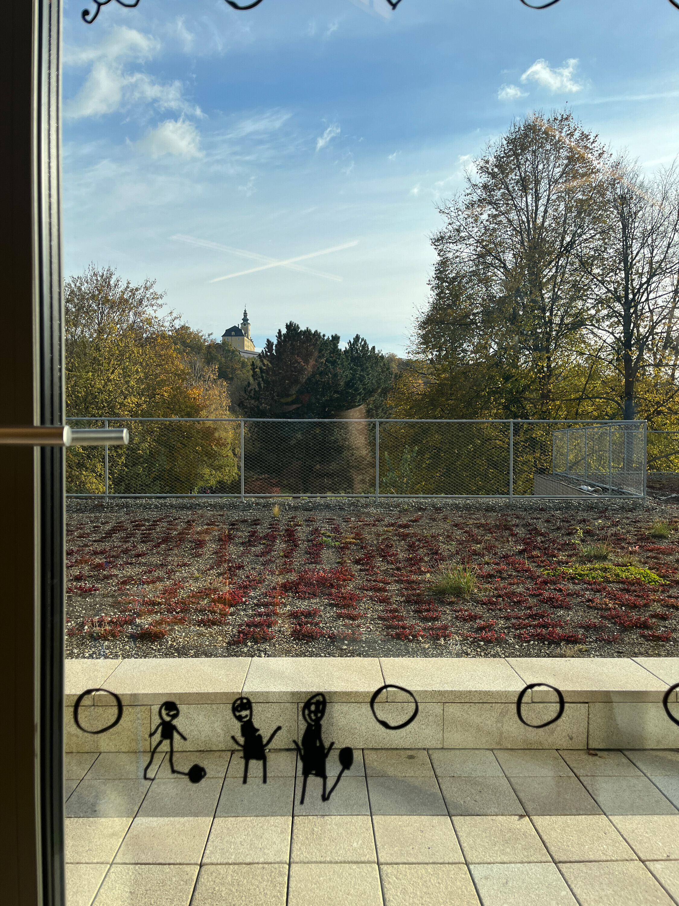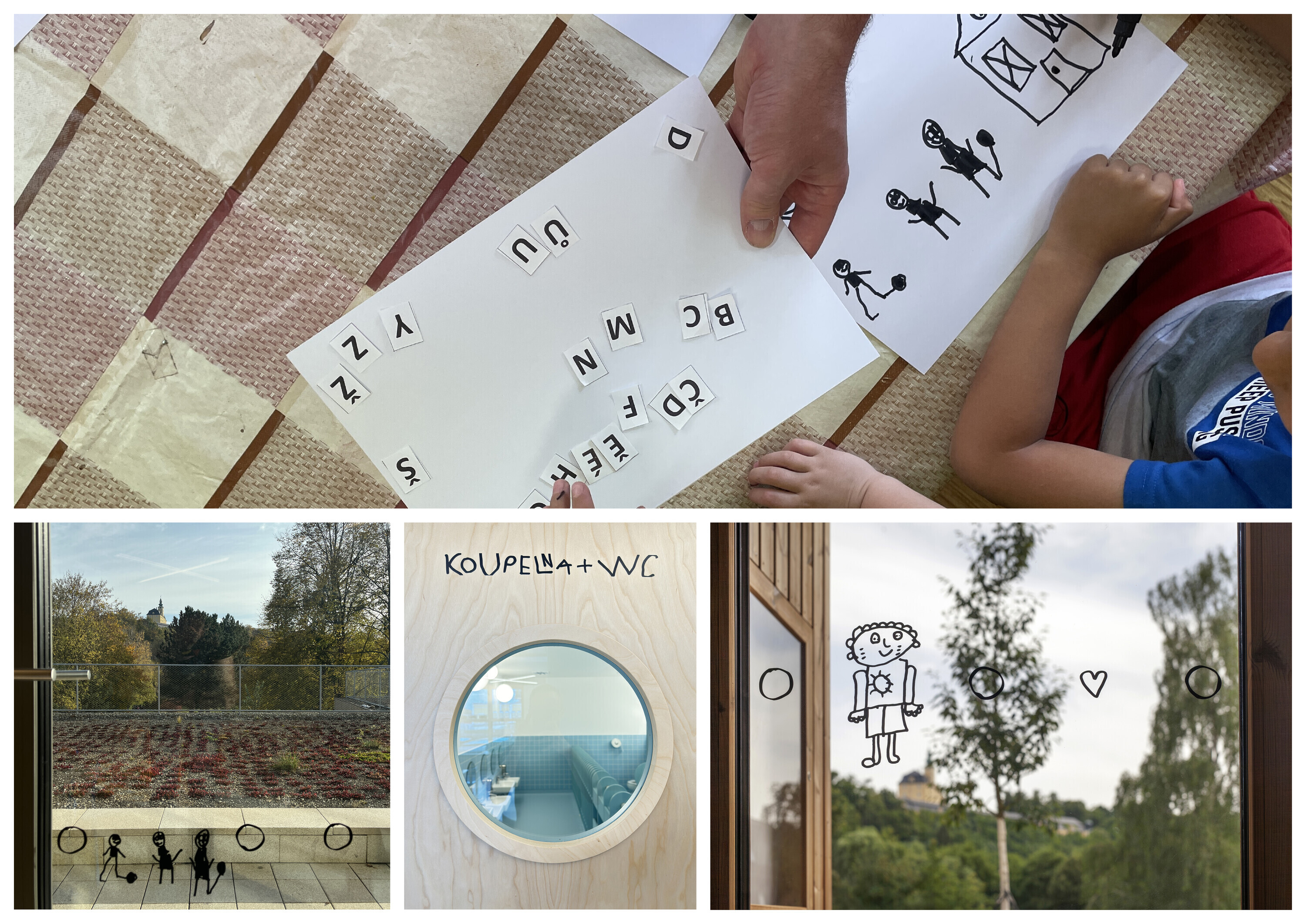 Počas výstavby prebehol workshop grafikov s deťmi, z ktorého vzniklo autorské písmo škôlky slúžiace ako orientačný systém. Cieľom bolo zapojiť deti do tvorby ich nového zázemia a prehĺbiť ich vzťah i pocit spolupatričnosti s prostredím škôlky. Workshop vznikol v rámci výučby ako zavŕšenie týždňového spoločného projektu s architektmi, grafikom Jakubom Wdowkom (Artbureau), typografom Marianom Misiakom (Threedotstype) a streetartovým umelcom Lenom.