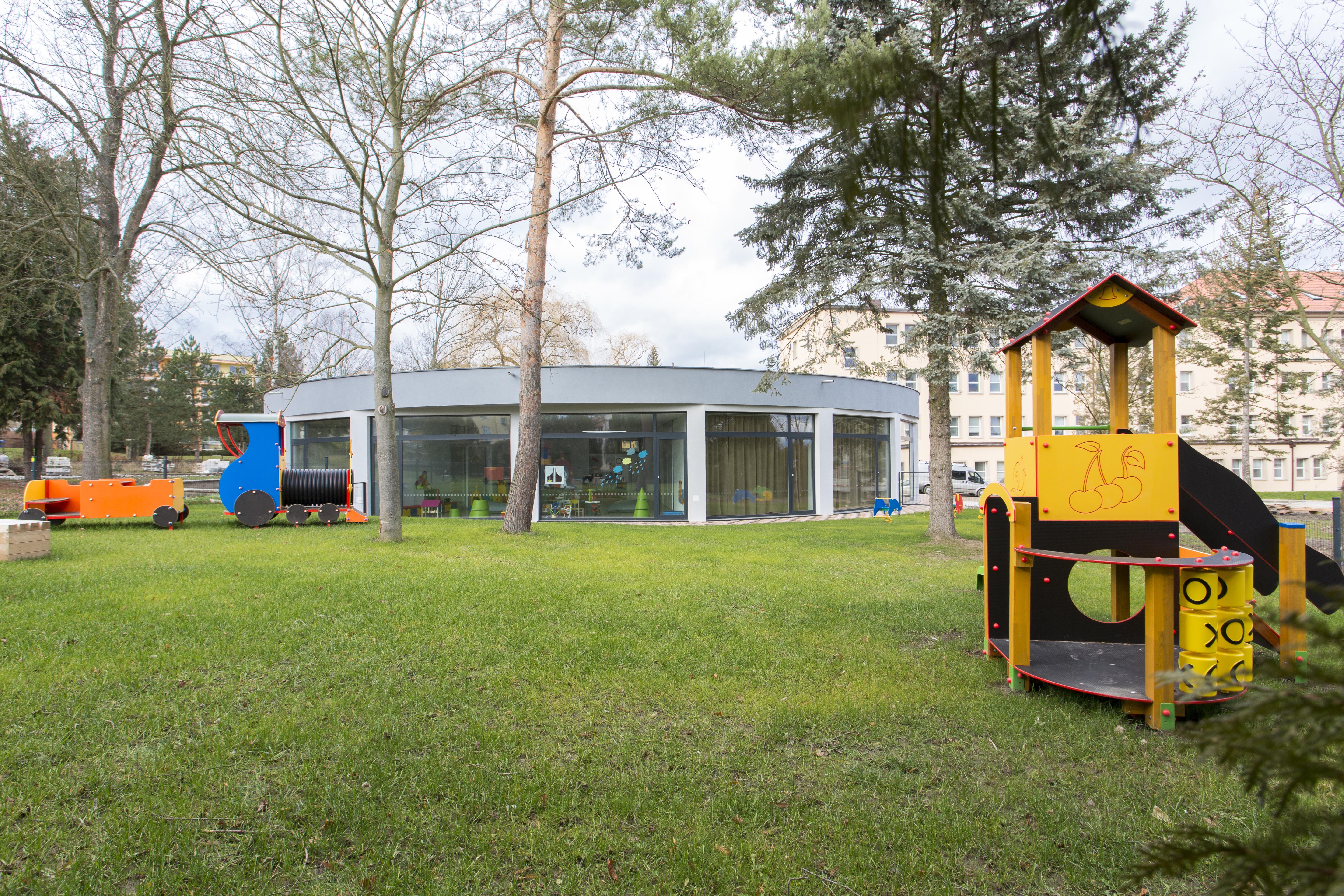 Nová materská škola vyrástla v malom meste Hořovice, ktoré leží päťdesiat kilometrov západne od Prahy. Kompaktná stavba stojí na rovinatom pozemku, v nadväznosti na novú obytnú zónu a areál nemocnice.