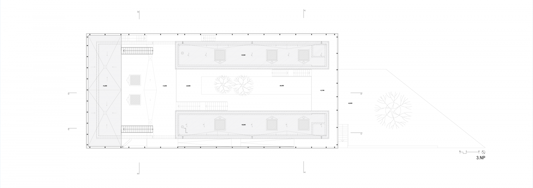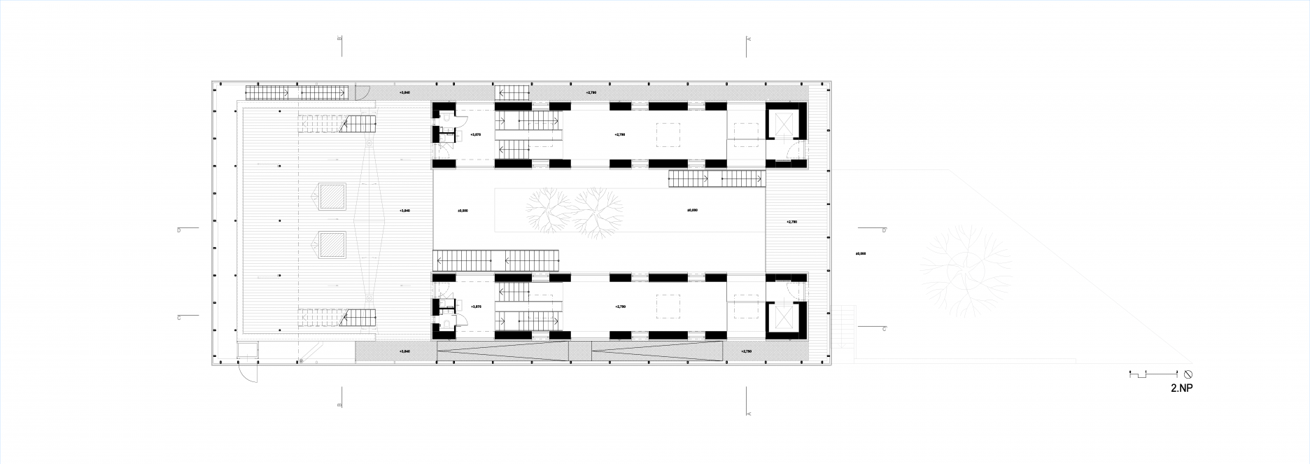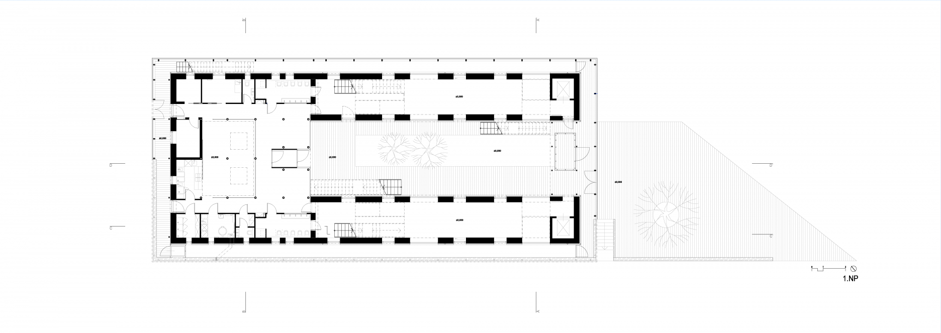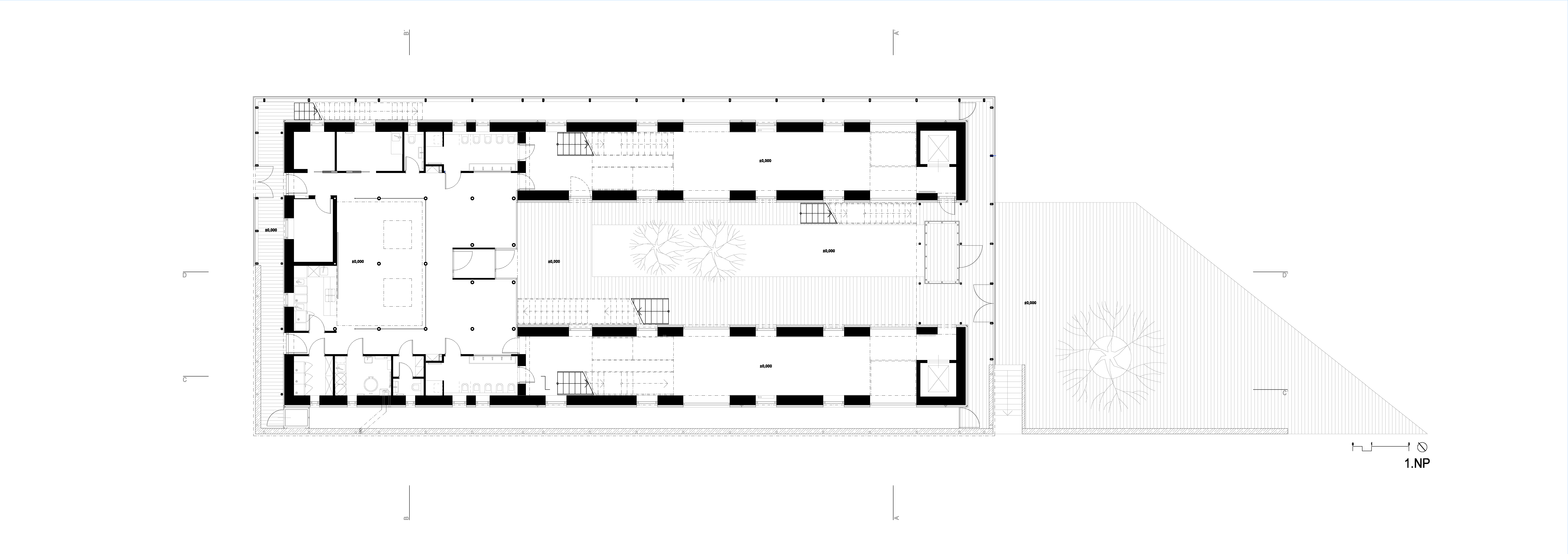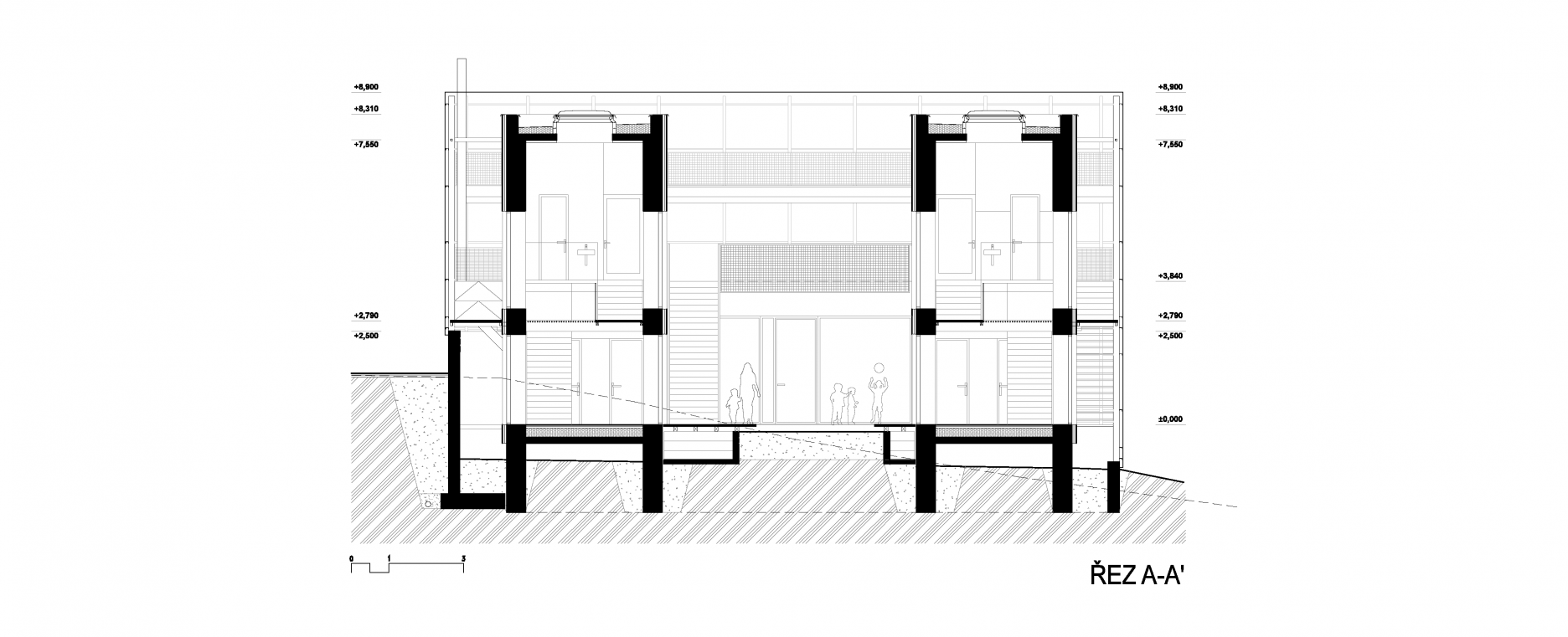 Autori sa museli pri návrhu vysporiadať so špecifikami stiesneného svahovitého pozemku spadajúceho na sever. Tieň vrhaný vysokou budovou školy, trasovanie podzemnej infraštruktúry, či nároky na parkovanie značne ukrojili zo zastavateľnej plochy.