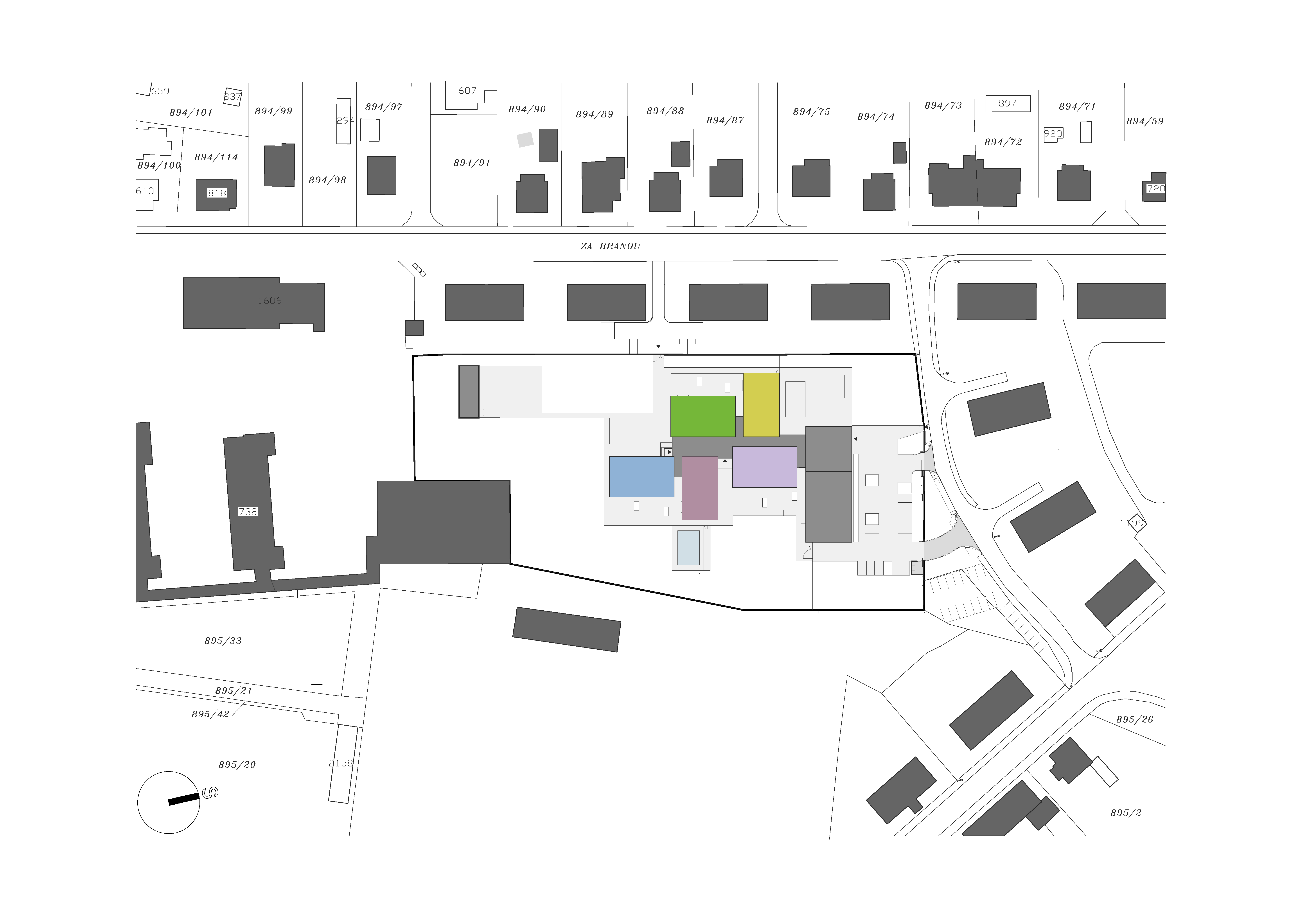 “Konceptem návrhu nové budovy mateřské školy je rozmístění jednotlivých přízemních pavilonů – oddělení do velké zahrady,” vysvetľujú architekti z ateliéru VYŠEHRAD, ktorí pracujú z dvoma typmi pavilónov. Bloky sú voči sebe pootočené o 90°, čo vytvára atraktívnu štruktúru polouzavretých exteriérových priestorov.