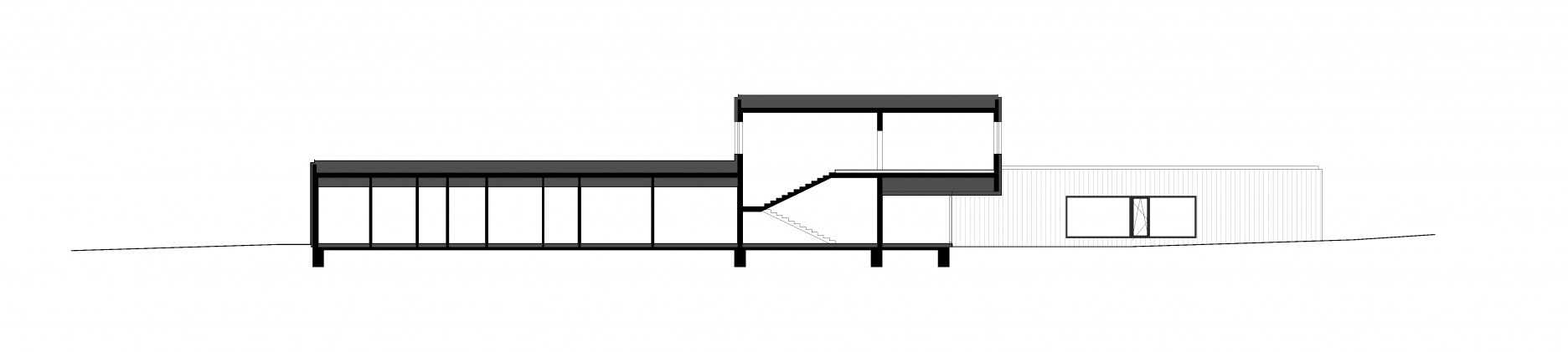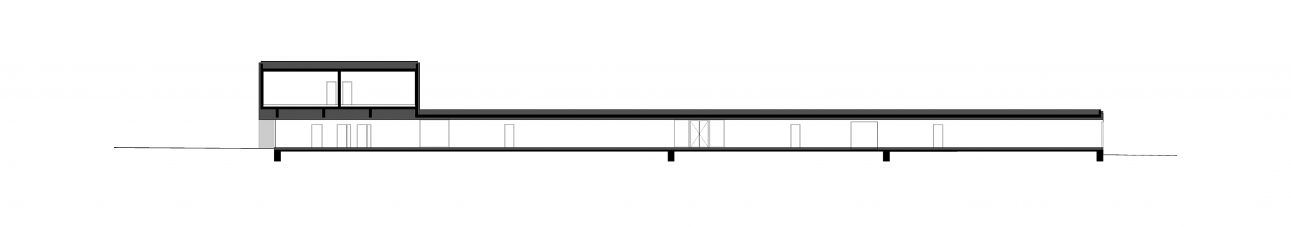 Jednopodlažné kvádre pavilónov sú perforované minimálnym počtom veľkorysých otvorov. Výraz určuje najmä veľká loggia sprostredkujúca prepojenie s exteriérom.