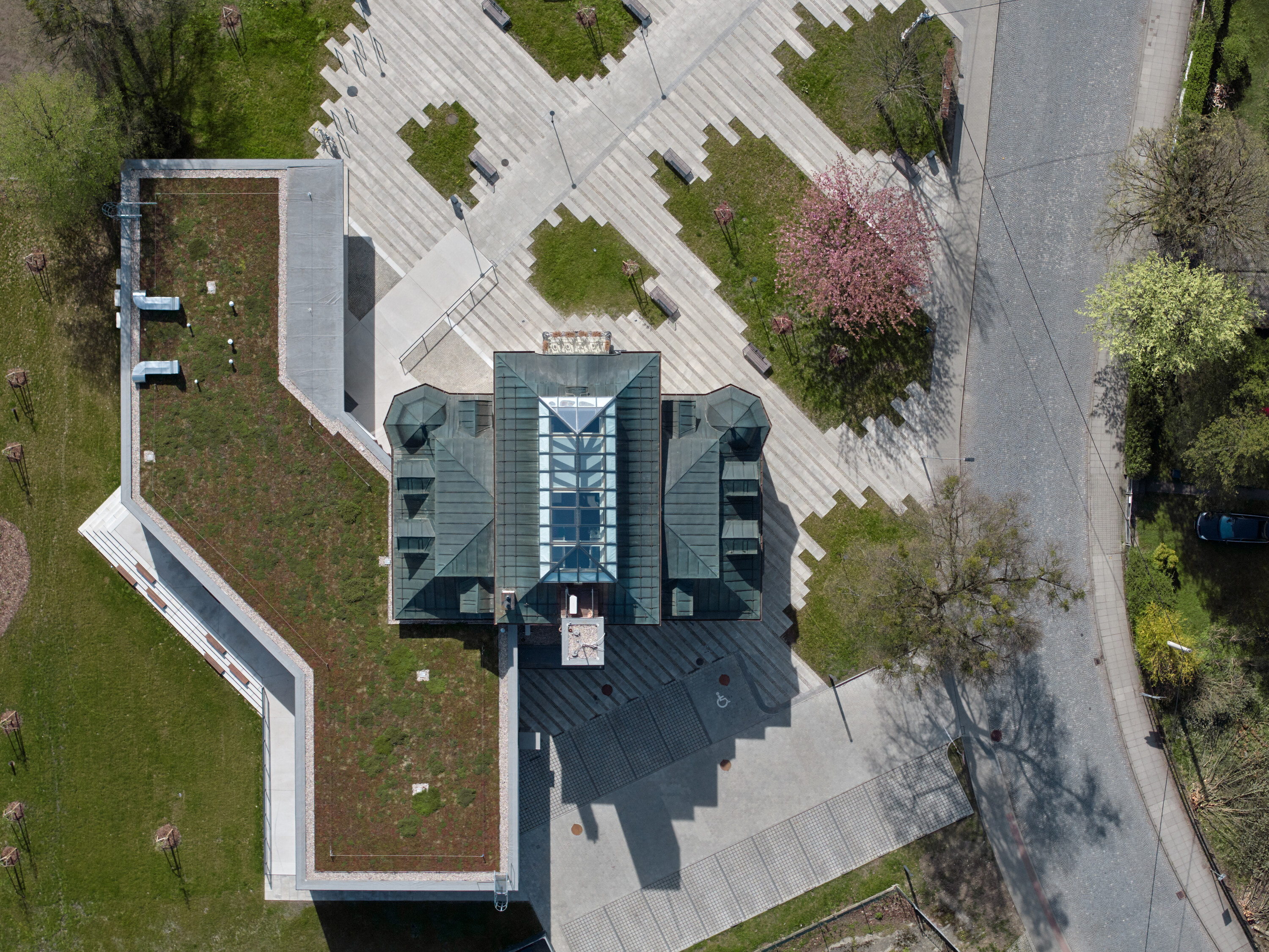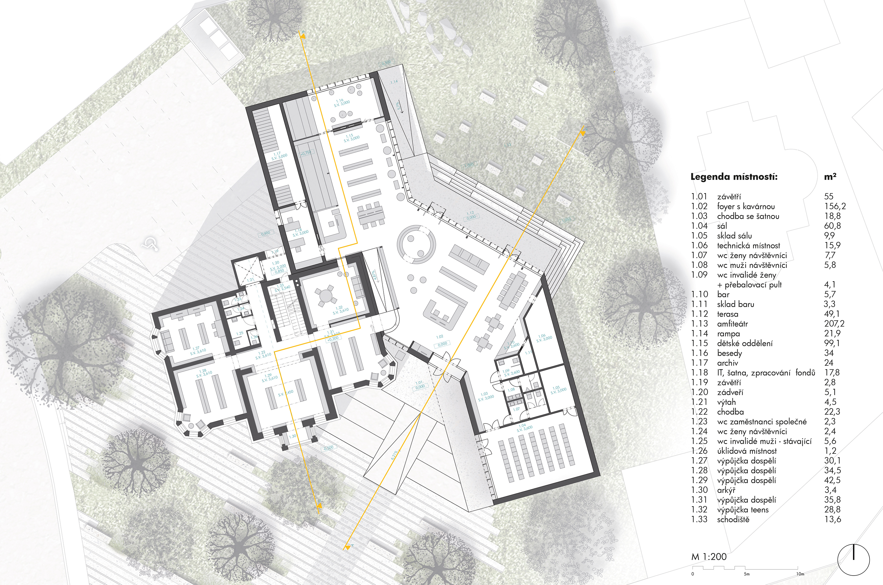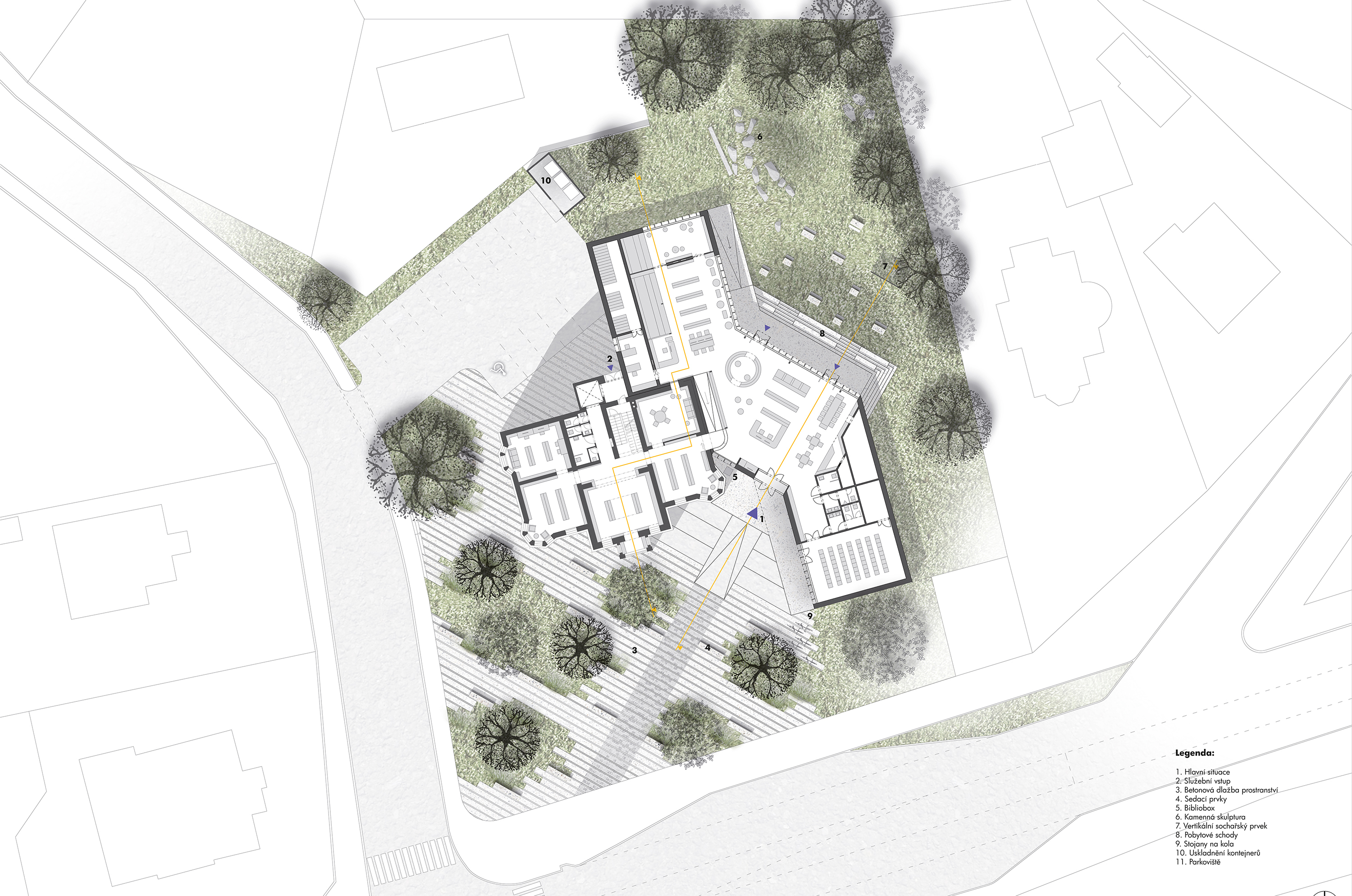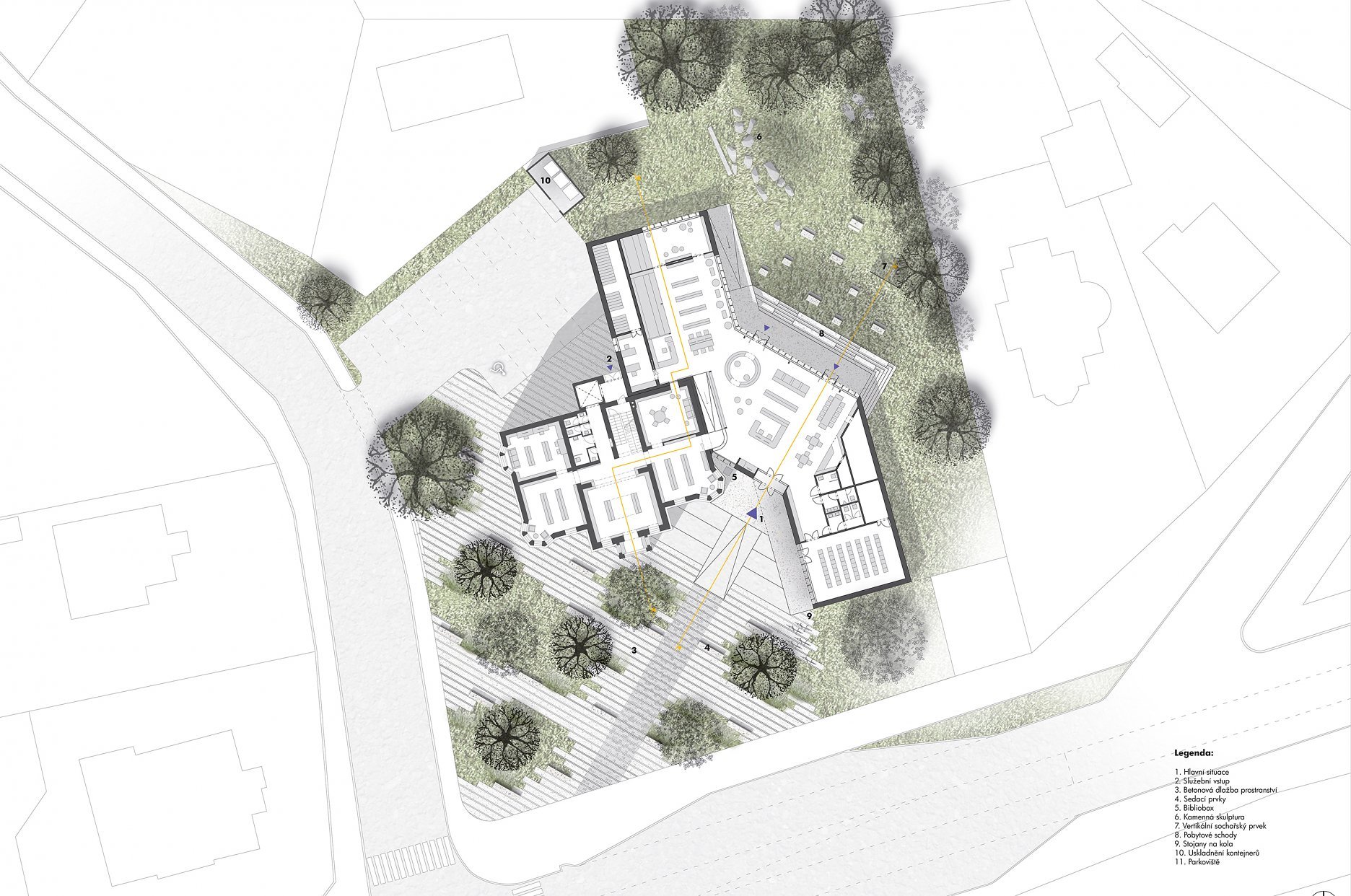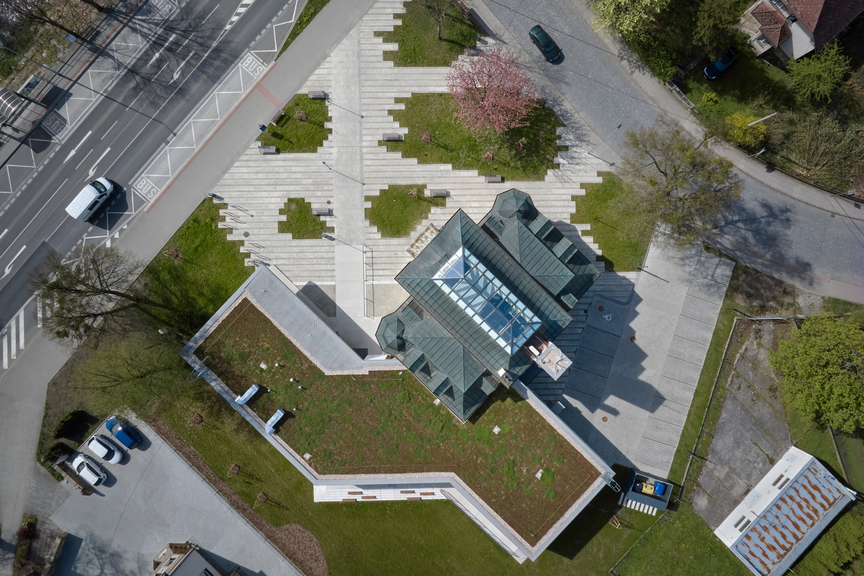 K návrhu nové knihovny v Rožnově jsme se dostali vítězstvím v otevřené architektonické soutěži v roce 2016. Jejím cílem bylo najít nejvhodnější řešení pro rozšíření kapacity městské knihovny, protože její prostory v historizující vile nestačily pro výukové programy a další aktivity, které k moderní knihovně patří.