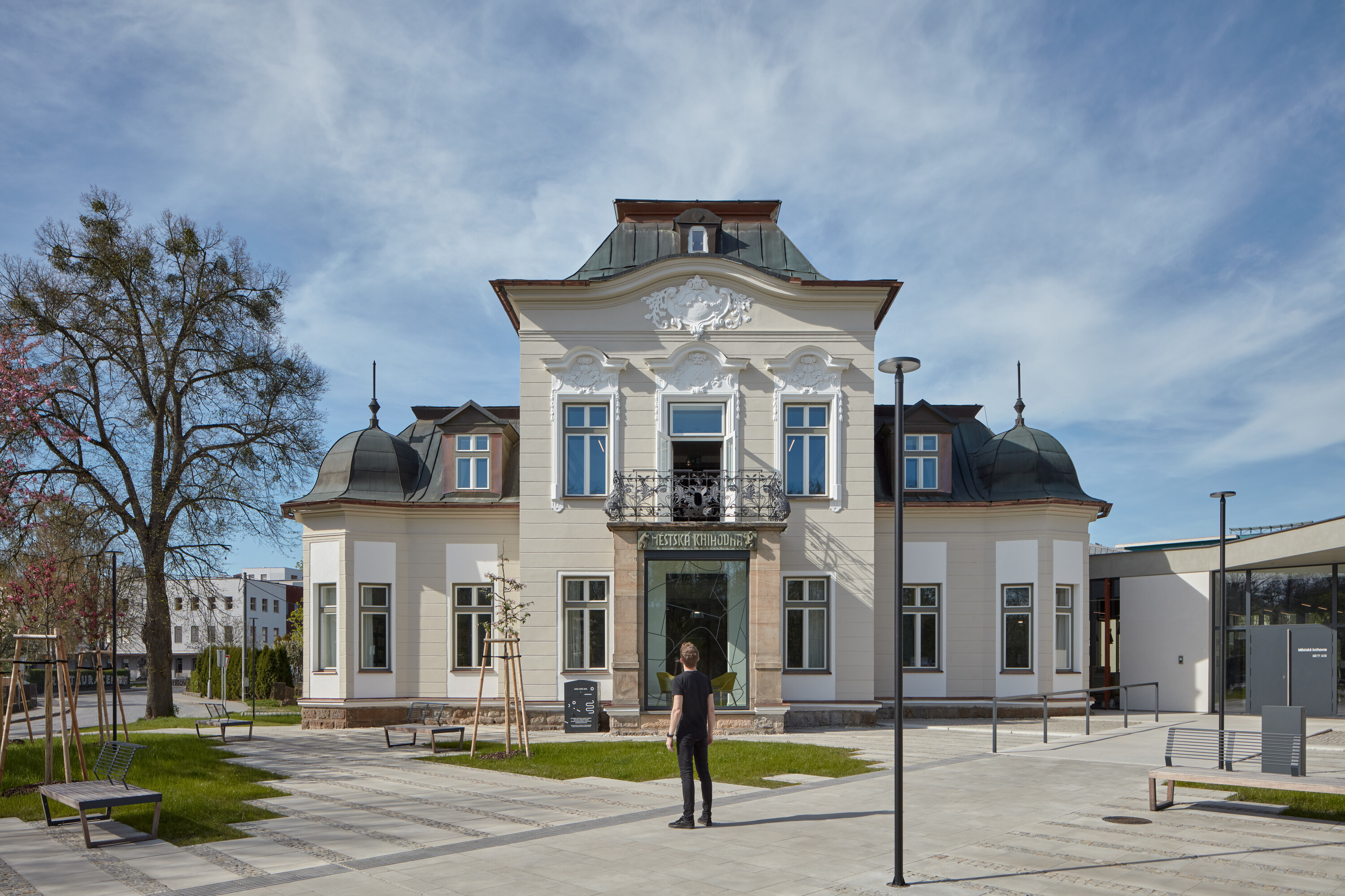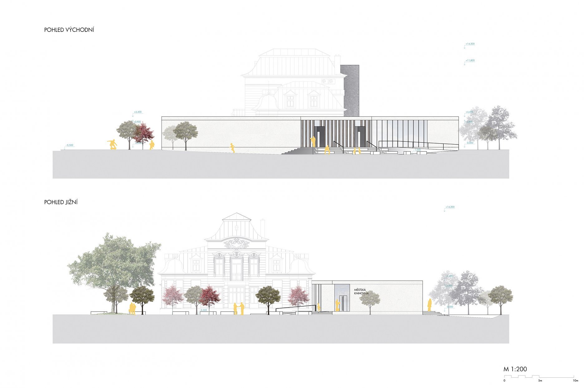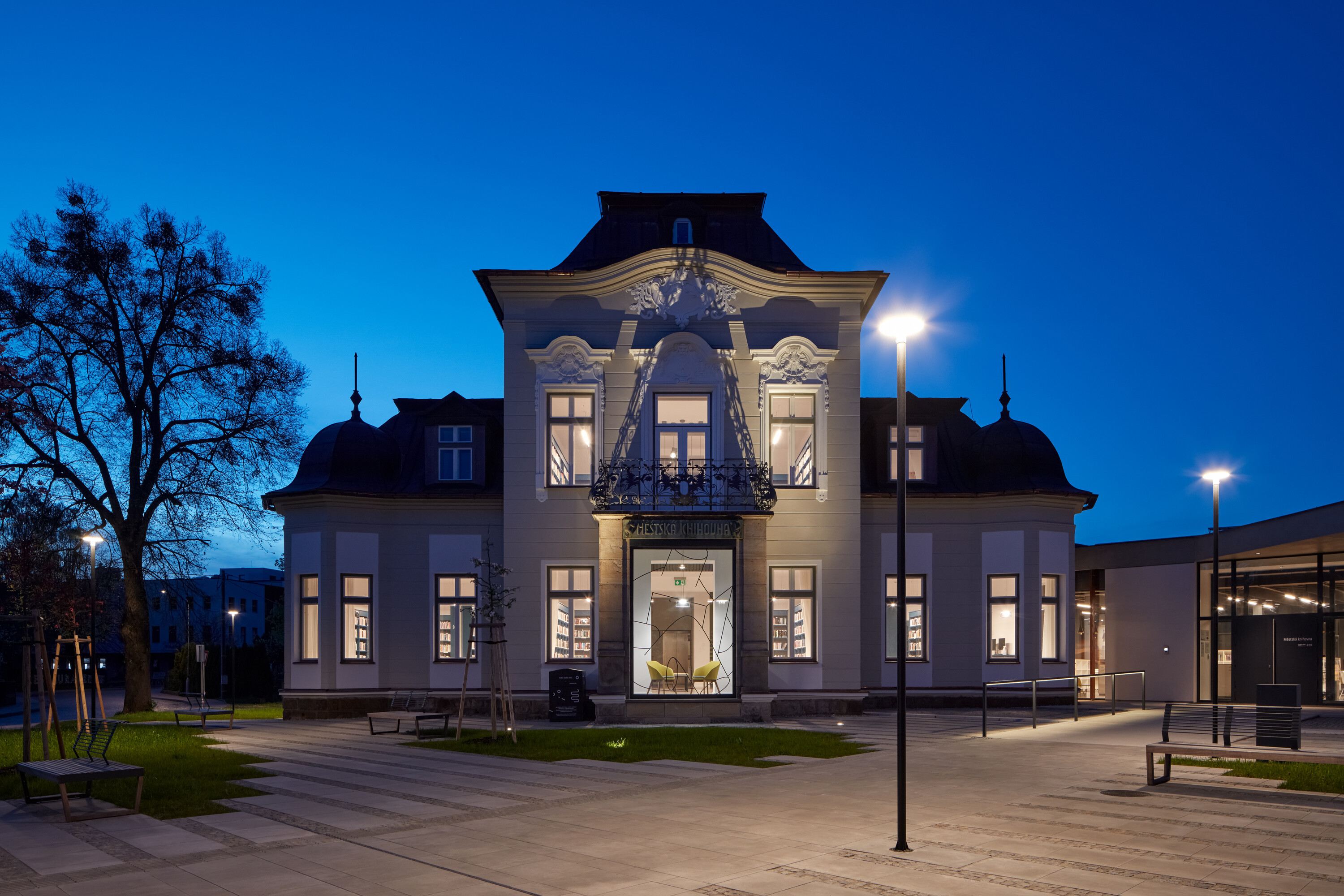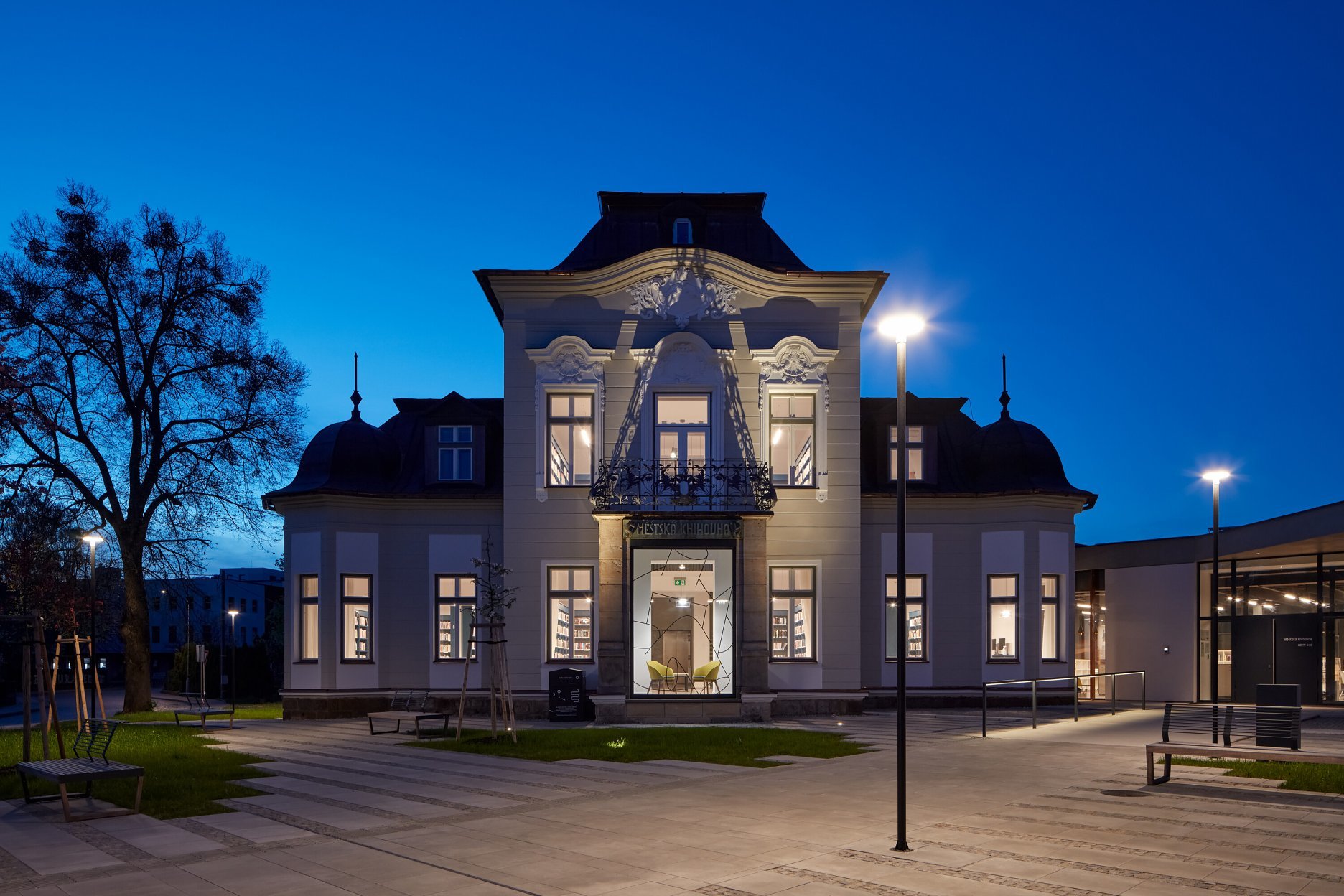 Projekt rozšírenia kapacít mestskej knižnice v šestnásťtisícovom moravskom meste vytvoril podmienky pre rozvoj kultúrnych, komunitných a vzdelávacích aktivít, ktoré tvoria dôležitú súčasť programu dnešných knižníc. Objekt historizujúcej vily, v bezprostrednej blízkosti mestského parku, doplnil nový presklený pavilón. Dôležitú súčasť realizácie tvorí zrevitalizovaný verejný priestor, ktorý vytvára prijémné zázemie pre sezónne aktivity.