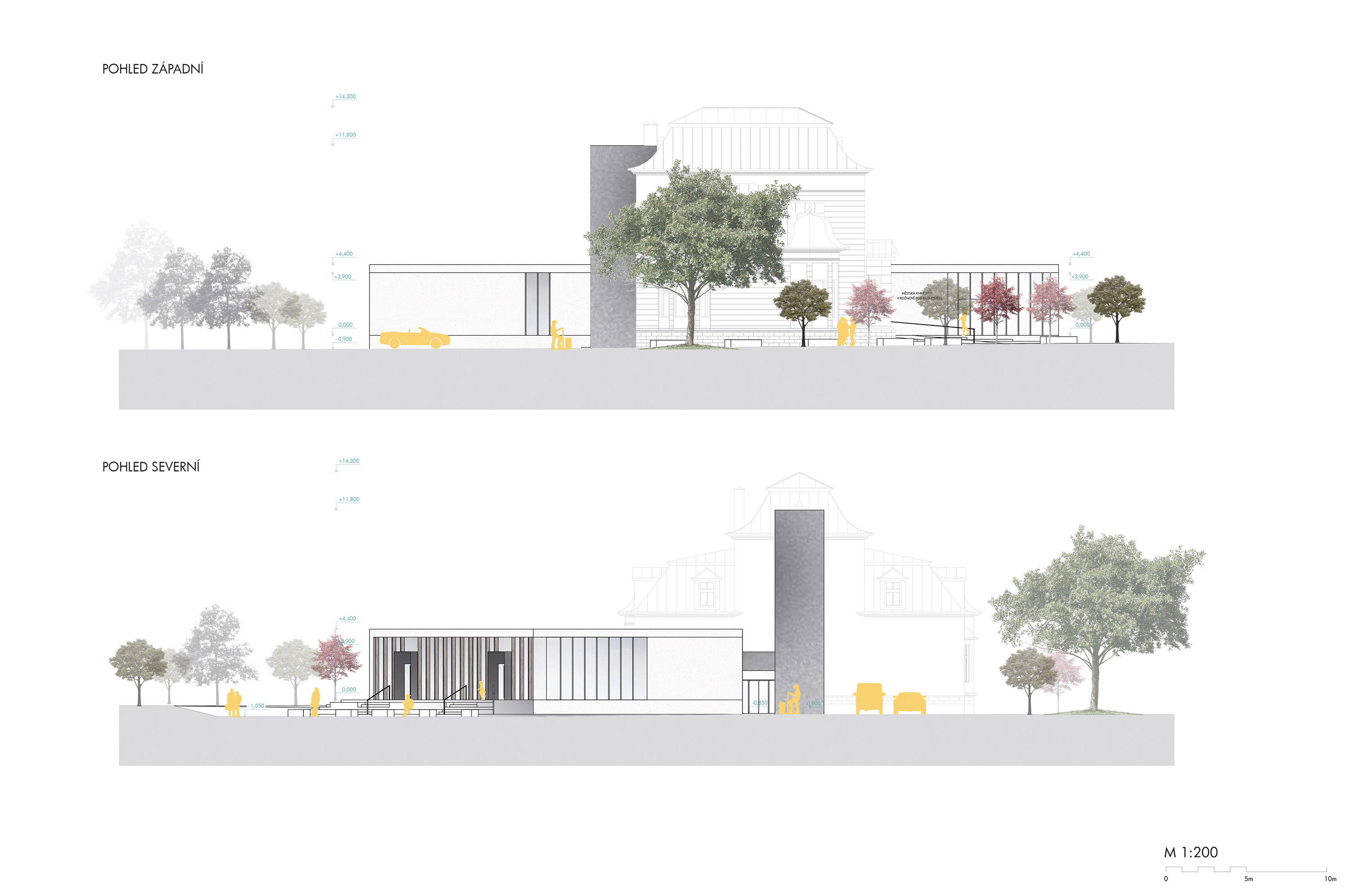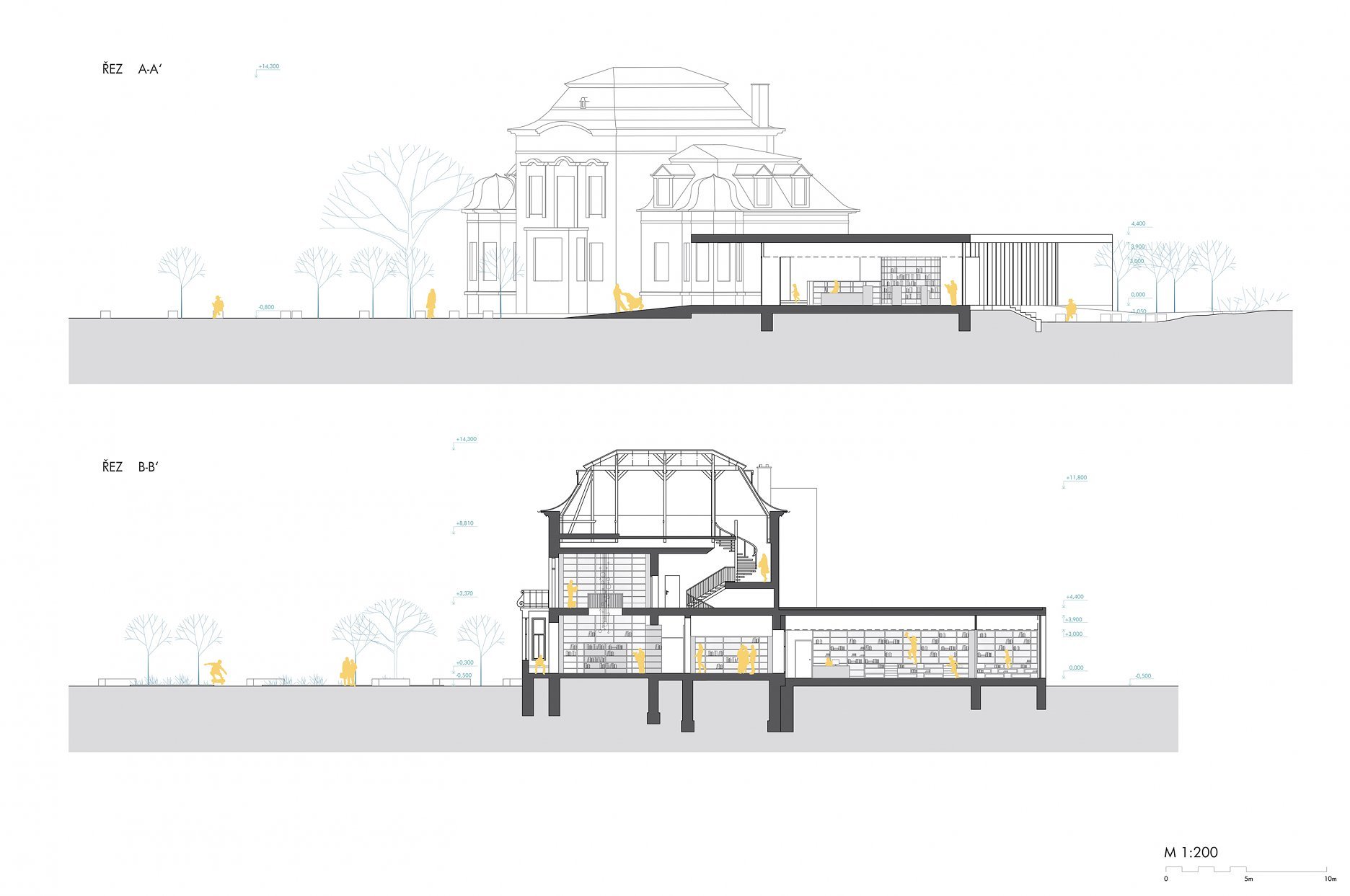 Konstrukčně je přístavba řešená jako železobetonový skelet s ocelovými sloupy a zdivem s izolační výplní. Díky tomu může prostor uvnitř přístavby volně plynout a těžit z propojení se zahradou i veřejným prostorem.