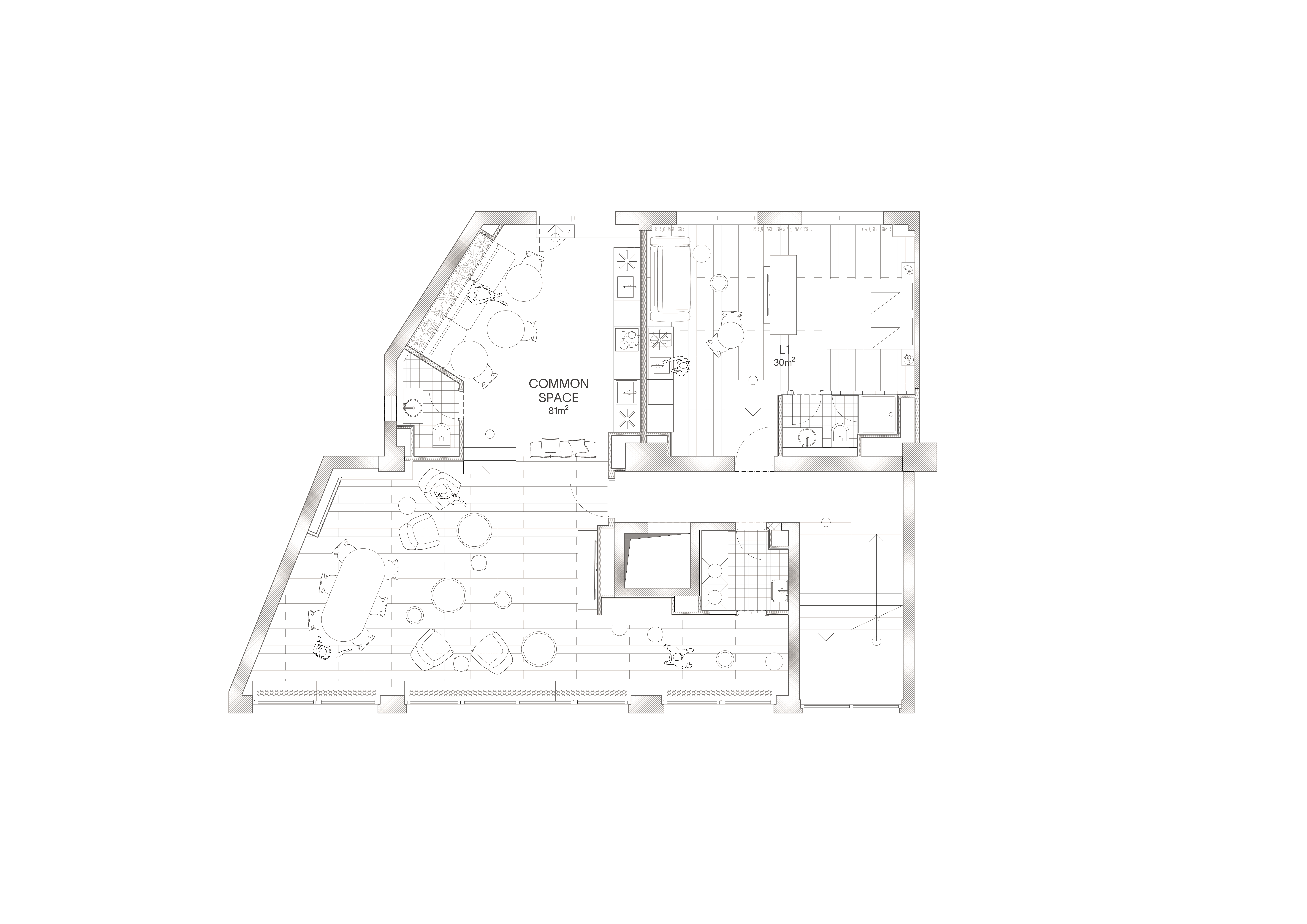 Koncept mestského bývania v medzivojnovom objekte architekta Juraja Tvarožka si kladie za cieľ okrem vytvorenia pohodlného a efektívneho zázemia vytvoriť aj priestor pre interakciu angažovaných mladých ľudí.