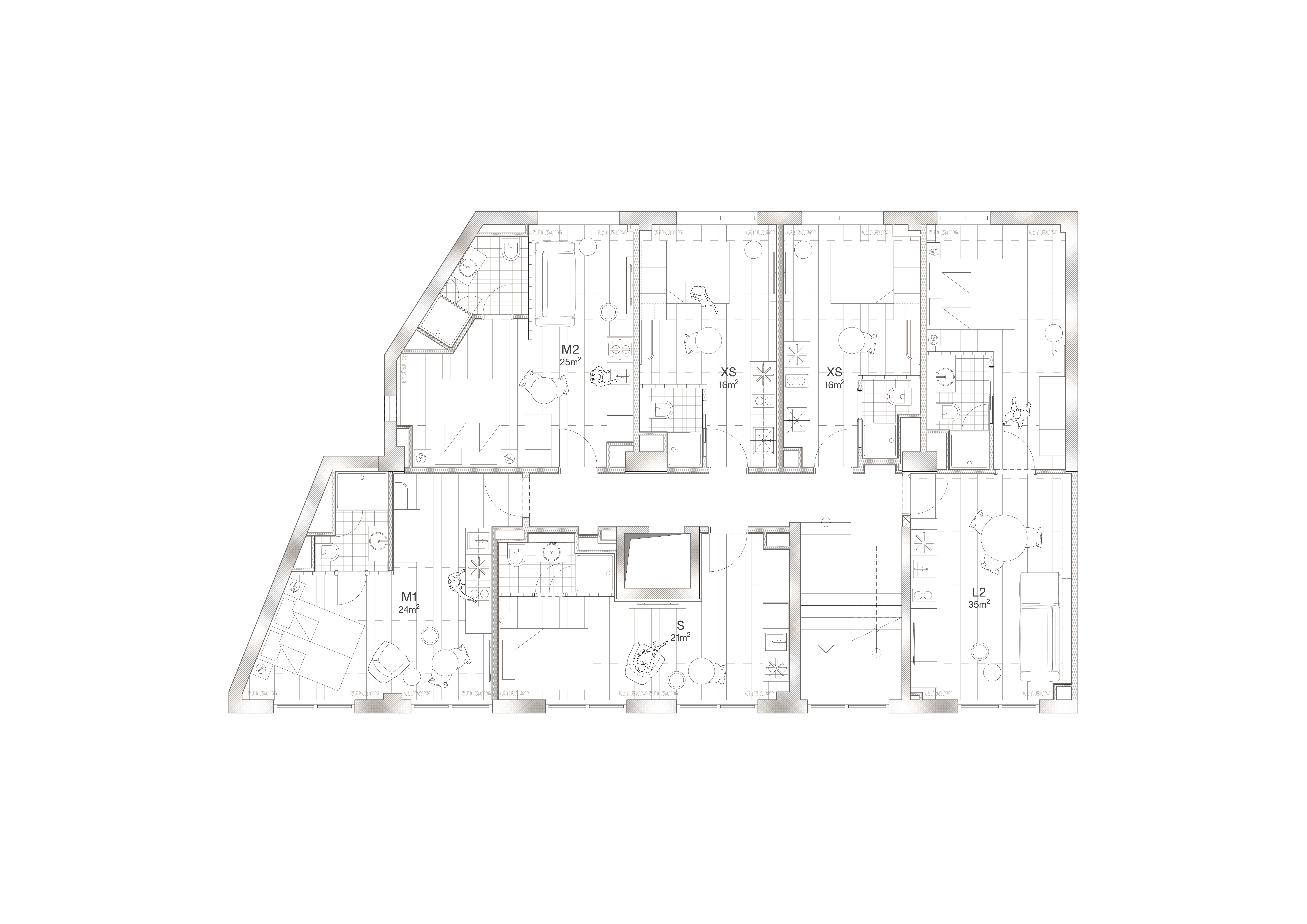 Coliving v známej bratislavskej "Metropolke" tvorí celkom 19 apartmánov, navrhnutých ako nájomné bývanie najmä pre mladých profesionálov a študentov vysokých škôl.