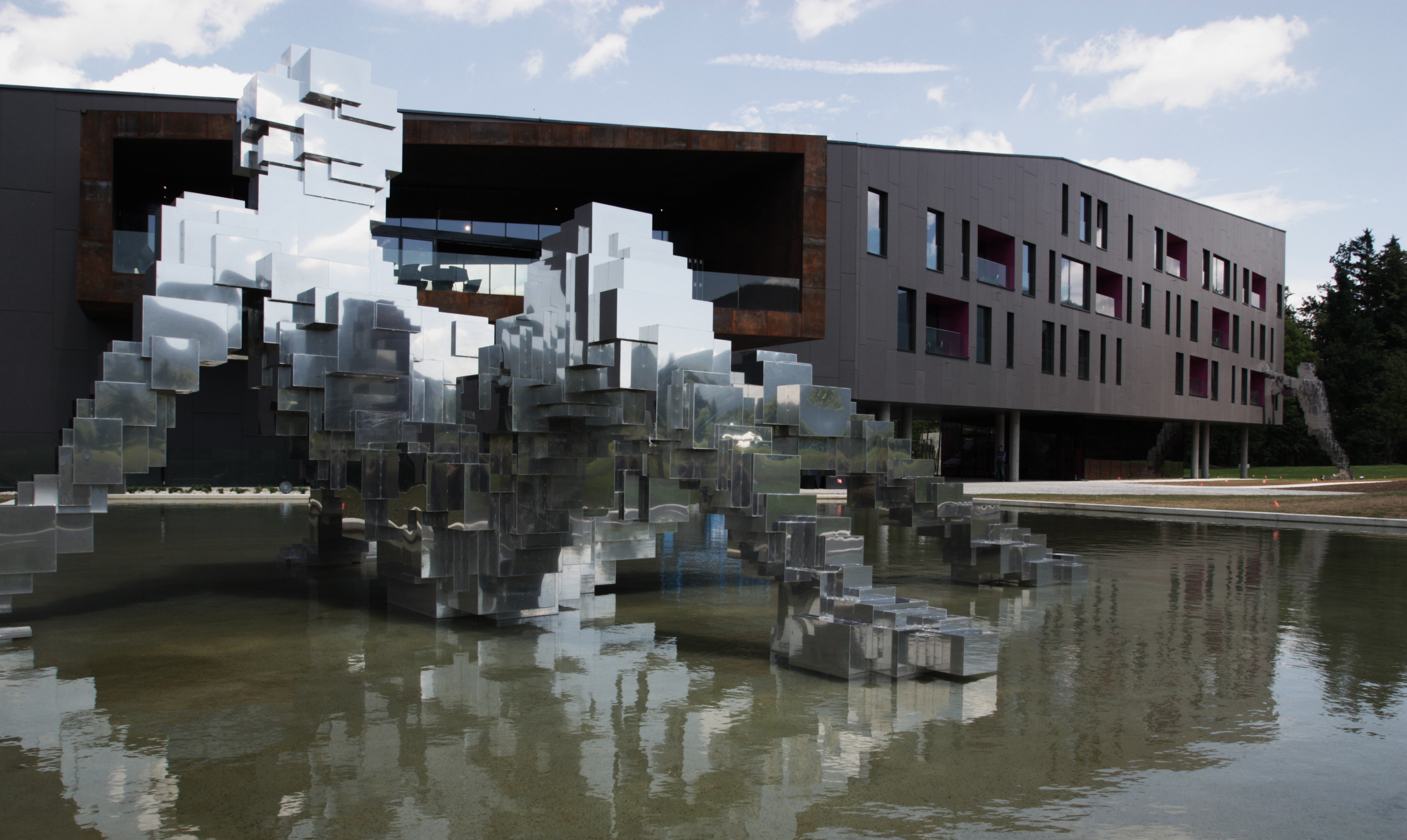 Od počátku byla stavba připodobňována k vesmírné lodi přilétající z jiného světa. Tento nový prvek do krajiny přirozeně zapadl. Jeho dynamická hmota v dálkových pohledech navazuje na panoramata okolních kopců a ve svém kontrastním výrazu území obohacuje. Idea je dále rozvedena i v sochách(krychlolidech), uměleckých dílech a grafice, které koexistují se stavbou a jejím okolím. Tento svět ponechává každému návštěvníkovi prostor k vlastní imaginaci. V budově se objevují nečekané prvky, je na každém pozorném vnímavém návštěvníkovi co objeví a jaký si k tomu vytvoří příběh. Umělecké díla v hotelu jsou originály od předních světových i českých umělců (Andy Warhol, David Černý, Henry Moore, Tony Cragg, John Armleder, Damien Hirst, Luca Pancrazzi, Petr Pastrňák)