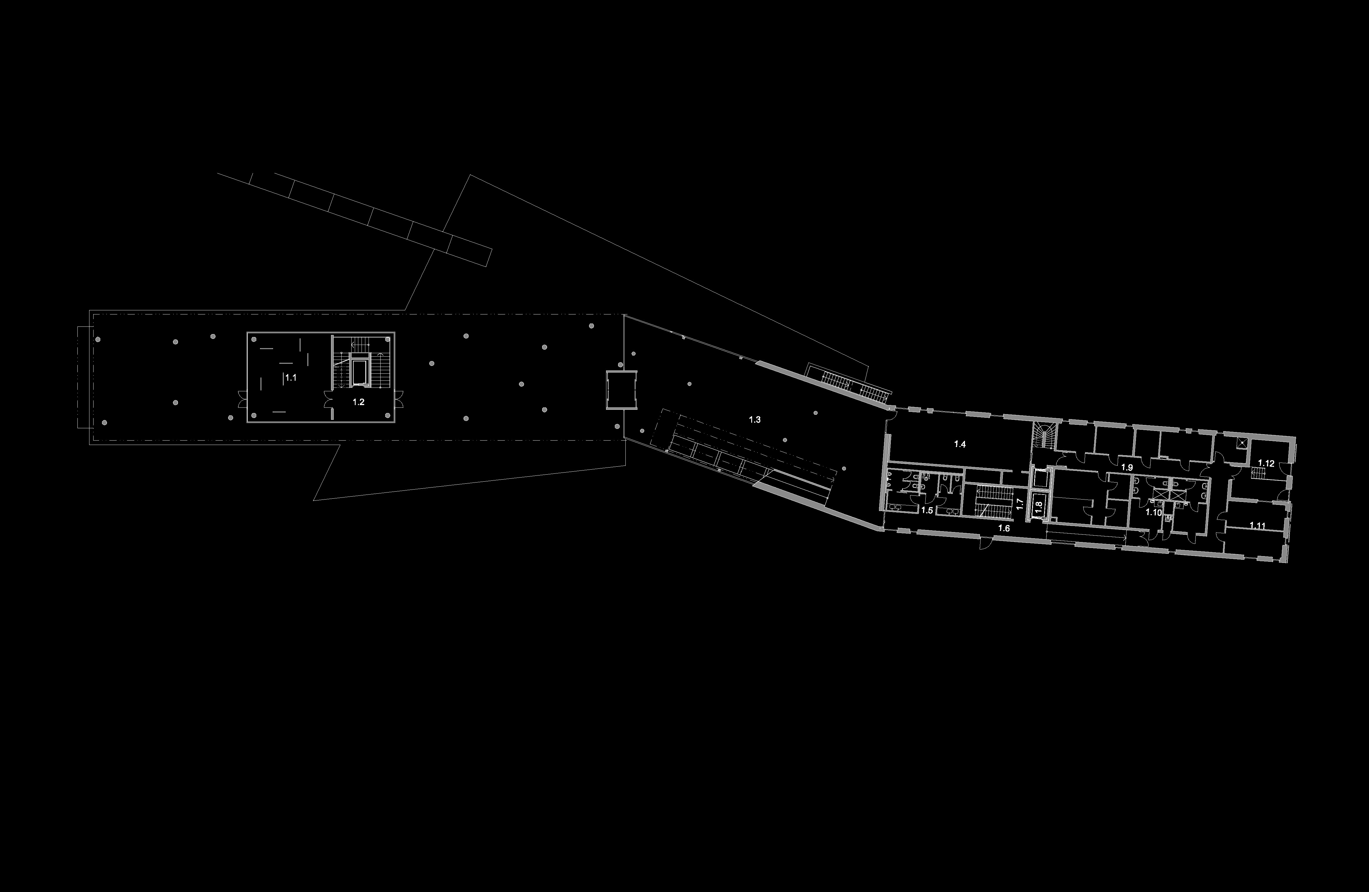 Tvar budovy reflektuje jeho funkční obsah. V geometrickém středu budovy se nachází funkční centrum hotelu – jeho hlavni vstup, lobby a restaurace. Tyto prostory jsou volně propojeny betonovou rampou a otevírají se do exteriéru velkými prosklenými plochami. Umístění restaurace v 2. patře a rozsáhlé prosklení jejích stěn poskytuje panoramatické výhledy na celé okolí hotelu.