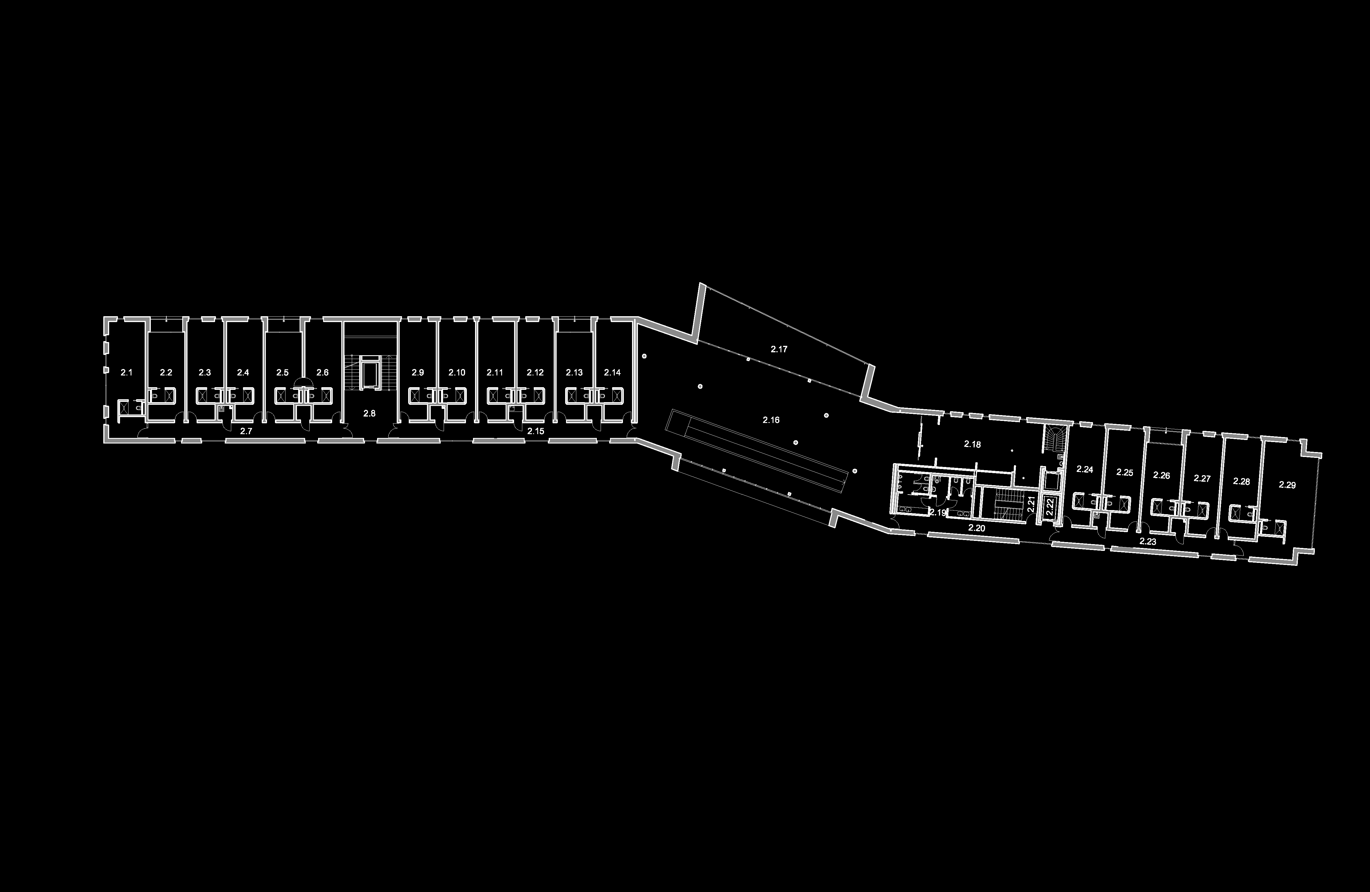 Na západ a východ od centrální části budovy navazují křídla ubytovacích částí. Všechny pokoje jsou orientovány na jih směrem k hlavnímu výhledu na golfový areál.