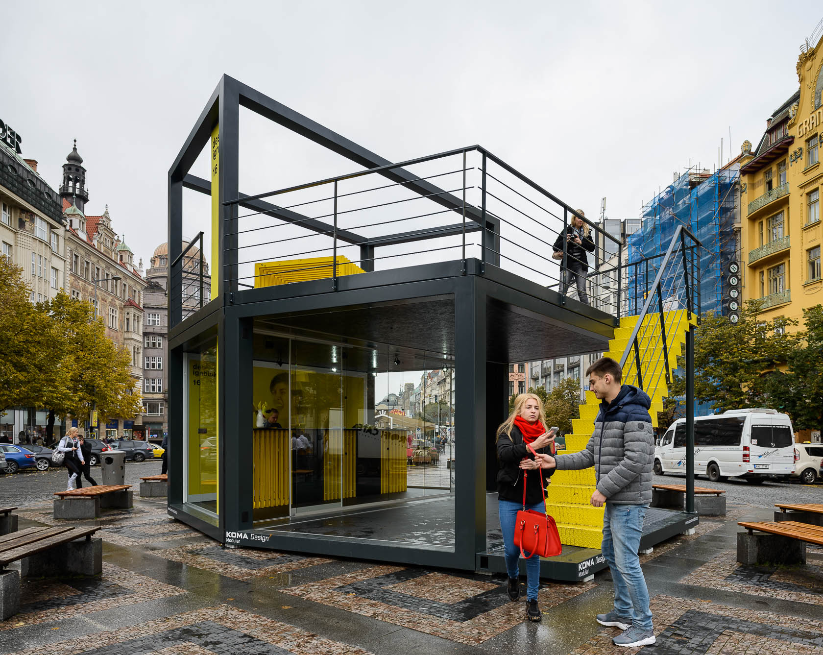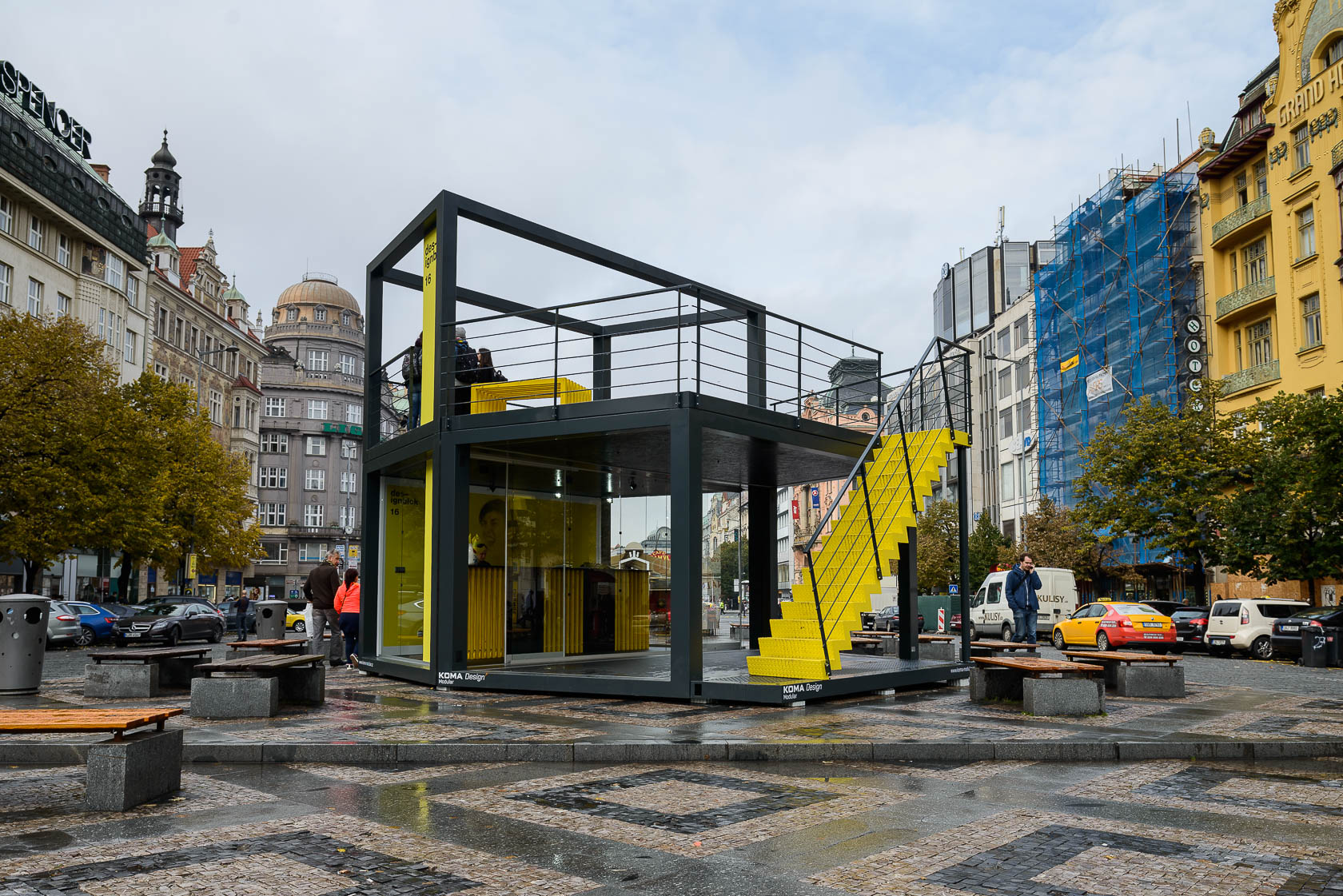 Návštevníci však moduly nestretli len na výstavisku. Druhým miestom, kde sa ľudia mohli oboznámiť s modernou modulárnou architektúrou, bolo informačné centrum Designbloku na Václavskom námestí. Pre túto lokalitu bol zvolený poschodový objekt zložený z troch modulov. Presklený modul, ktorý slúžil ako informačné centrum Designbloku, doplnili dva rámy modulu prepojené schodiskom. V hornej časti tak vznikla terasa s výhľadom na celé námestie. Návštevníci Designbloku a s ním spojeného Fashionweeku sa tak mohli zoznámiť nielen s najnovšími trendmi v oblasti úžitkového dizajnu, ale aj s drobnou modulárnou architektúrou. Výhodou tohto typu inštalácie je rýchlosť výstavby a predovšetkým variabilita.