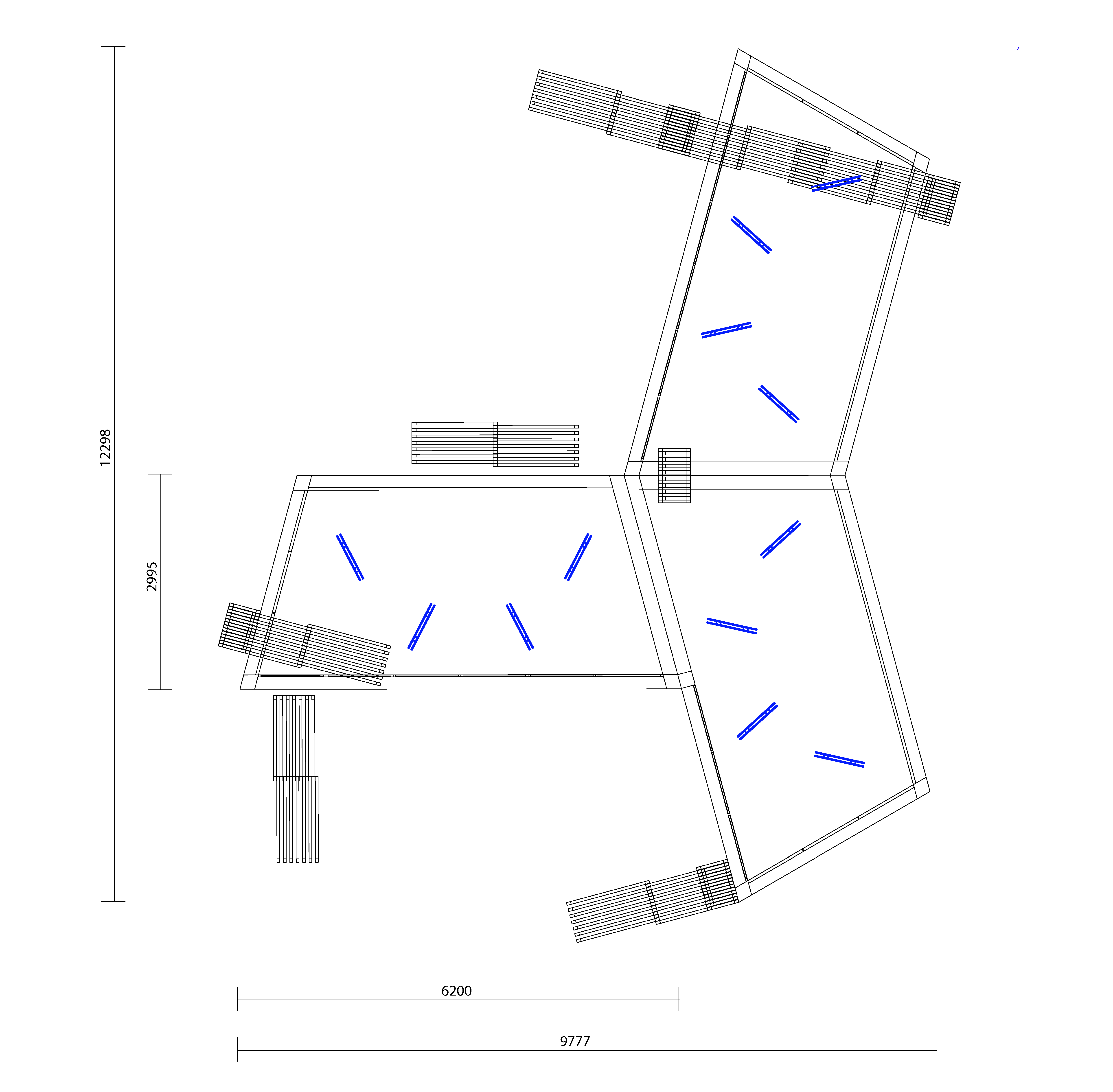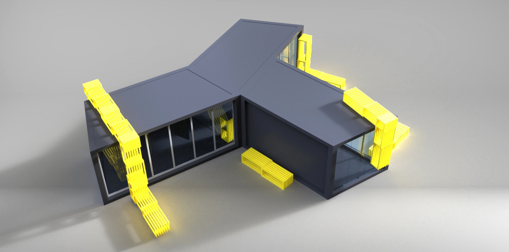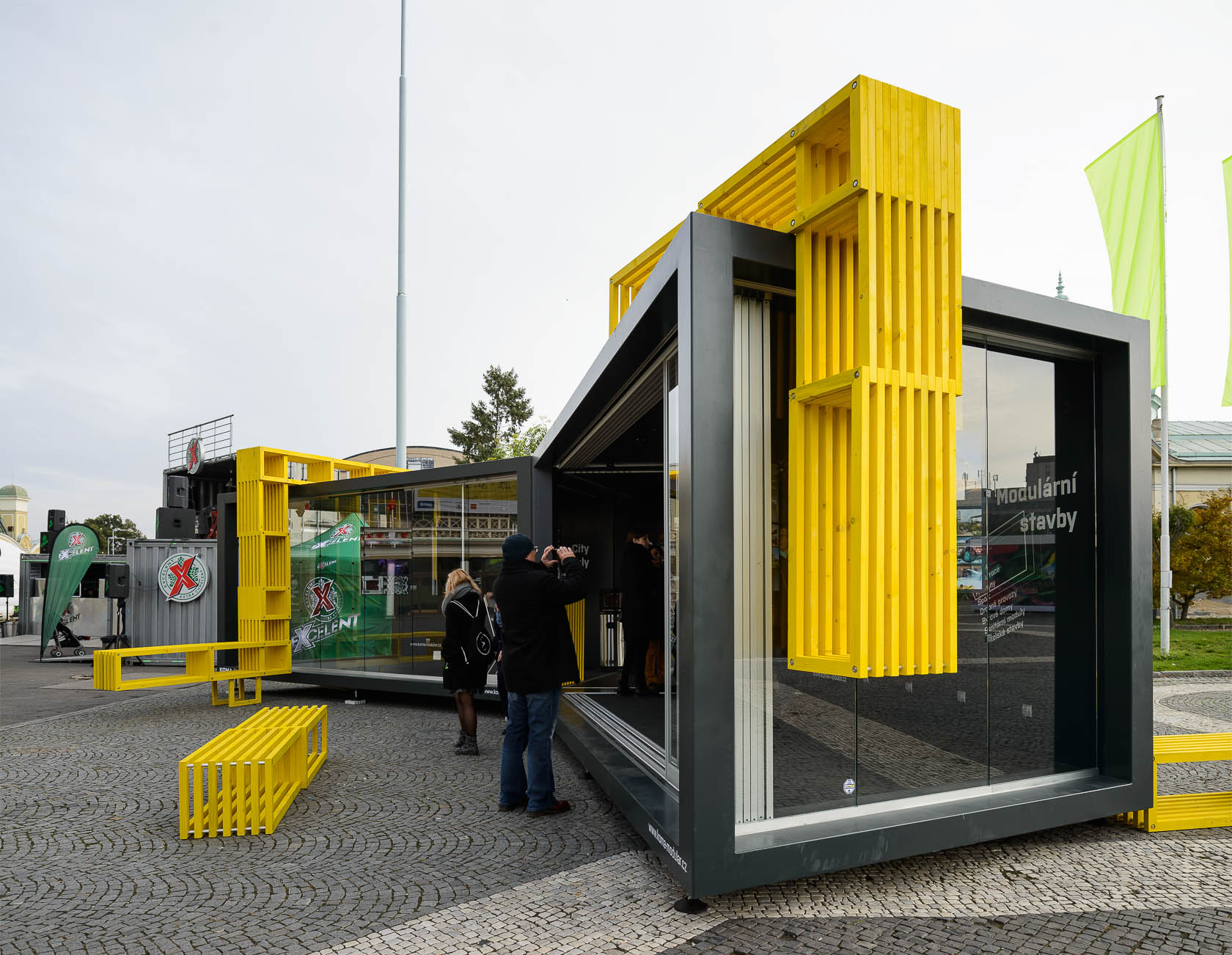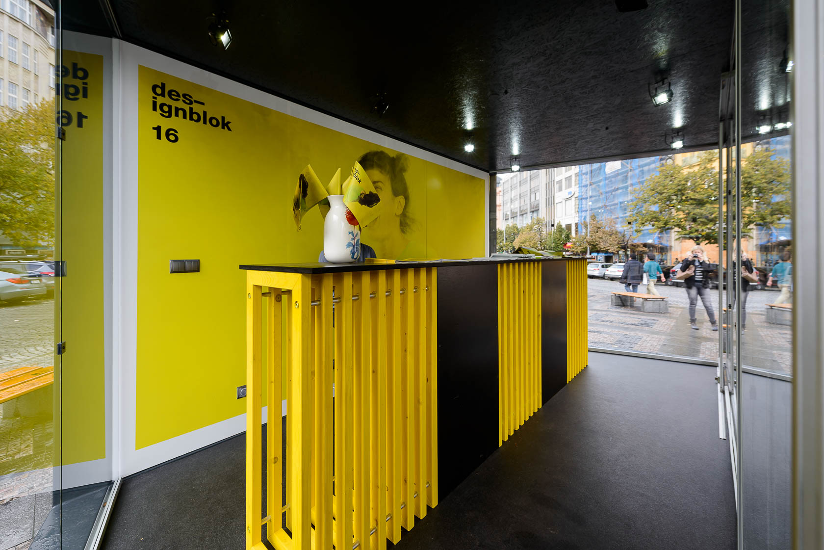 Boli tu inštalované tri čierne moduly doplnené drevenými prvkami, ktoré ladili s farbami tohtoročného Designbloku. V interiéri bola inštalovaná expozícia venovaná architektúre. V prvom module boli na výstavných paneloch prezentované realizácie modulárnych stavieb podľa využitia - reštaurácie, školské budovy, kancelárie, bytové domy, aj český modulárny pavilón EXPO 2015 v Miláne. V druhom module boli prezentované rôzne ideové návrhy mladých architektov. Zrejme najzaujímavejšie boli ideové návrhy na výstavbu modulárnej Jihočeskej filharmónie, bývanie pre seniorov či modulárne materské školy. V treťom module bola expozícia, ktorá prezentovala širokú škálu využitia modulov, vrátane úspešného pavilónu Lighthouse, ktorý sa stal stredobodom tohtoročného festivalu dokumentárnych filmov v Jihlave.