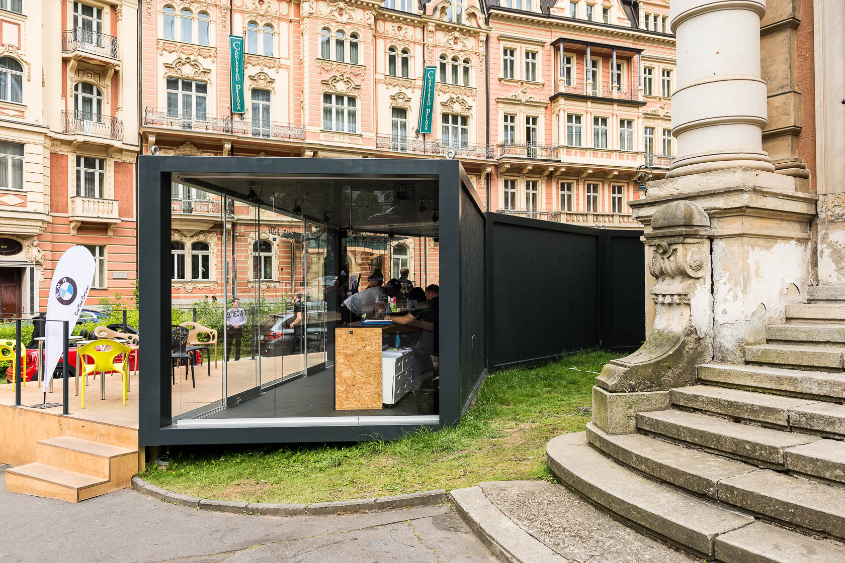 Počas Filmového festivalu v Karlových Varoch vyrástla neďaleko hotela Pupp zaujímavá dočasná stavba. Pavilón pre značku BMW stál priamo pred historickou fasádou hotela. Modulárny objekt bol inštalovaný na tomto mieste aj pred rokom, avšak v mierne odlišnej podobe.
