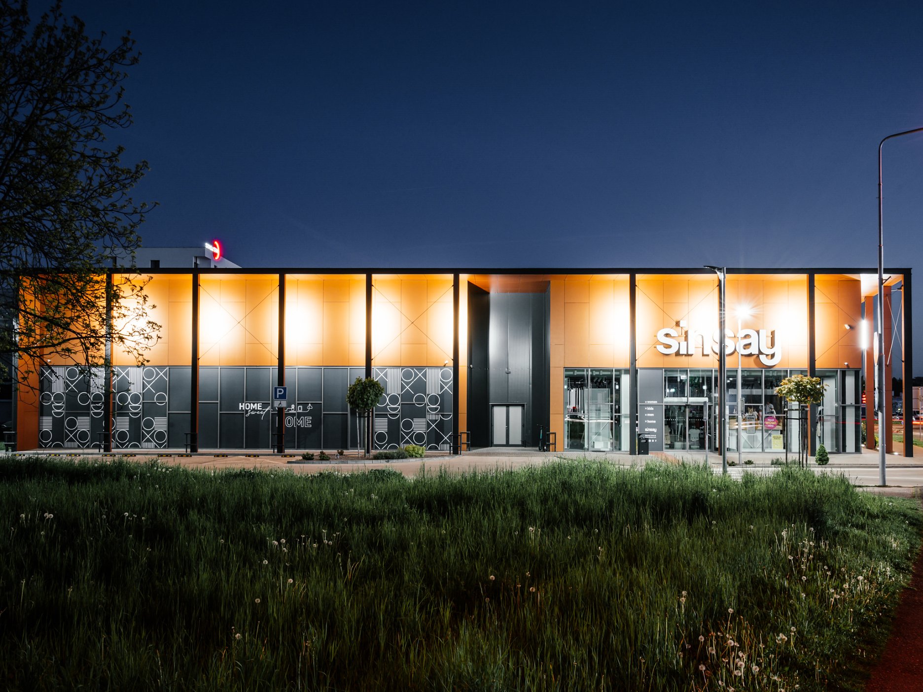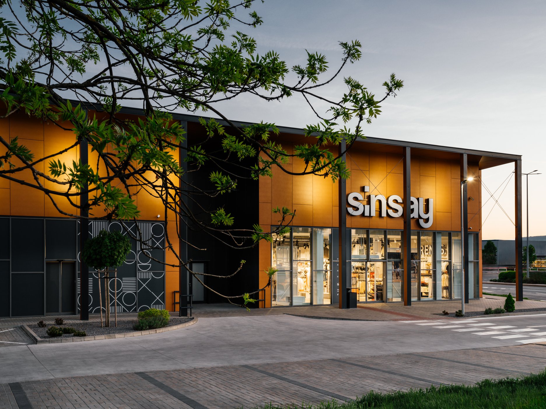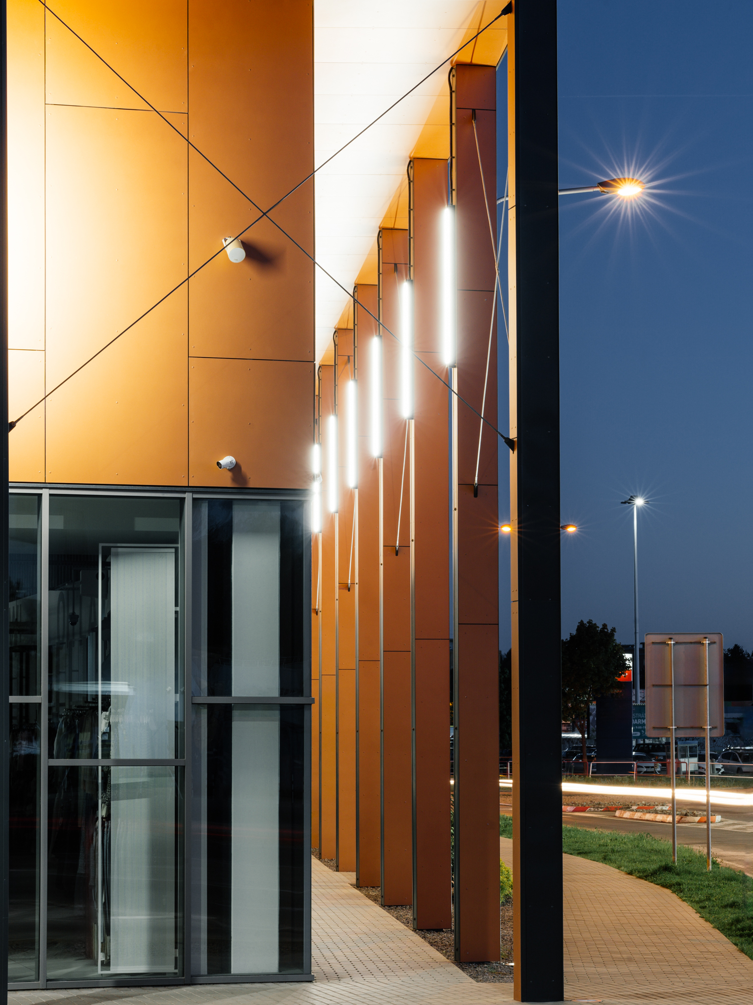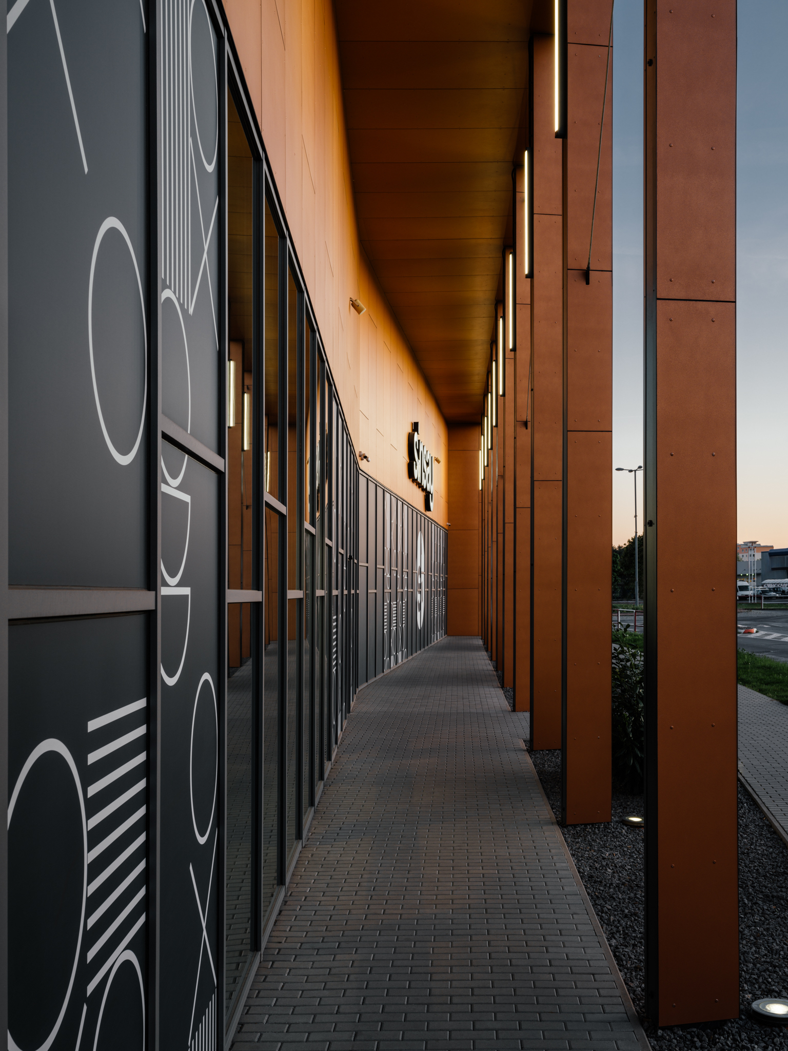 Stavba leží na vonkajšej strane bulváru, ktorý sleduje tok rieky a jej nábrežie. Kolonáda vysunutých stĺpov reaguje na toto prostredie a vytvára spomínané „mólo“ vykrojené z hmoty objektu. Pozdĺž obchodných prevádzok ponúka príjemný, chránený pohyb v exteriéri.