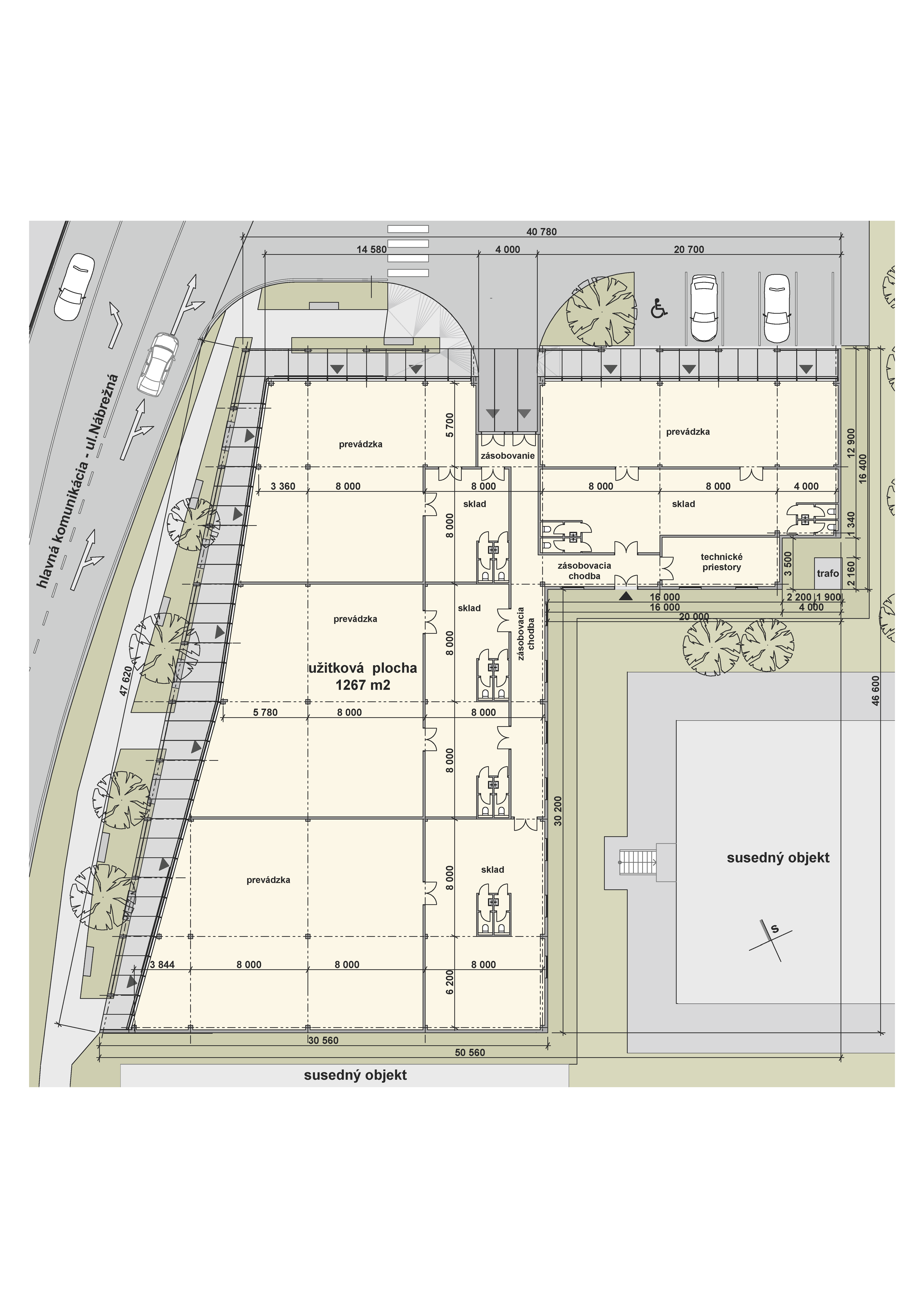 Investor požadoval maximálne zhodnotiť špecifický pozemok v tvare L, ktorý leží v tesnom susedstve dvoch existujúcich objektov pri hlavnej komunikačnej trase. Projekt mal ponúknuť variabilitu pre jednu alebo viacero prevádzok a jednoduché architektonické riešenie nadväzujúce na pešiu trasu vedúcu popri obchodnej zóne do prevažne rezidenčnej časti mesta.
