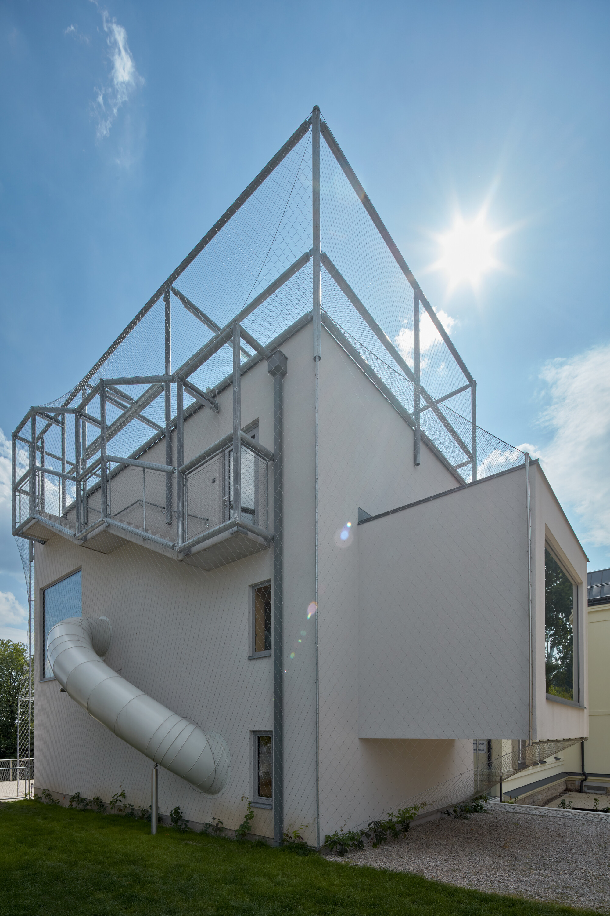 Prístavba škôlky z dielne ateliéru Mjölk architekti, šitá na mieru nespútanému pohybu detí a ich zvedavosti. Klient, ktorým je mesto Jablonec nad Nisou, ukazuje, že predškolské zariadenia z verejných zdrojov môžu vyzerať aj inak ako nudné typové "krabice". Architekti z libereckého kolektívu vytvárajú neobvyklé spojenie medzi budovami, priehľady v interiéri, herňu na streche, alebo šmýkačku "vybiehajúcu" do exteriéru...