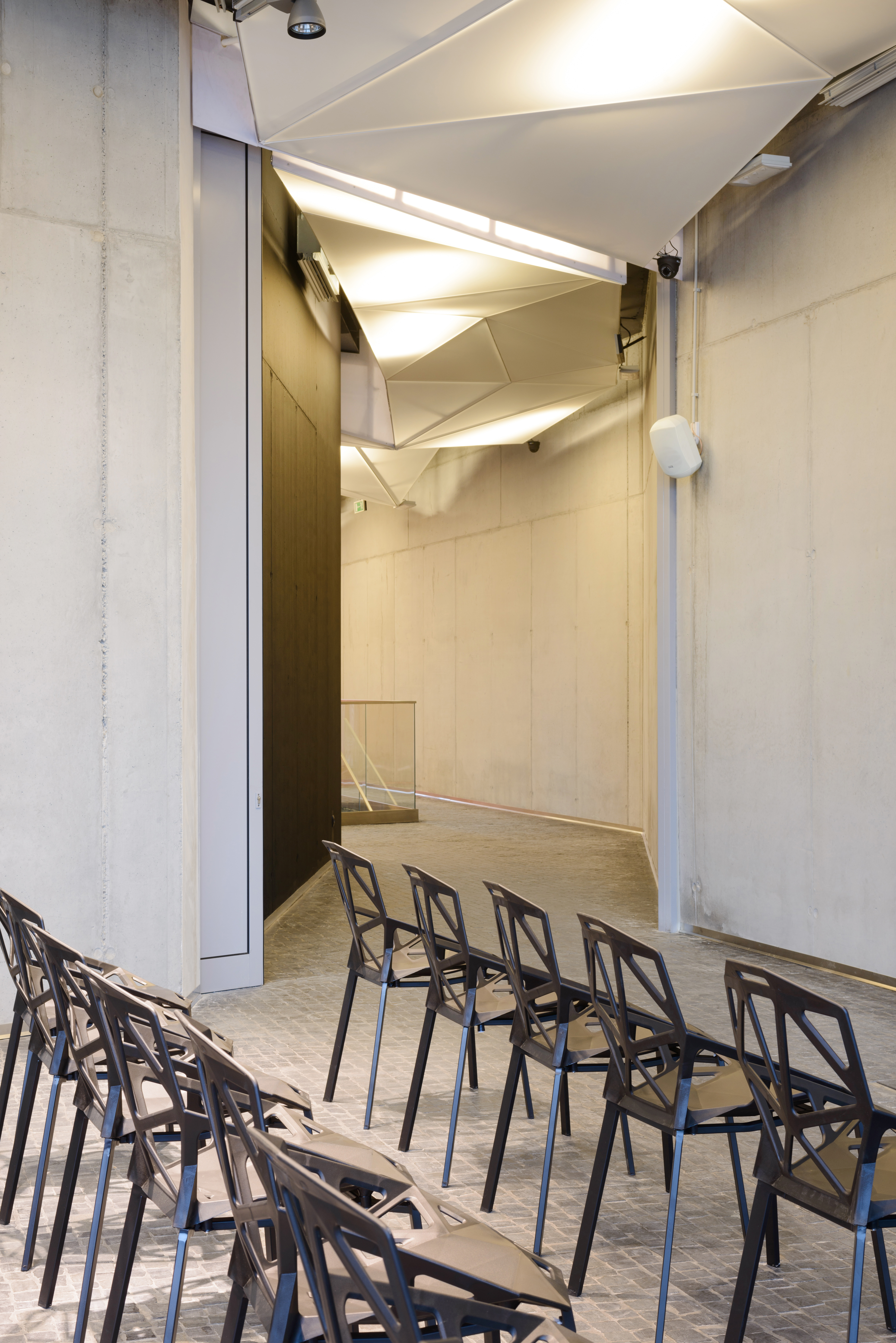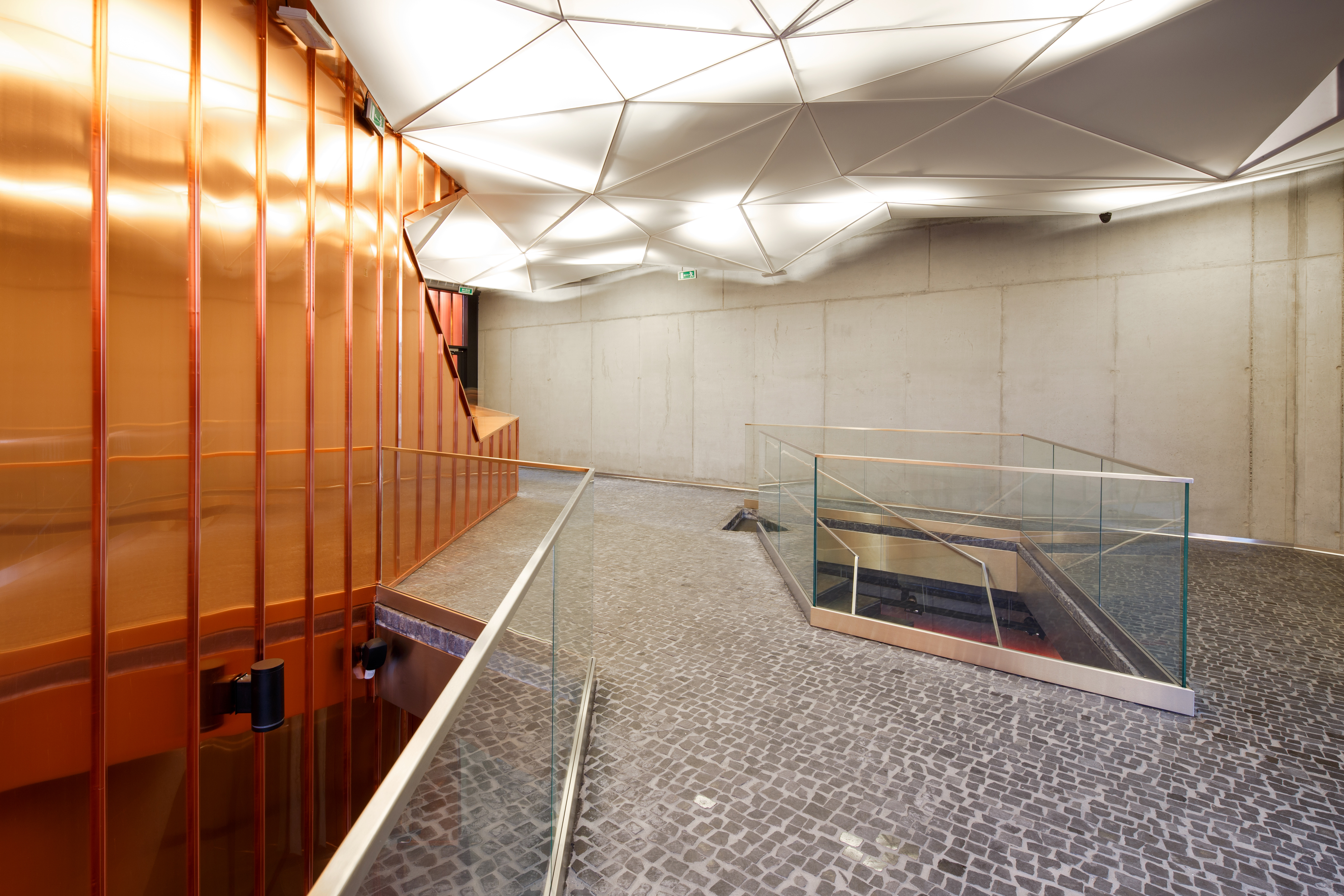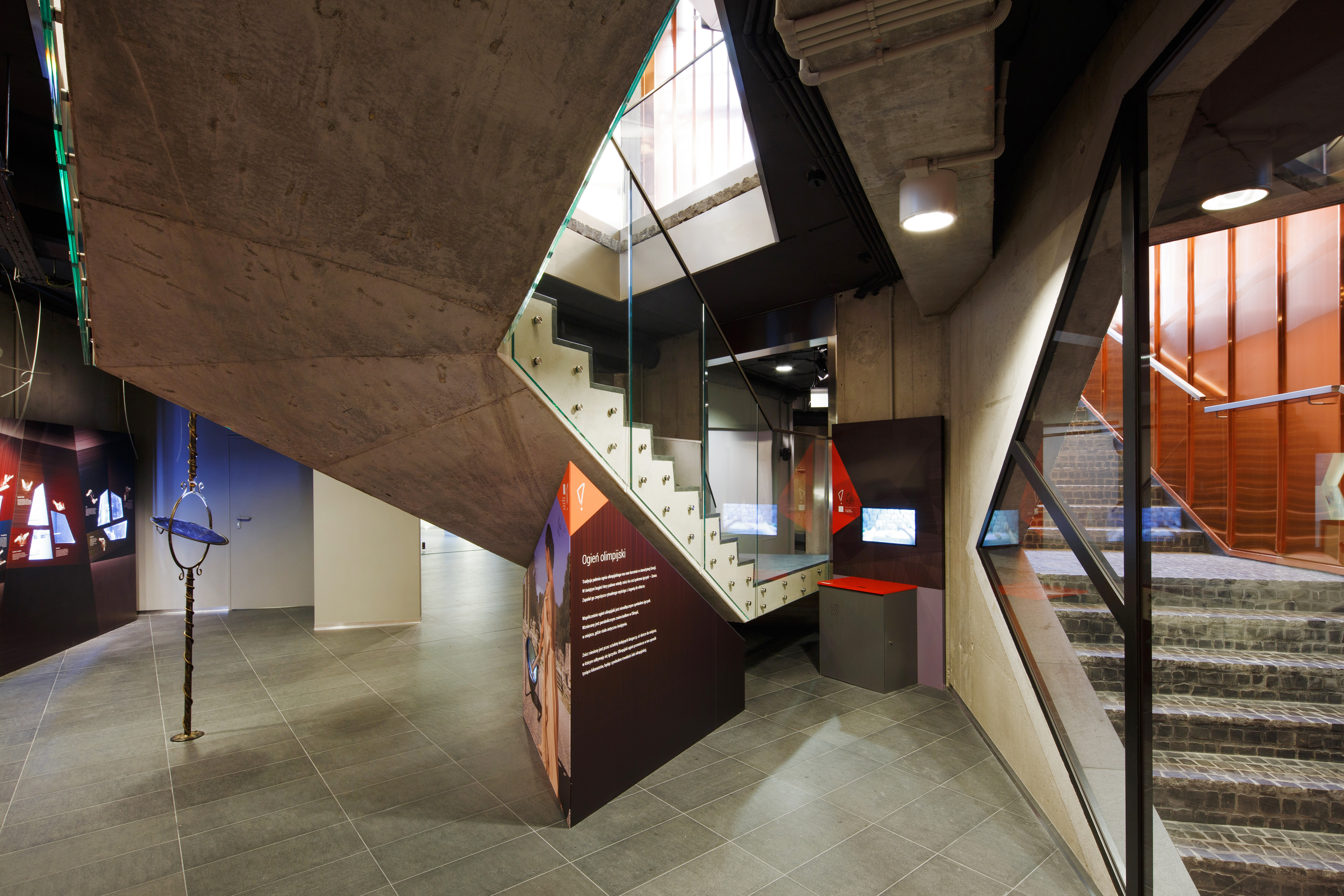 Klient sa pri stavbe rozhodol použiť pre veľkú výstavnú sieň priestor na podzemnom podlaží. Budova má tri vchody slúžiace multifunkčnej hale a recepcii na prízemí a výstavnej sále s multimediálnou expozíciou na podzemnom podlaží.