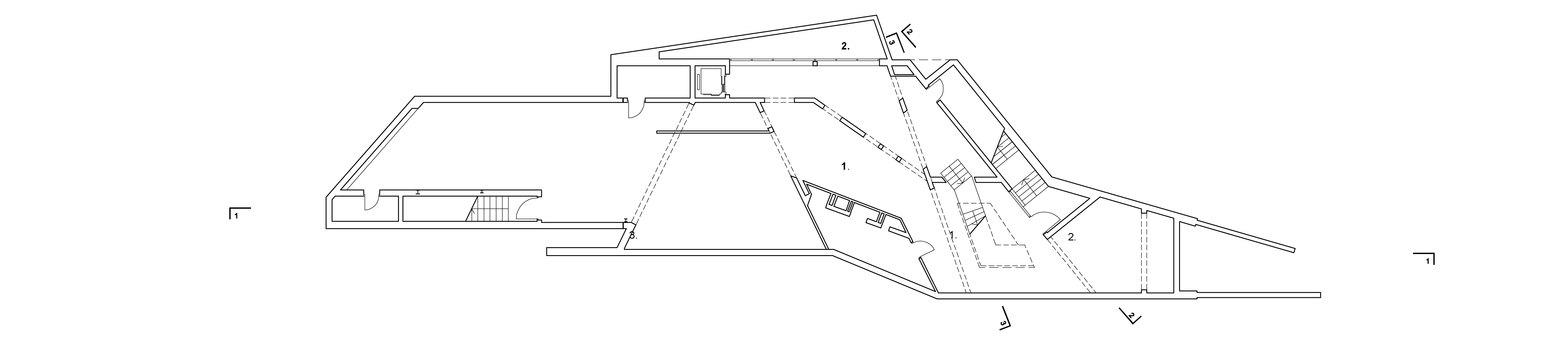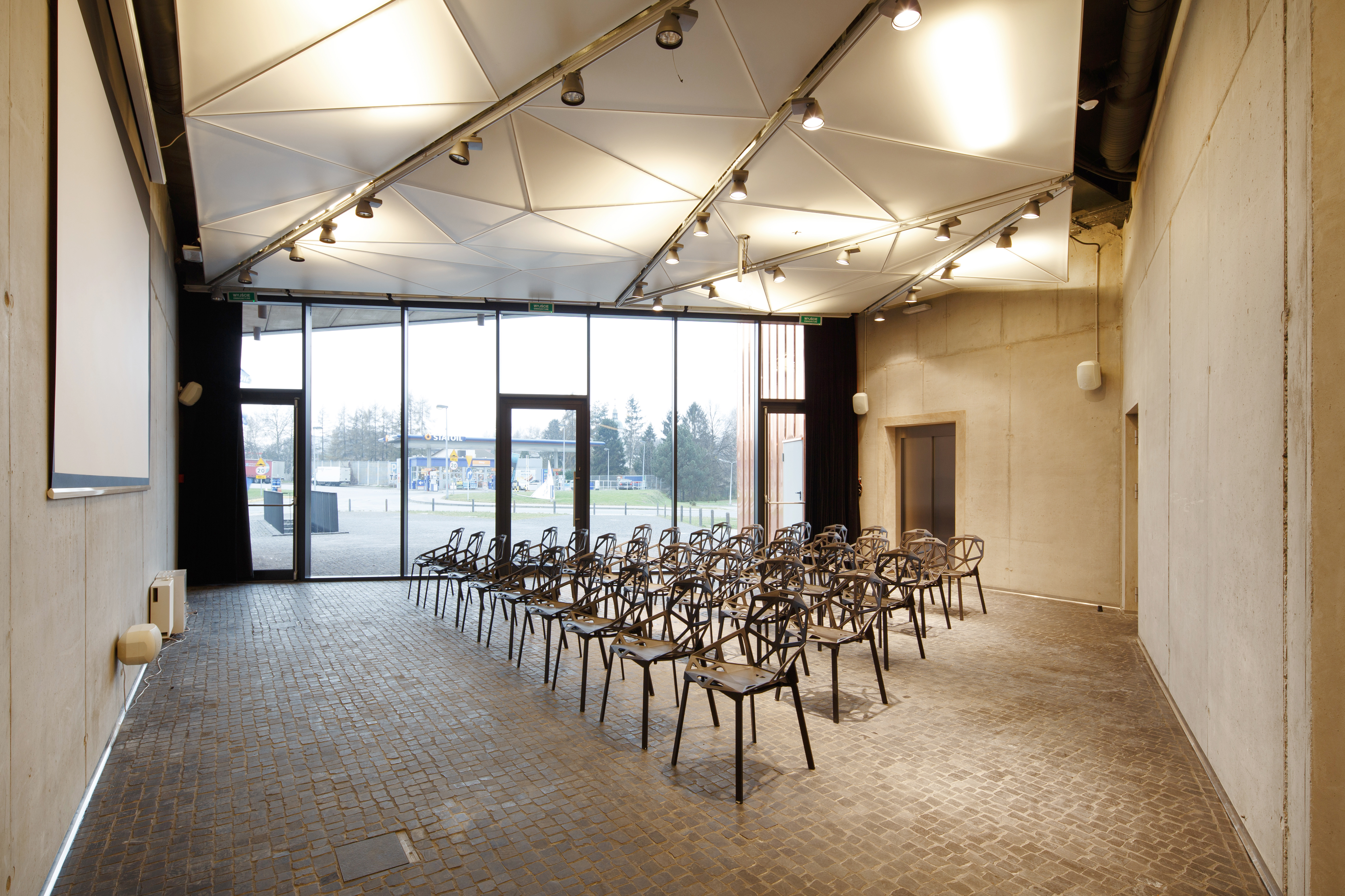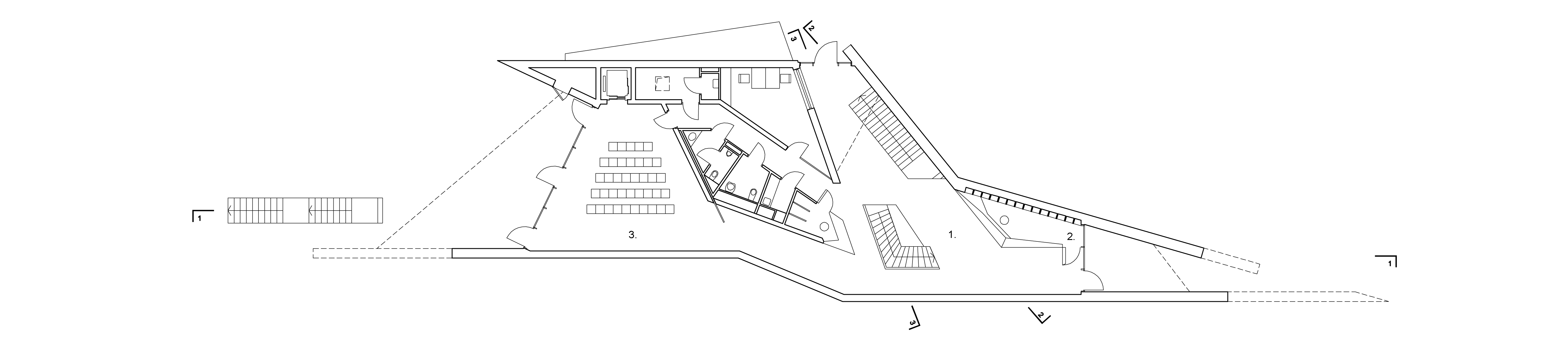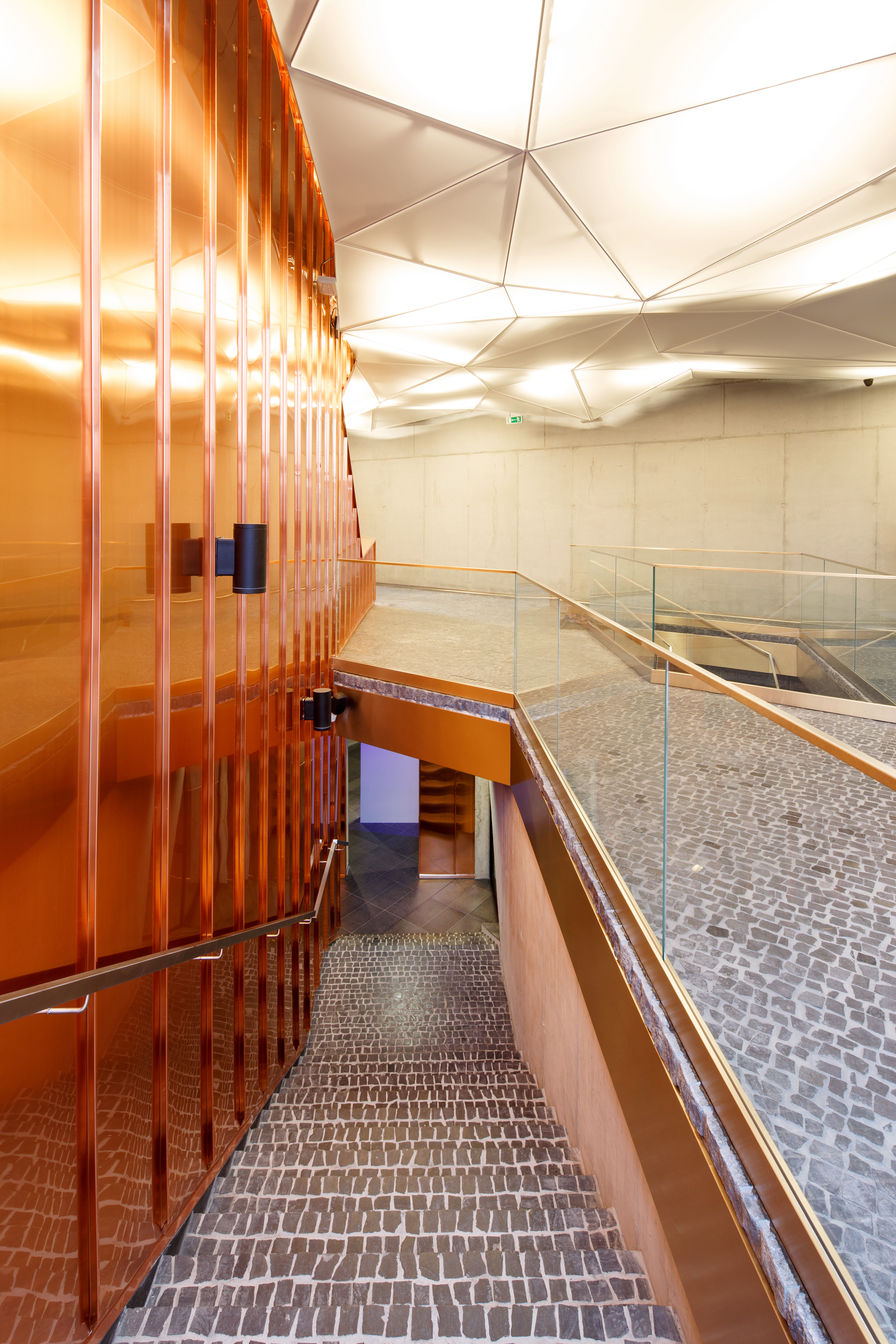 Klient sa pri stavbe rozhodol použiť pre veľkú výstavnú sieň priestor na podzemnom podlaží. Budova má tri vchody slúžiace multifunkčnej hale a recepcii na prízemí a výstavnej sále s multimediálnou expozíciou na podzemnom podlaží.
