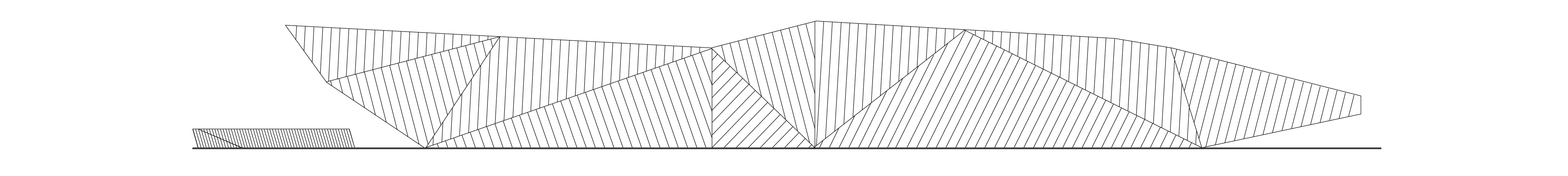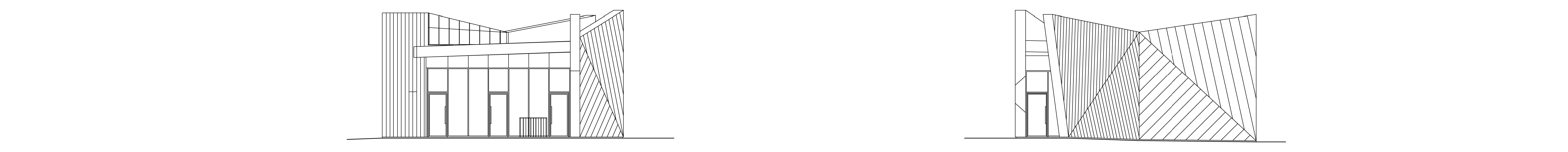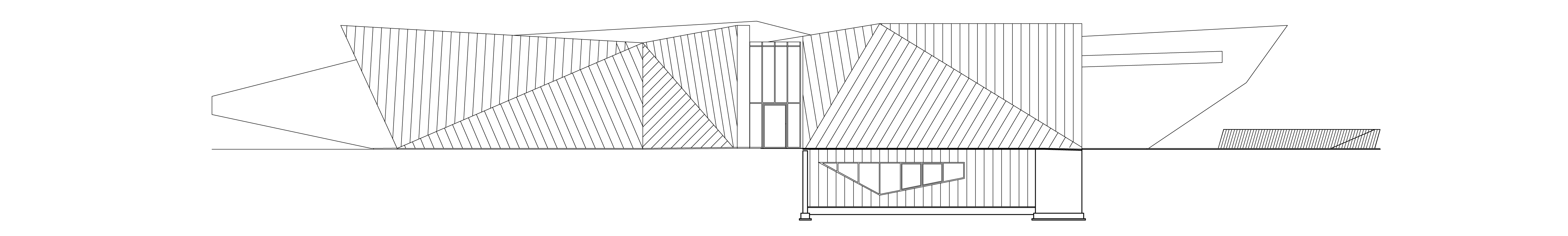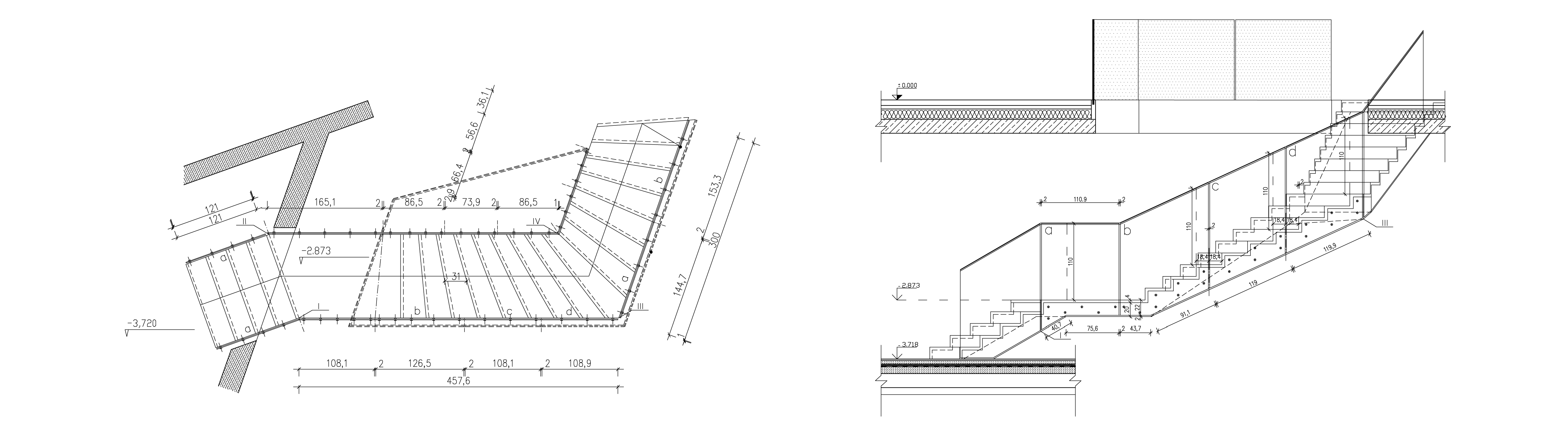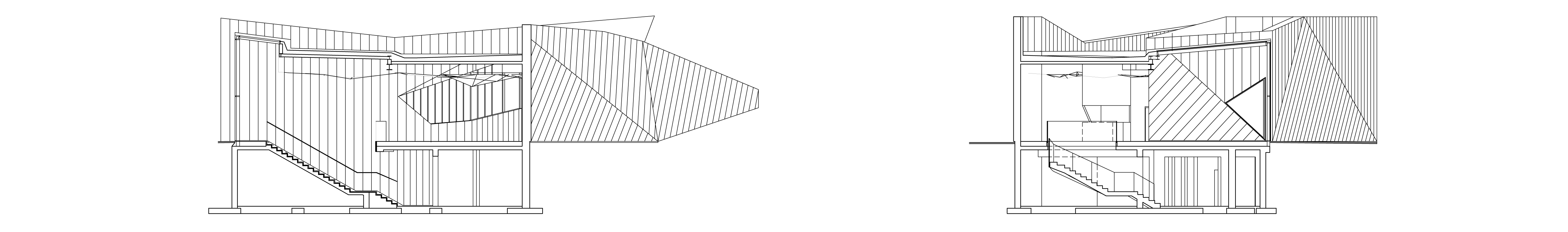 Tri zalomené železobetónové steny tvoria vertikálne nosné prvky dvojpodlažnej stavby. Priestor medzi nosnými prvkami vypĺňajú presklené steny. Vstup do pavilónu je situovaný na severnej strane. Betónové steny sú na vonkajšej strane izolované a opláštené medenými panelmi, vo vnútri sú odkryté v pohľadovej kvalite. Podlaha je dláždená tmavým kameňom, ktorý prechádza až do exteriéru.