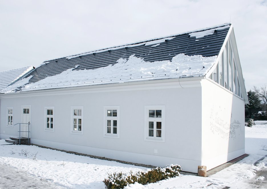 Zámerom bolo previazať klasické črty ľudovej architektúry s jej novou reprezentatívnou náplňou. Slúžili nám k tomu rôzne pôvodné, aj novonavrhované prvky, všetko na bielom pozadí, aby nebol rušený konečný dojem starého a nového. Neprehliadnuteľným architektonickým akcentom je južná fasáda - štít, ktorá by mal upútať okoloidúcich, naznačiť dôležitosť objektu a vtiahnuť ich do umeleckého dvora, dotvoreného v 2. etape ešte doplnkovým objektom "Stodoly". Základným cieľom architektonického návrhu bolo minimalizovať zásahy do hmoty pôvodného objektu. Objem, pôdorysný tvar, fasádne priečelia ostali v pôvodných kontúrach. Zachované ostali aj otvory z východnej strany, kde je navrhnutý hlavný vstup do priestorov múzea, difúzne presvetlenie hygienického zázemia a priznaný fajermúr po asanovanej dvornej časti objektu. Celý objekt je biely, aj s existujúcim fasádnym profilovaním atiky, aby vyznel jeho pôvodný ráz. Odstránením OSB opláštenia štítu nám vznikla výrazná presvetlovacia plocha, ktorá po vybúraní stropných prvkov nám umožňuje lepšie presvetlenie interiéru. V štíte je erb obce - holubica, ktorá vrhá do interiéru svoj tieň, čo má viacero významov. Táto južná fasáda je doplnená mapou pôvodnej Devínskej, ktorá je ďalším významným pútačom - infotabuľou histórie obce. Tento prvok sa stane v buducnosti sučasťou informačného systému obce. Dvorný priestor bude v 2. etape dotvorený drevenou "stodolou" ako odkazom na asanovanú časť objektu, ale aj ako demonštrácia klasických tesárskych postupov pri výstavbe drevených konštrukcii. Budu v nej osadené väčšie exteriérové exponáty. Bude slúžiť aj pre rôzne kultúrne podujatia.