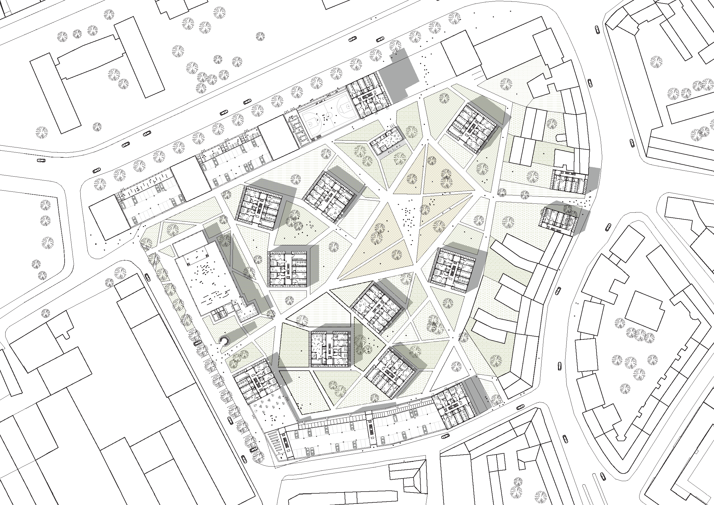 Zajímavé propojení stávající a nové zástavby velkorysým prvkem. Částečně se pohybuje v uličních čárách a vytváří dostatečně rozsáhlý vnitřní prostor s možností prostupu do okolní zástavby. Zachovává fragmenty původní zástavby a vytváří velký a detailně propracovaný komunitní dvůr. V rámci dispozic porota vyzdvihuje kvalitní přemýšlení o komunitním bydlení s akcentem na budování komunity včetně respektování kontextu. Prezentace je střídmá, jasná a na vysoké estetické úrovni.