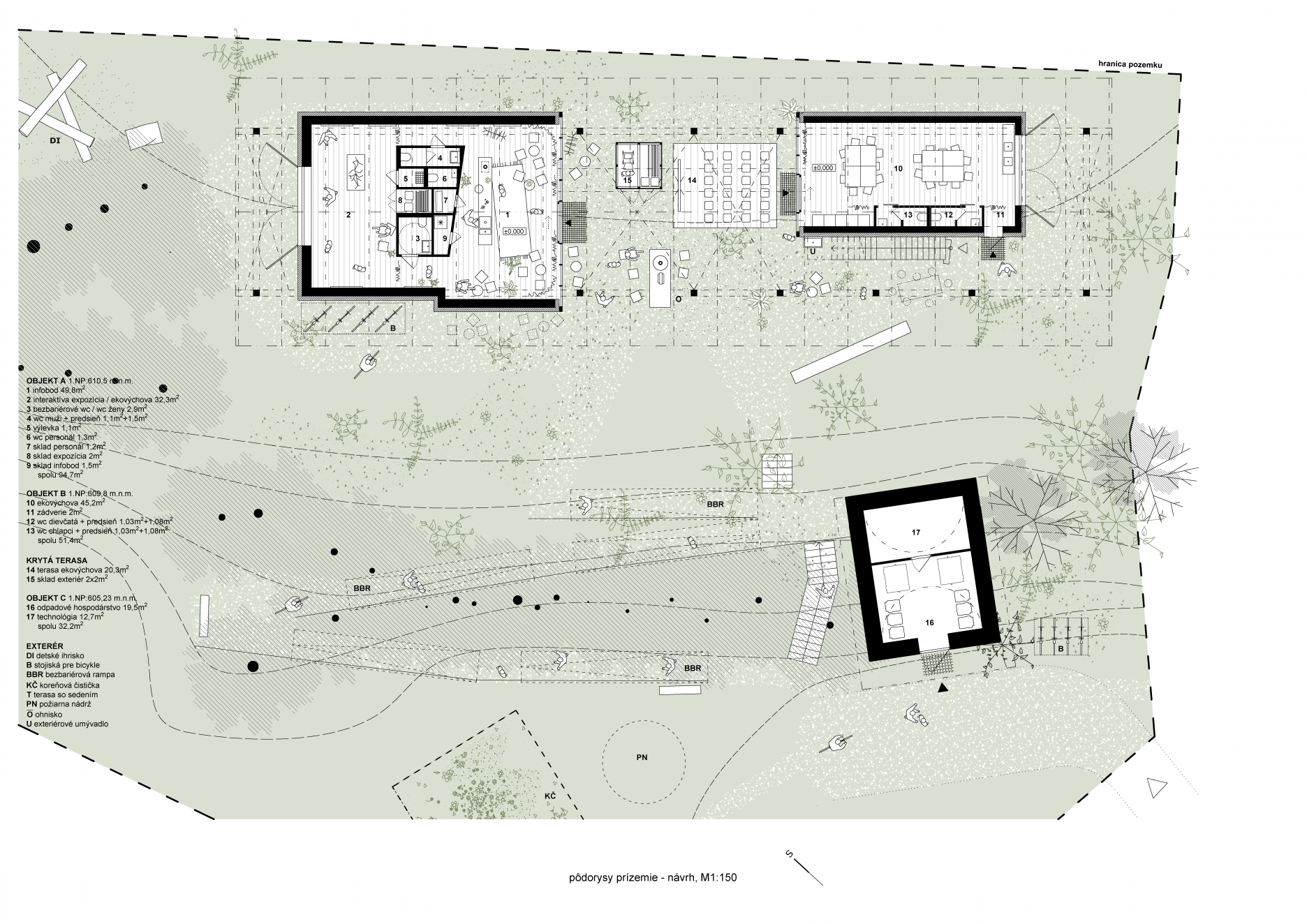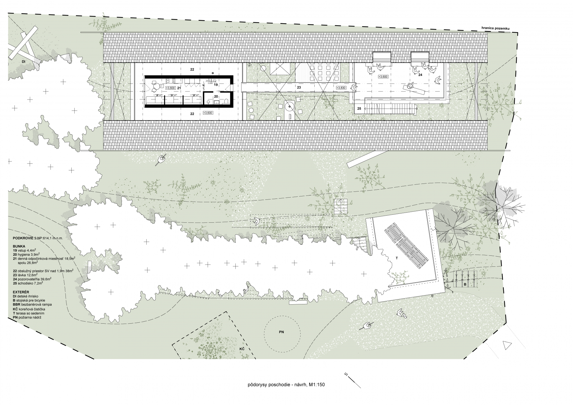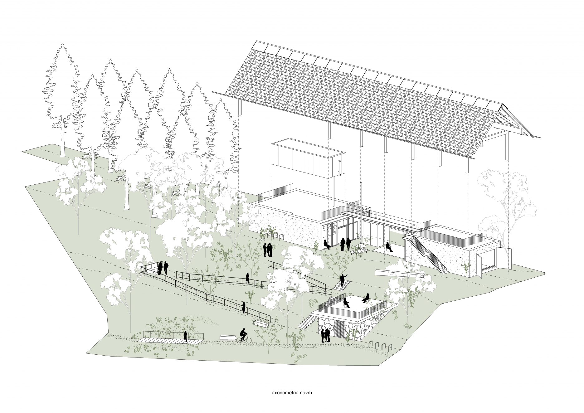 V objekte počítajú architekti s umiestnením infobodu s drobným občerstvením a expozície, ktorú je v prípade potreby možné využiť ako rozšírenie environmentálnej výchovy.