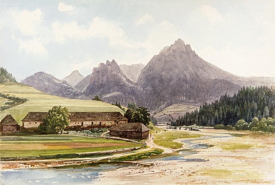 Akvarel Nový Zichyovský majer vo Vrátnej doline z 19.stor. od Thomasa Endera: