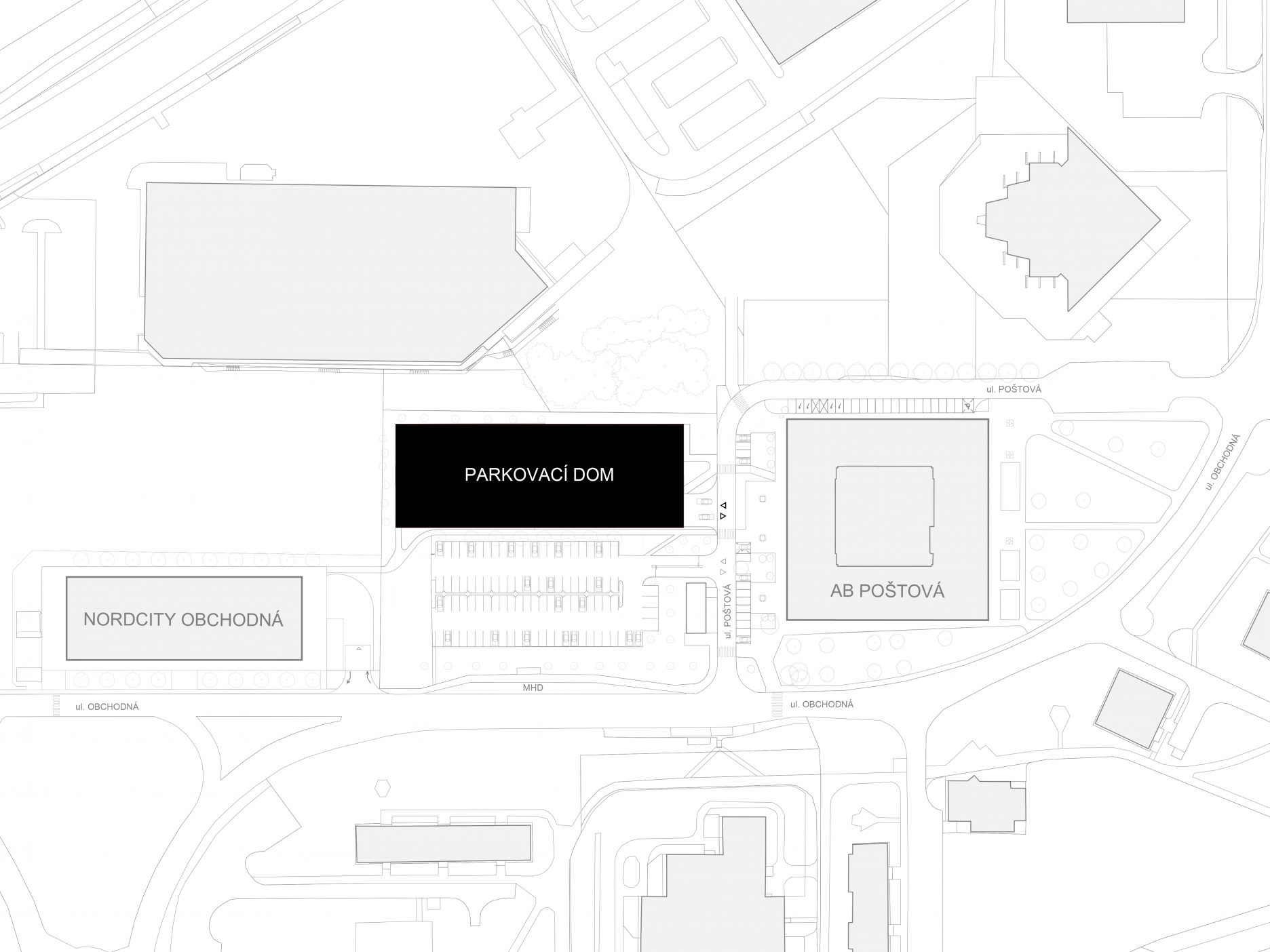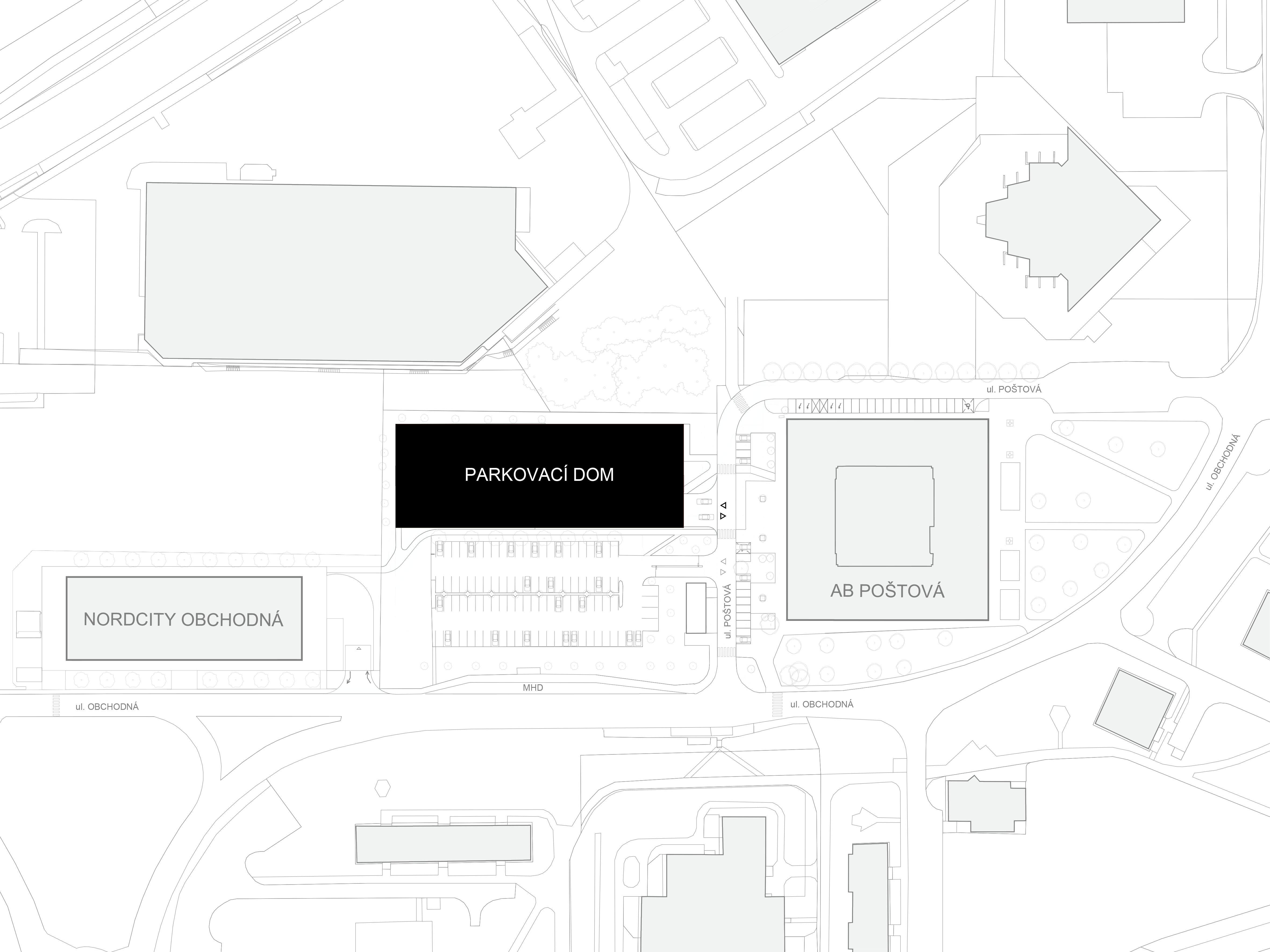 Potreba vybudovania parkovacieho domu vznikla z vyšších nárokov na statickú dopravu k zrekonštruovanému administratívnemu objektu na Poštovej ulici 1 a novopostavenej Administratívnej budove na Obchodnej ulici v Žiline, v rámci zóny NORDCITY Obchodná. Pôvodný pozemok bol rovinatý s dvoma výškovými úrovňami, na ktorom bolo parkovisko na spevnených plochách na teréne. Parkovacie plochy s kapacitou 587 parkovacích miest slúžia pre zamestnancov a návštevníkov zóny NORDCITY Obchodná a obyvateľom priľahlého sídliska.
