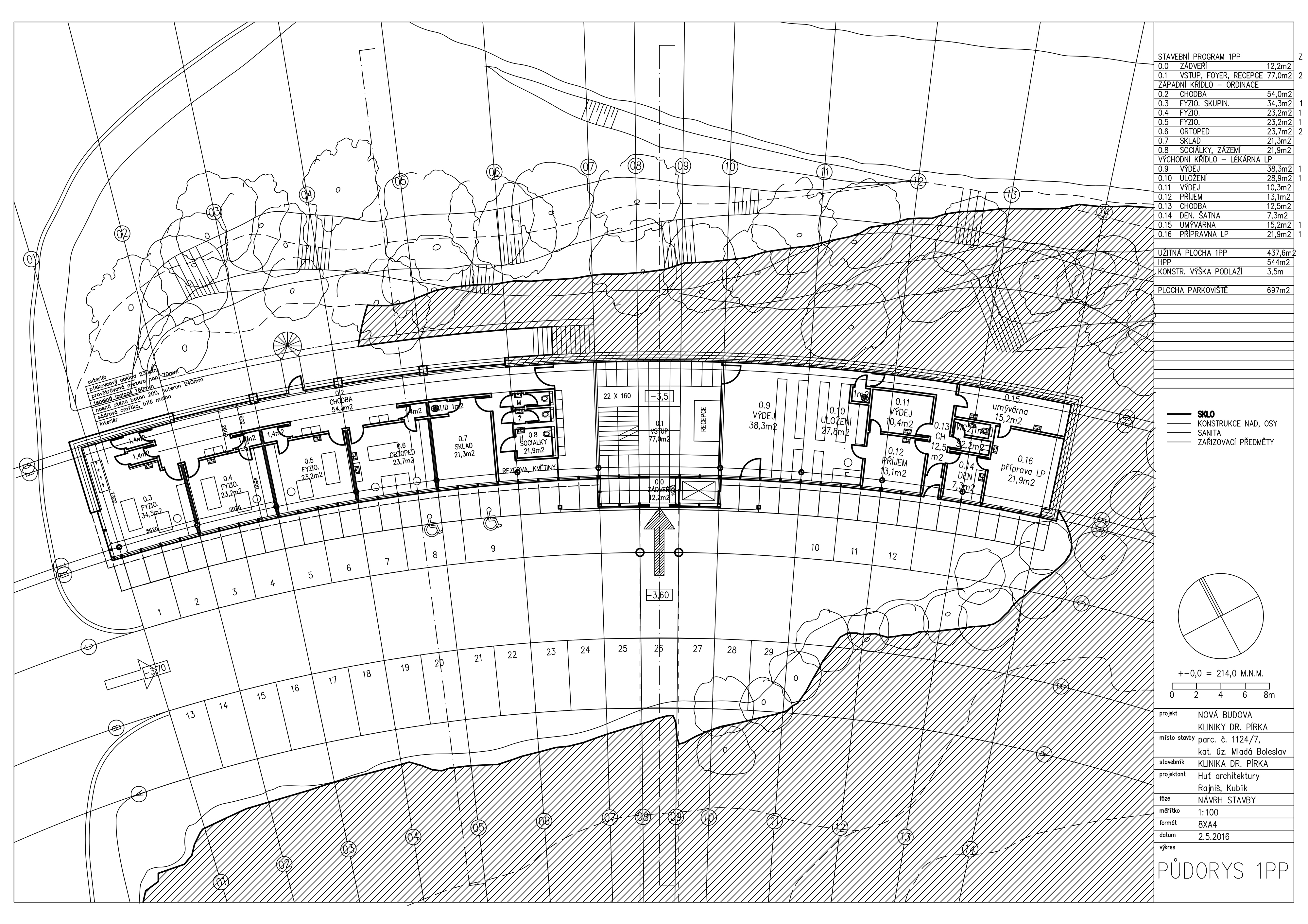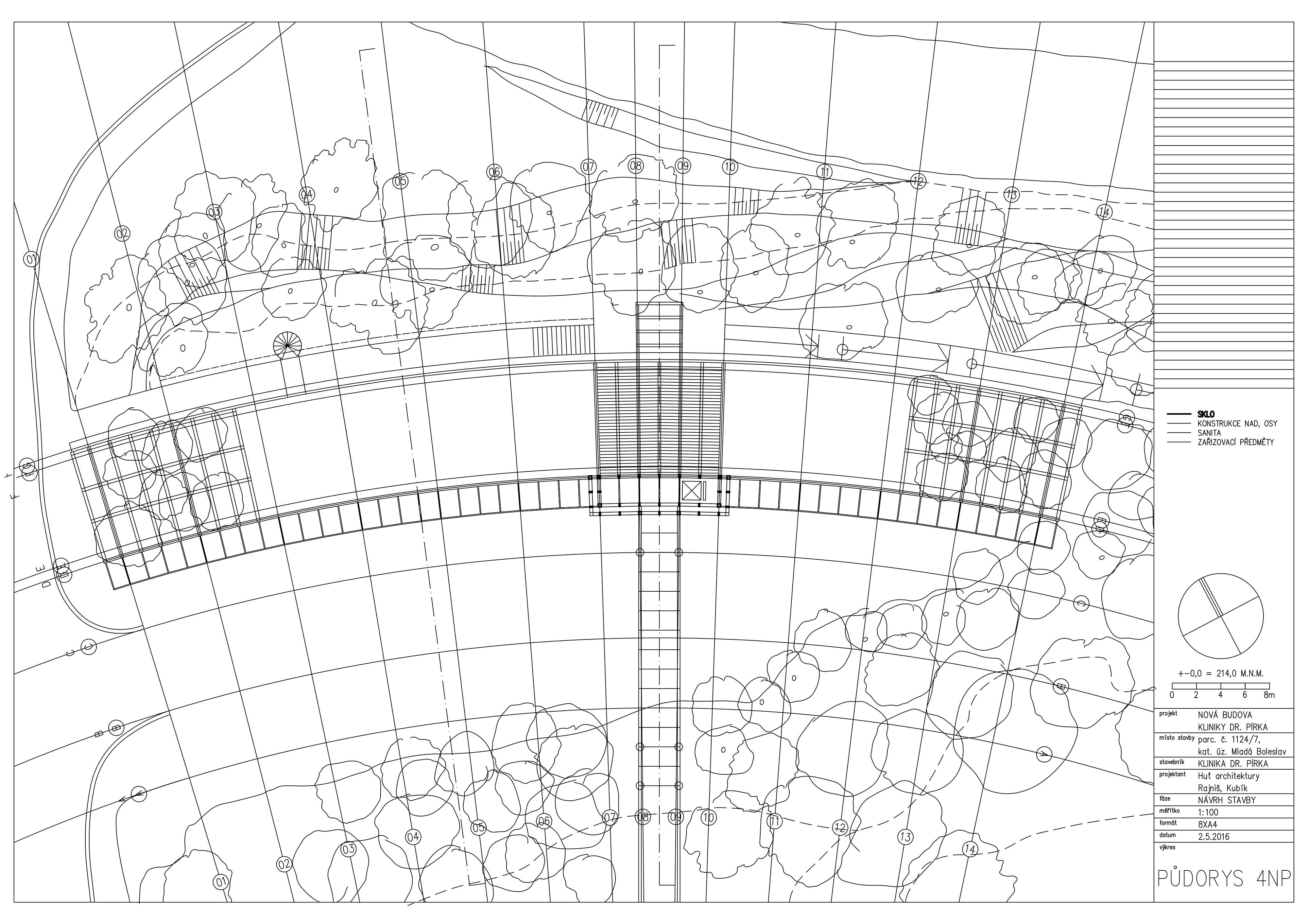 Cieľom vedenia kliniky nebolo len postaviť moderný multifunkčný zdravotnícky pavilón, ale tiež funkčne rozšíriť historicky hodnotný areál a novú stavbu čo najšetrnejšie zasadiť do okolitého prírodného prostredia. Pavilón je prostredníctvom lávky priamo prepojený s parkom. Stavba obopína skalnú vyvýšeninu, na ktorej stojí staršia časť areálu kliniky. Štíhla, jemne zakrivená budova je dôstojným pokračovateľom tradície mladoboleslavských zdravotníckych zariadení.