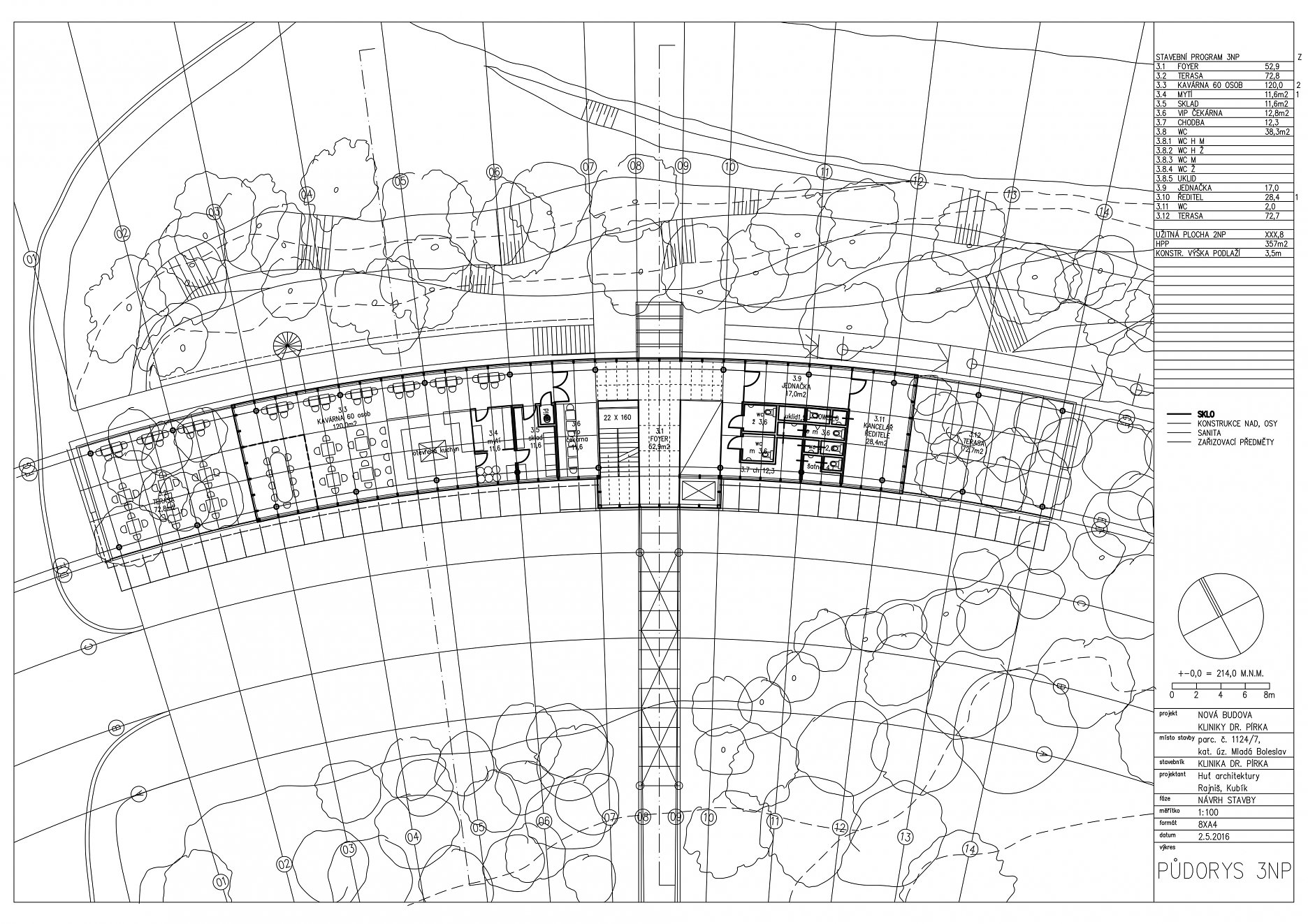 "Klinika Dr. Pírka nás na začátku roku 2016 vyzvala do soutěže. Zadání bylo vytvořit nemocnici, která zahrne prvky moderního zdravotnického zařízení a současně bude dýchat přátelským prostředím. Dalším předpokladem bylo vytvořit projekt, jenž bude citlivě zasazen do přírodního prostředí lesoparku v bezprostřední blízkosti skály," vysvetľuje Martin Rajniš.