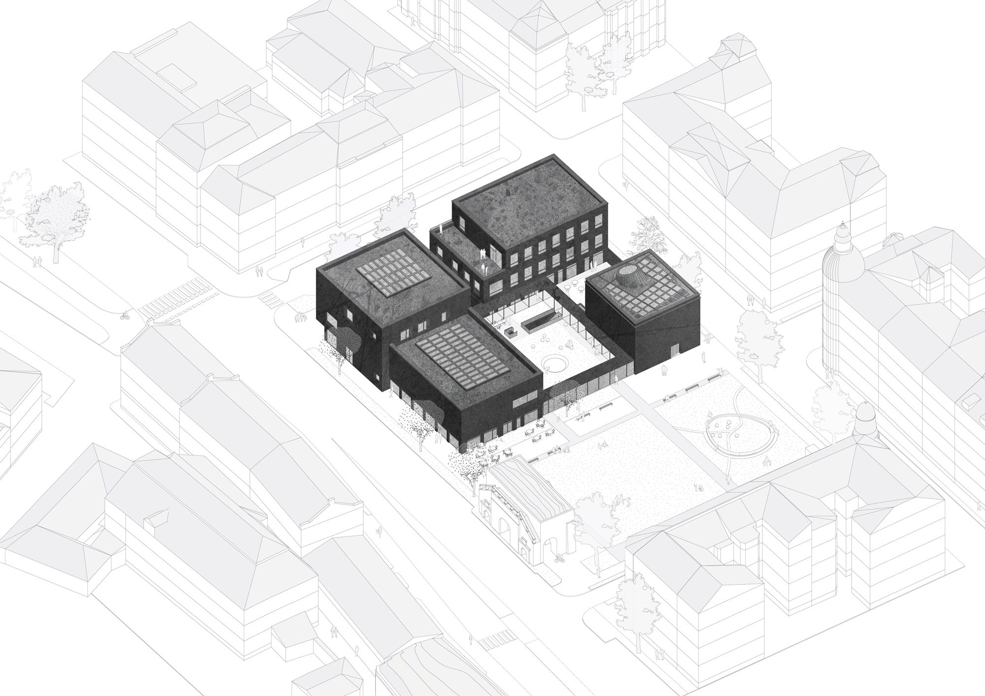 Výsledkom je ponúknutie nového konceptu a perspektívy pre Židovskú obec v podobe prelínania priestorov od súkromného (synagóga s malou záhradou), cez polo-súkromný (nádvorie), až po verejný (námestie s parkom) a tri vďaka týmto priestorom komunikujúce objekty.
