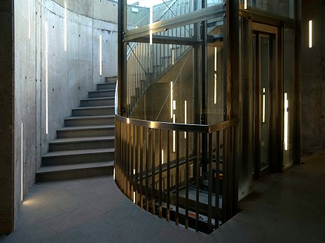 Budova obsahuje schodisko a výťah skryté za baštou Hóman. Výškový rozdiel medzi vonkajšou promenádou a vyvýšeným námestím pred Bazilikou je 10,5 m.