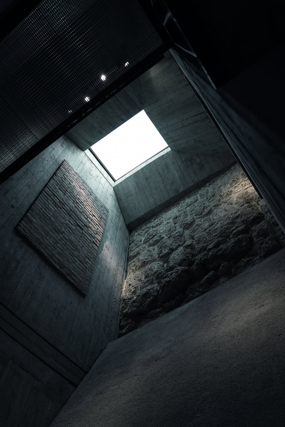 Priestory návštevníckeho centra sú vklinené medzi stredoveký múr a hradby z 20. storočia. Časti stredovekého múra sú odhalené a prezentované návštevníkom. O prístup denného svetla do priestoru schodiska sa stará obdĺžnikový svetlík. Steny z pohľadového betónu sa vyznačujú precíznym rastrom debniacich dosiek.