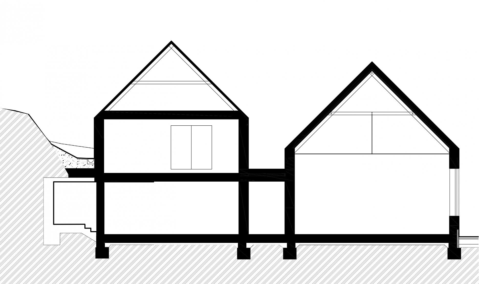Stavby sa nerozpínajú do krajiny. Oživujú jadro obce a revitalizujú miesto, ktoré stratilo svoju pôvodnú funkciu. Ich mierka a tvaroslovie nadväzuje na historickú urbanistickú štruktúru.