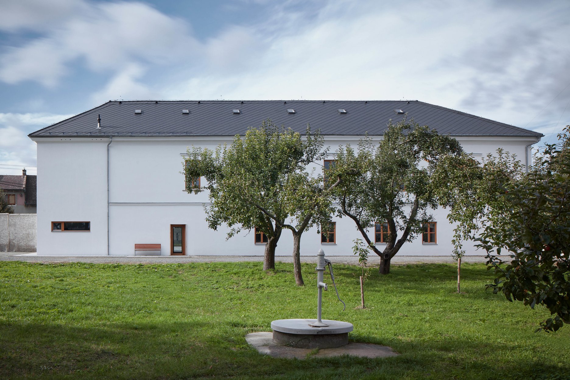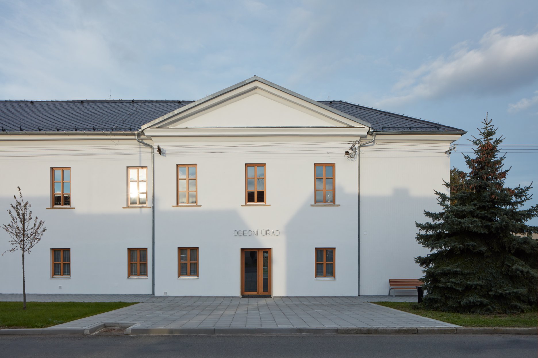 Malá obec v okrese Prostějov s 350 stálymi obyvateľmi sa pustila do náročného procesu rekonštrukcie dôležitej obecnej budovy. Kultivované architektonické riešenie ateliérov Public Atelier a Fuuze pracuje s historickými vrstvami, ktoré striedmo a citlivo dopĺňa o súčasné zásahy. Výsledkom sú reprezentatívne administratívne a kultúrne priestory v centre sídla.