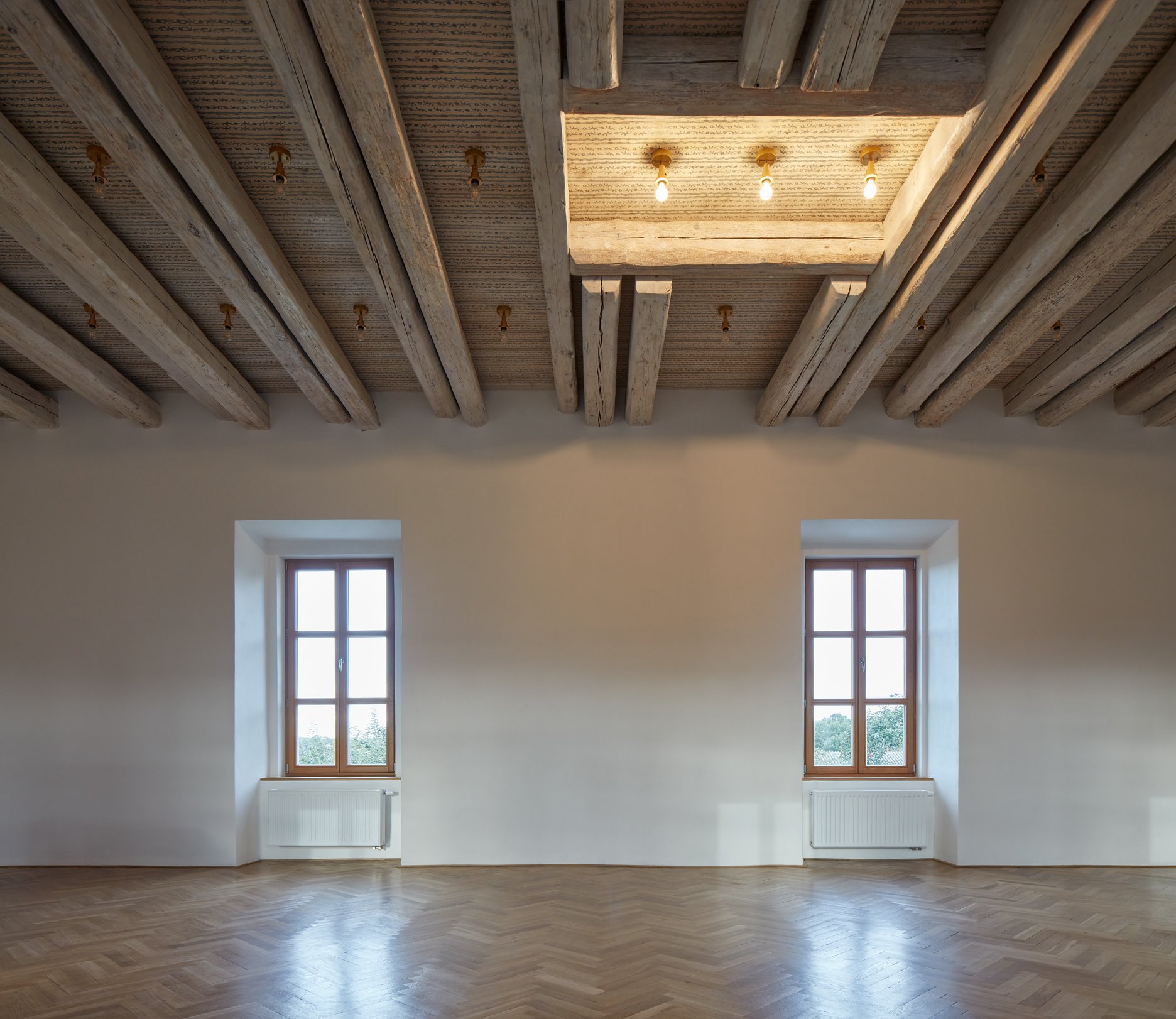 Vybúranie konštrukcií, ktoré na prízemí podopierali narušenú krížovú klenbu, spolu s následnou sanáciou statiky konštrukcie umožnili vytvoriť dôstojný vstupný priestor obecného úradu. S ohľadom na stav historickej konštrukcie bolo nevyhnutné vykonať sanáciu vlhkého muriva na prízemí a statickú stabilizáciu viacerých porúch na objekte. V chúlostivom stave sa nachádzal najmä krov, ktorý bol na základe rozhodnutia zastupiteľstva obce nahradený novým. Dominantou poschodia úradu je spoločenská sála. Za účelom zlepšenia akustiky a zvýšenia svetlej výšky priestoru odstránili architekti podhľad a obnažili pôvodné trámy. Vzor, ktorý technikou valčekovania realizovala na trámovom strope brnianska maliarka Lenka Pilařová, evokuje dobovú renesančnú výzdobu a pripomína históriu objektu. Pôvodné členenie trámov zostáva v spoločenskej sále čitateľné. Vstupná chodba bola rozšírená a môže dnes v nadväznosti na susediaci výčap fungovať ako priestranné predsálie.