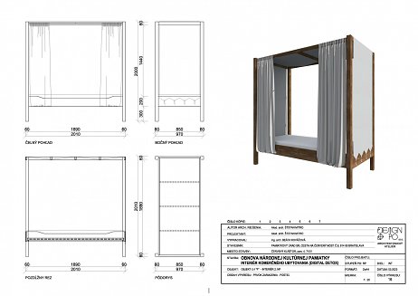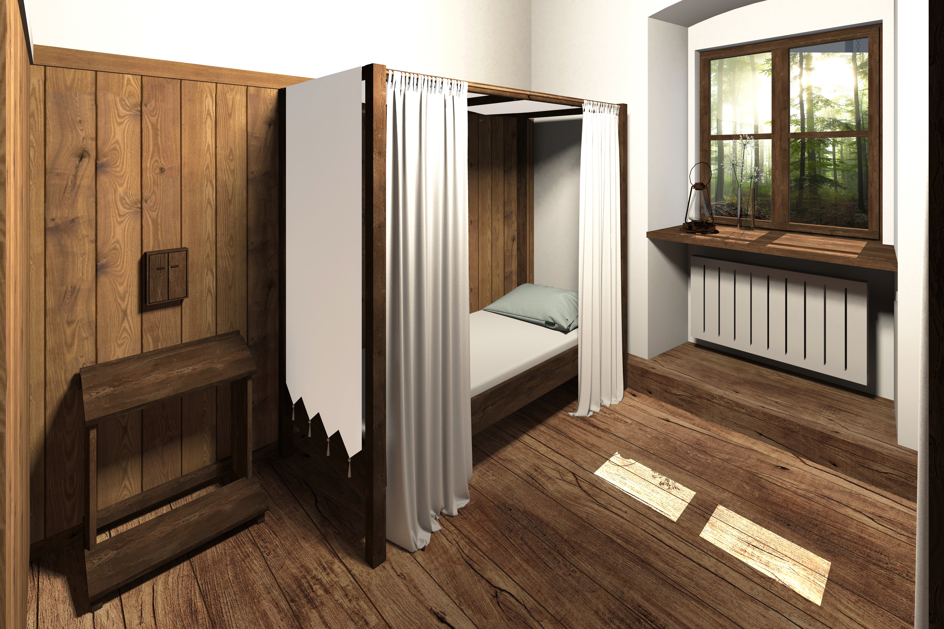 Materiály zostávajú autentické: smrekové a jedľové rezivo po kefovaní je upravené olejovo-voskovými nátermi; textílie (baldachýn, závesy) sú z ľanovej či bavlnenej metráže v prirodzenej farebnosti.
