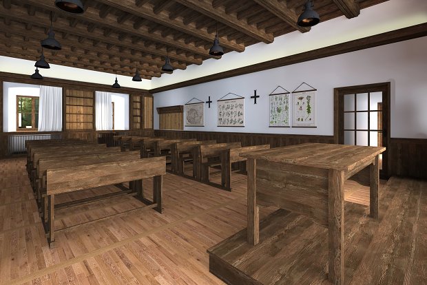 Vizualizácie interiéru kláštornej školy a v Rákociho krídle: