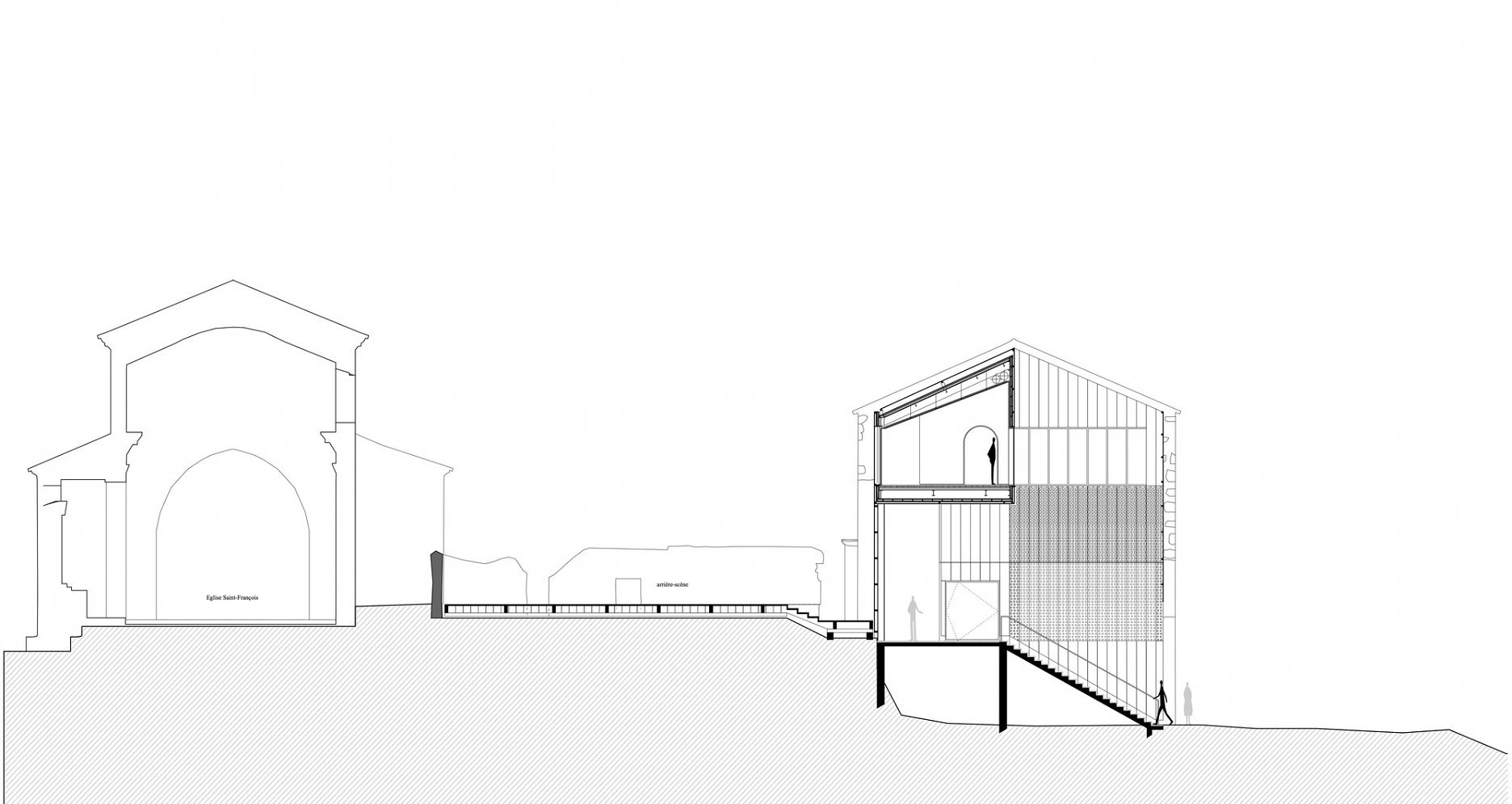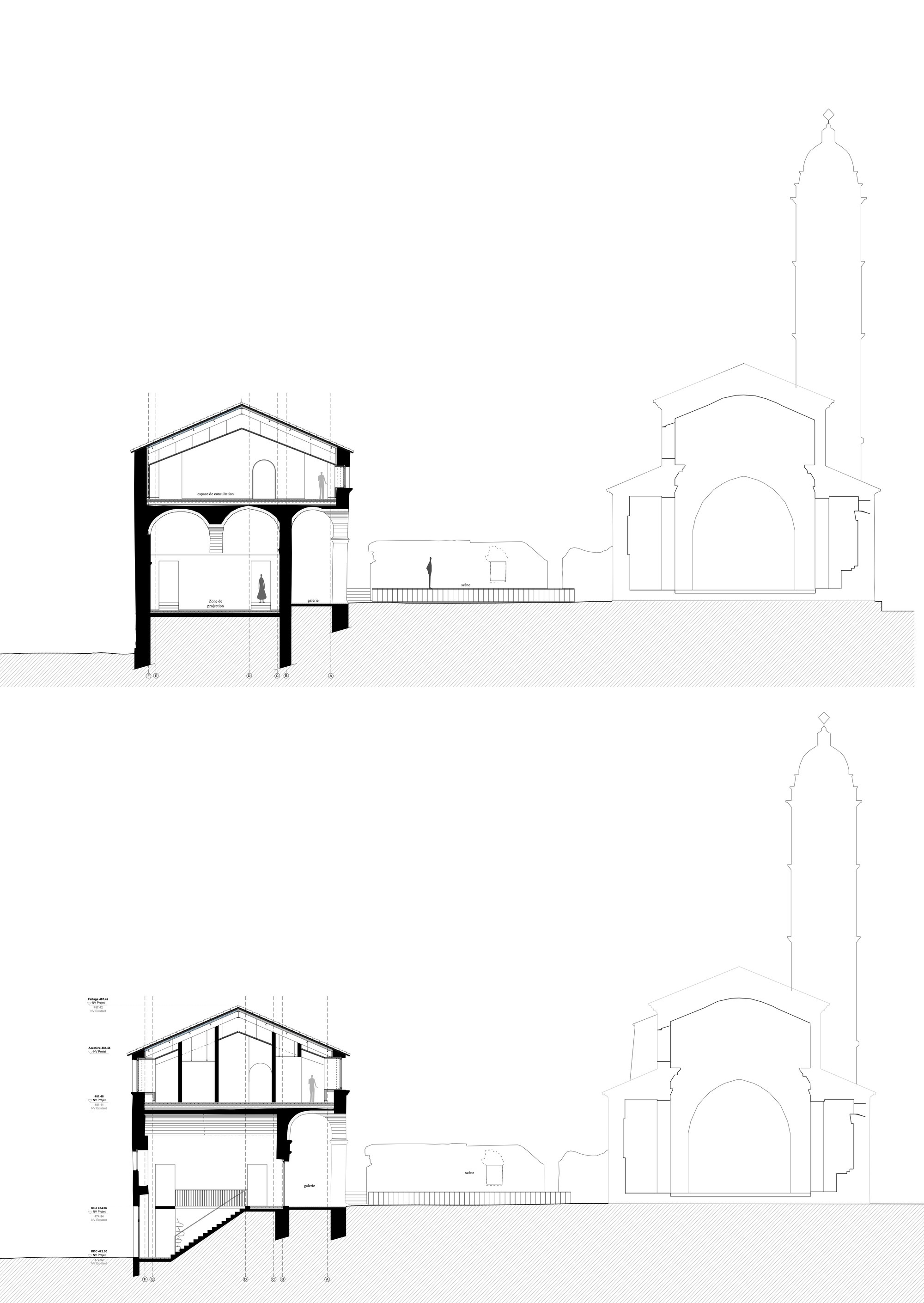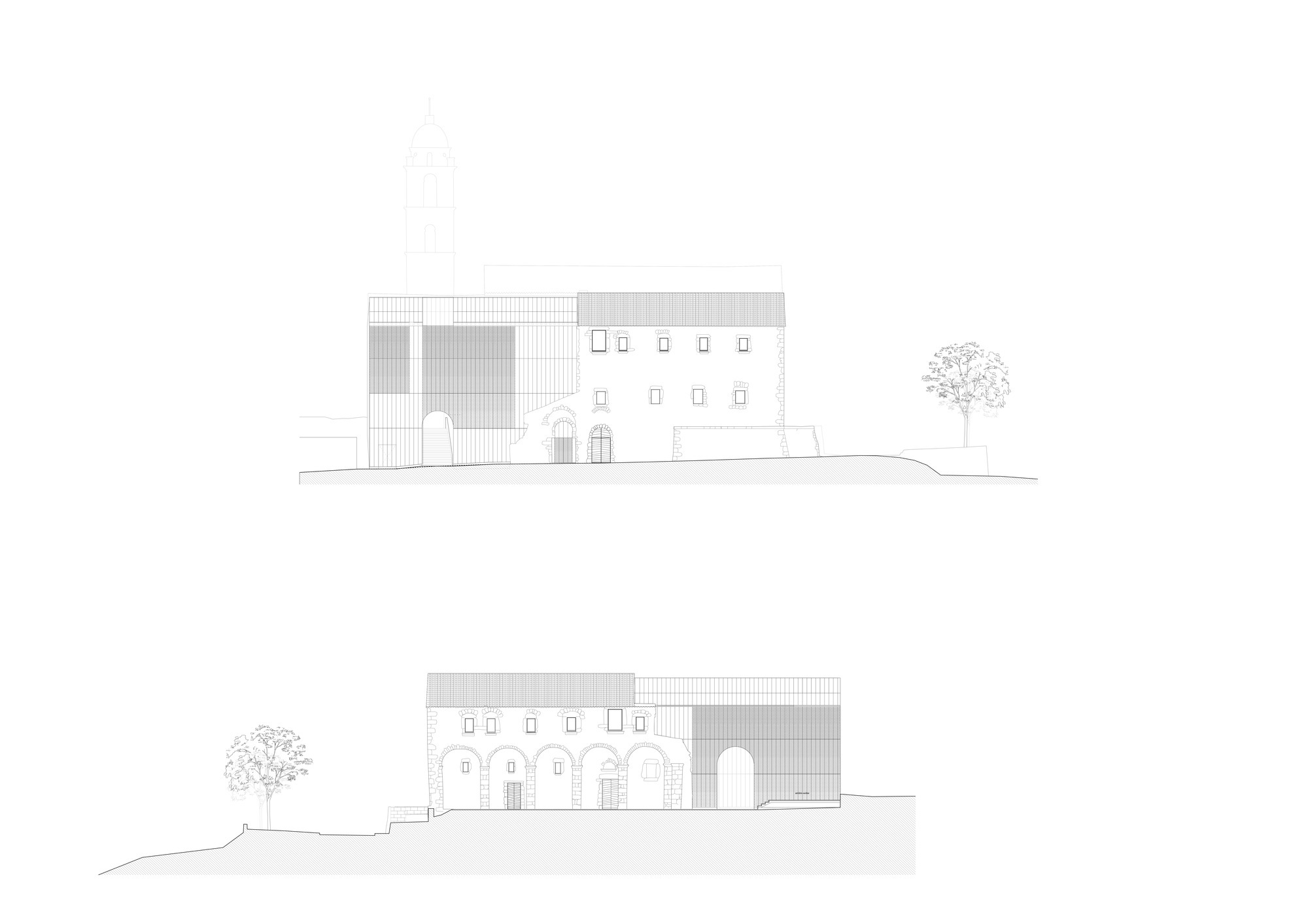 Už prvá obhliadka lokality utvrdila architektku Ameliu Tavella v tom, že pri rekonštrukcii chce zachovať pôvodný charakter ruiny, bez ďalších zásahov do historického muriva. Pre nový stavebný objem, ktorý kopíruje obálku pôvodnej stavby zvolila subtílnu nosnú oceľovú konštrukciu a hliníkové fasády, okapotované jednotiacou vrstvou medenej fasády.