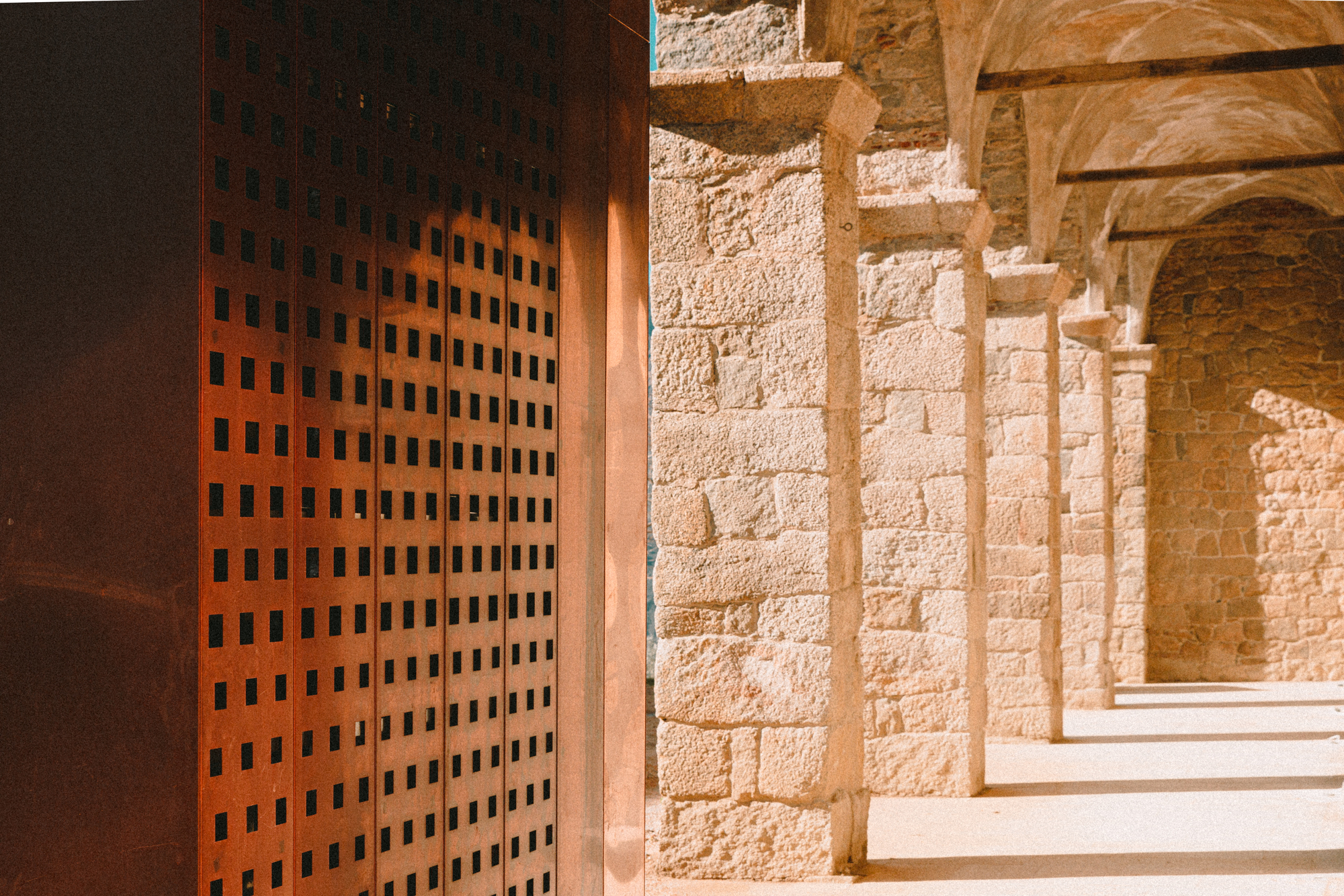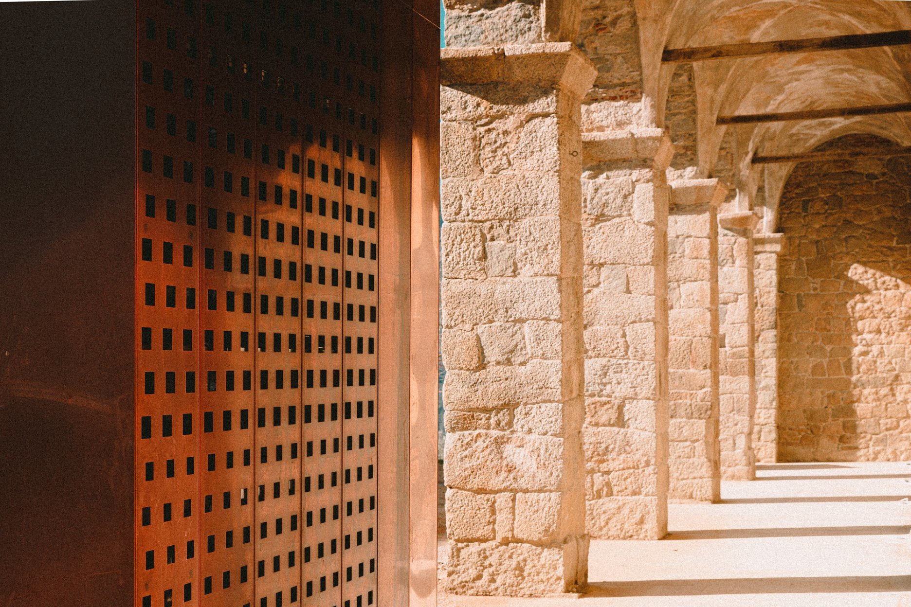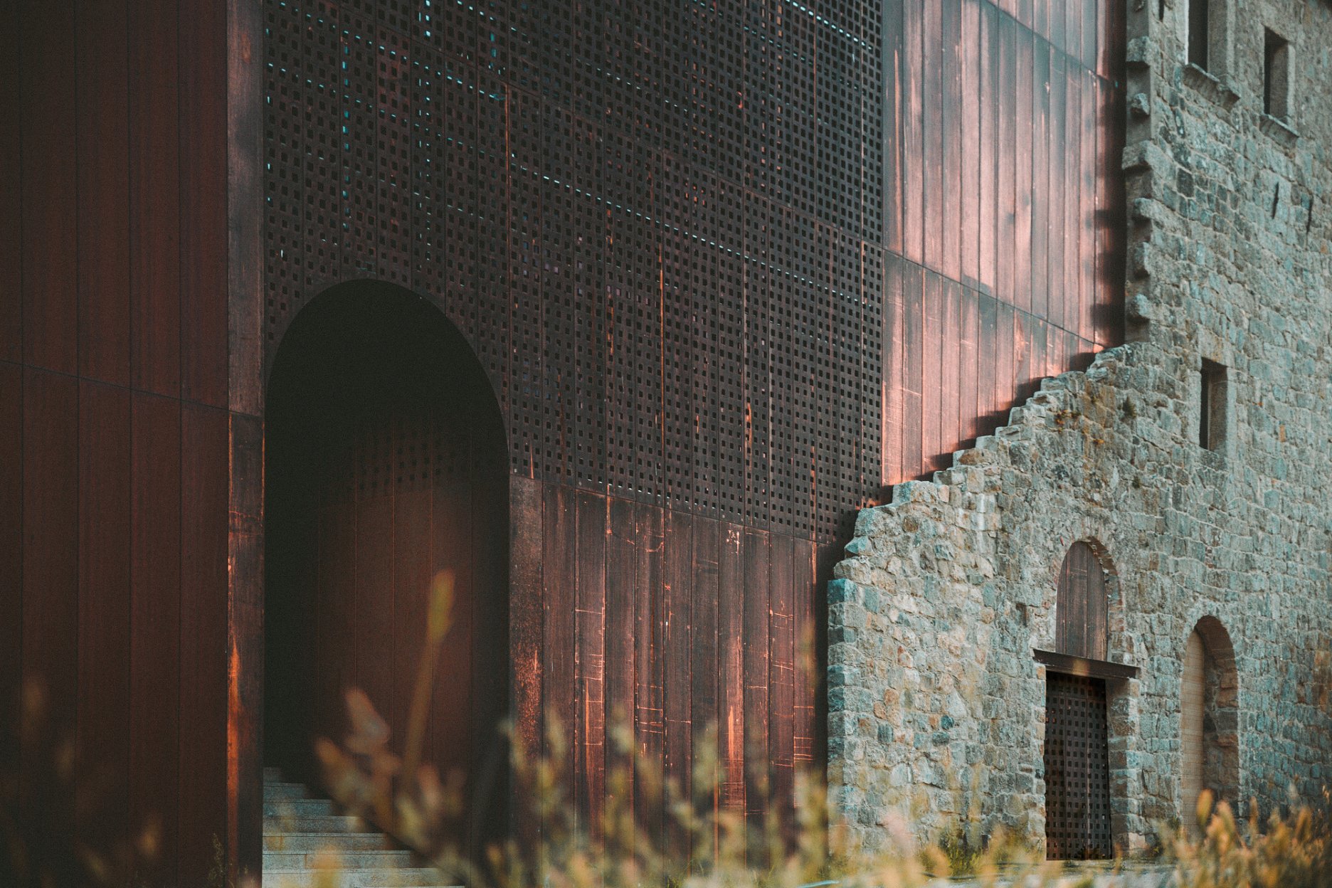 Dôležitú súčasť konceptu tvorí práca so svetlom, jeho lomom a striedanie plných a perforovaných segmentov. Pohľad z priľahlého olivového hája do hlbokého údolia sa vďaka pribúdajúcej patine mení každým rokom. Už teraz však fasády nežiaria v lúčoch slnka, tak ako počas prvého roku a nové konštrukcie postupne splývajú s historickým žulovým murivom.