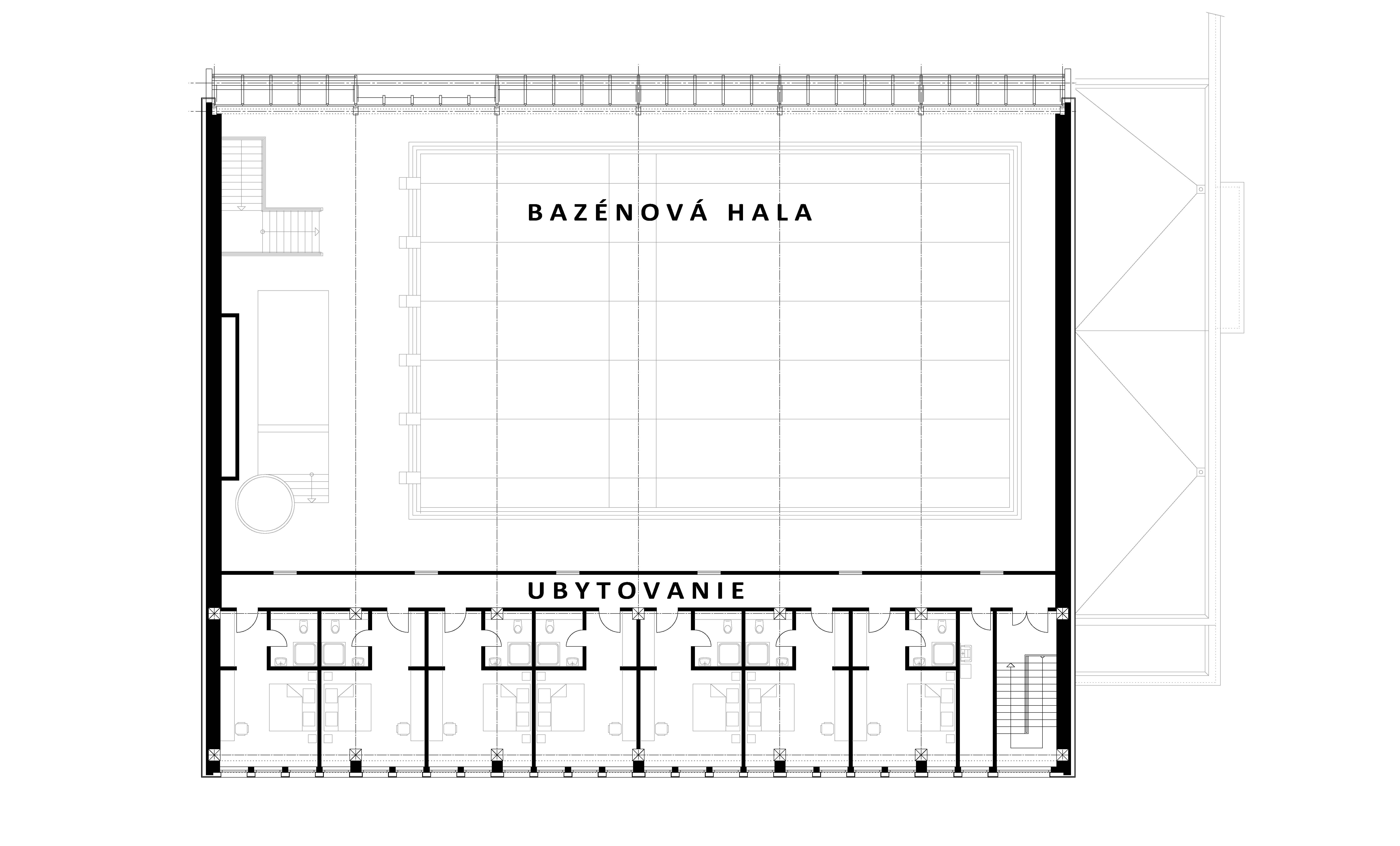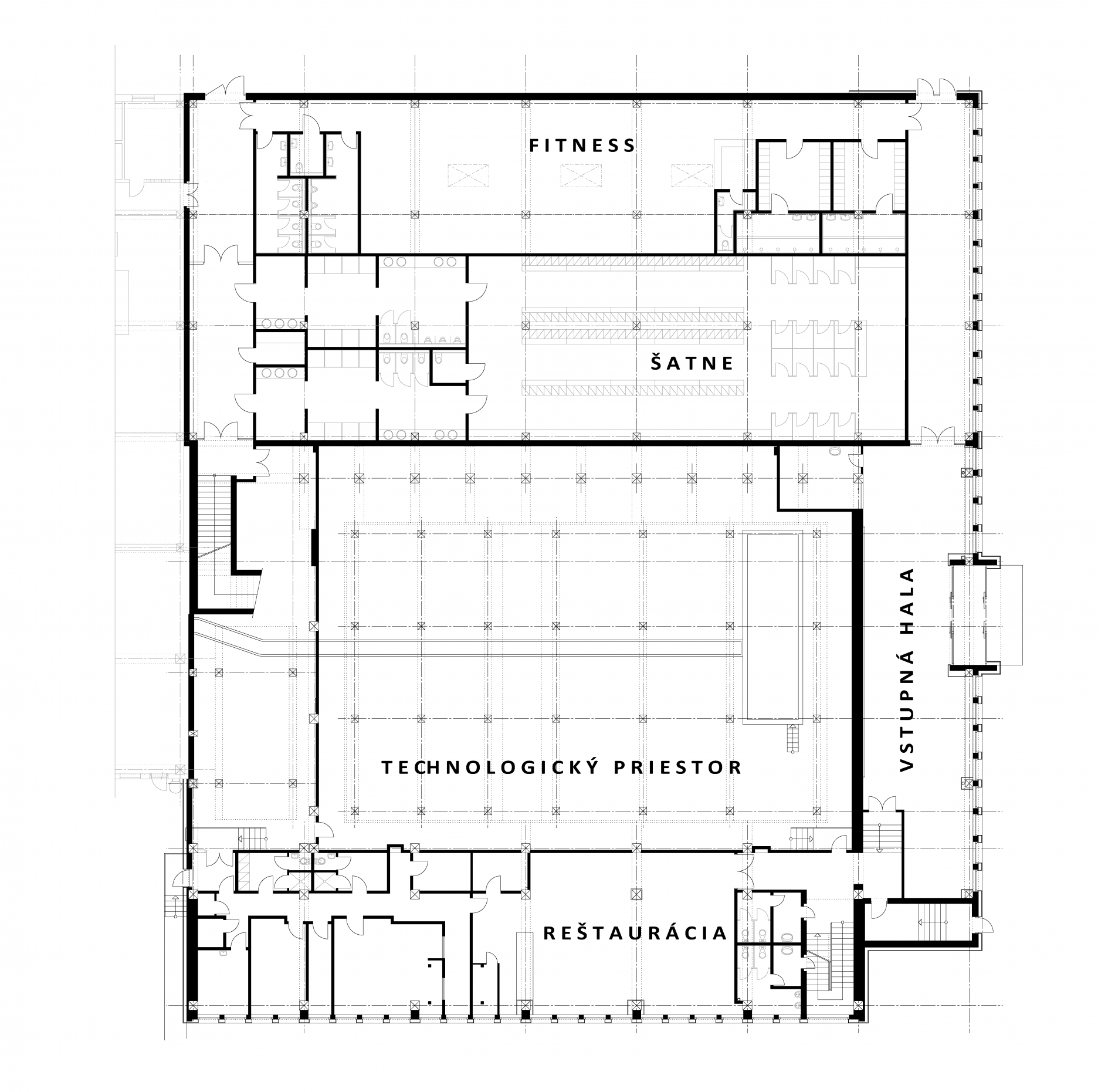 V roku 2016 sa však konečne pristúpilo k projekčným prácam na hlavnej časti objektu, pod ktorú patrí bazénová hala, technické zázemie pod priestorom bazénu, vstupný priestor a šatne. Cieľom bolo zachovanie existujúcej hmoty a funkčných tokov, s dôrazom na racionalizáciu priestorov, hľadanie plošných a funkčných rezerv, ktoré by pojali nové obslužné funkcie.