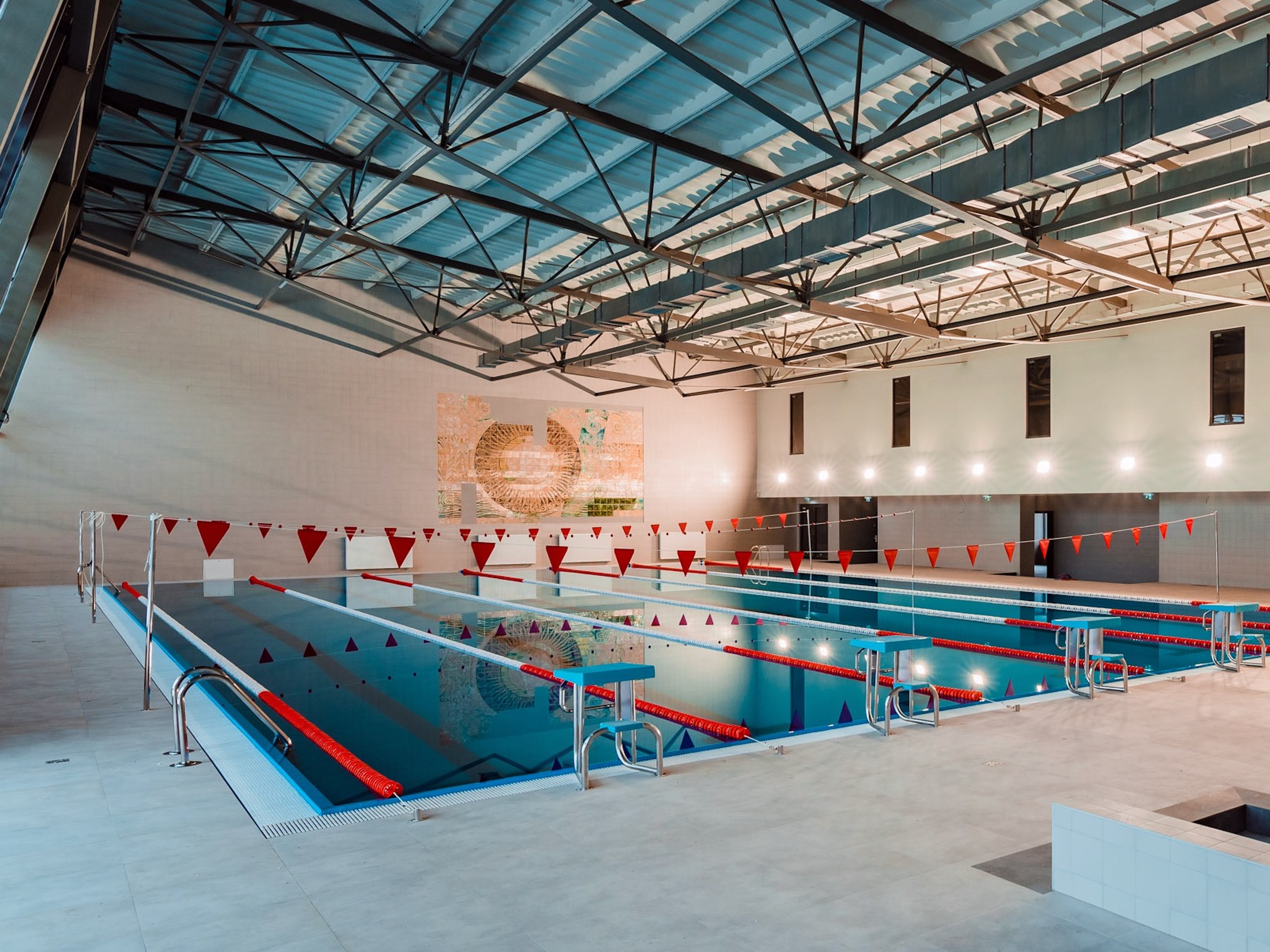 Plaváreň a nadväzujúci areál vodných športov susedí s mestským parkom. V blízkosti sa nachádza aj futbalový a zimný štadión. Celý komplex prešiel po dlhých rokoch chátrania zaslúženou obnovou. Rekonštrukcia zachovala pôvodnú funkciu a proporcie stavby.