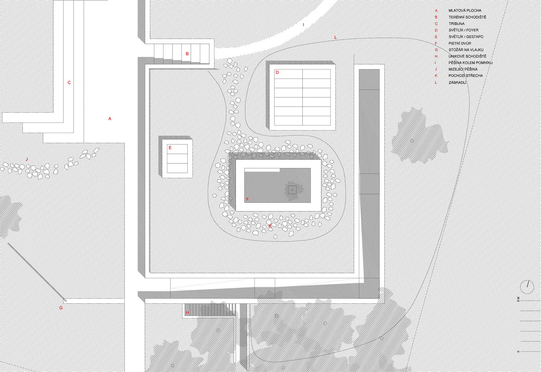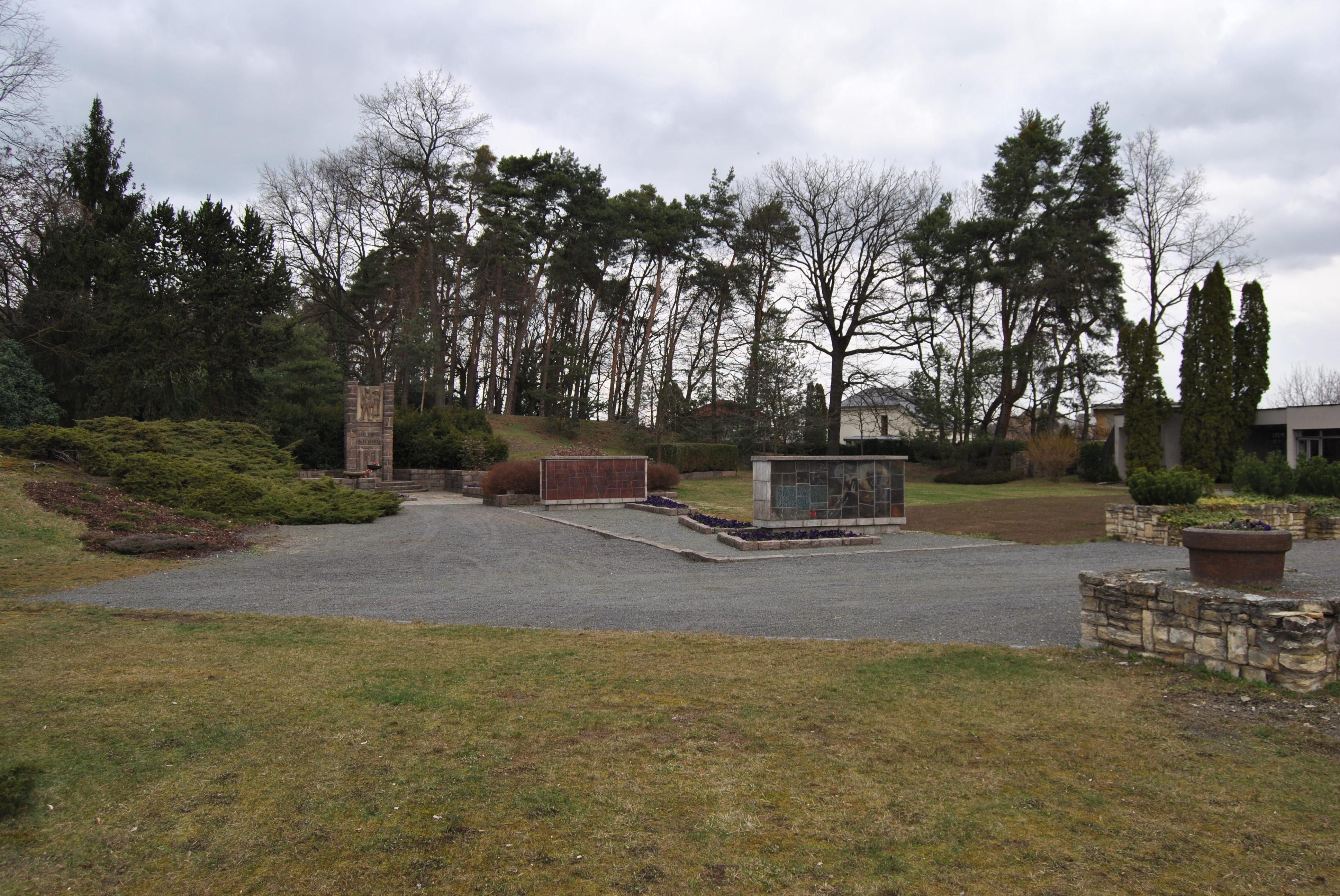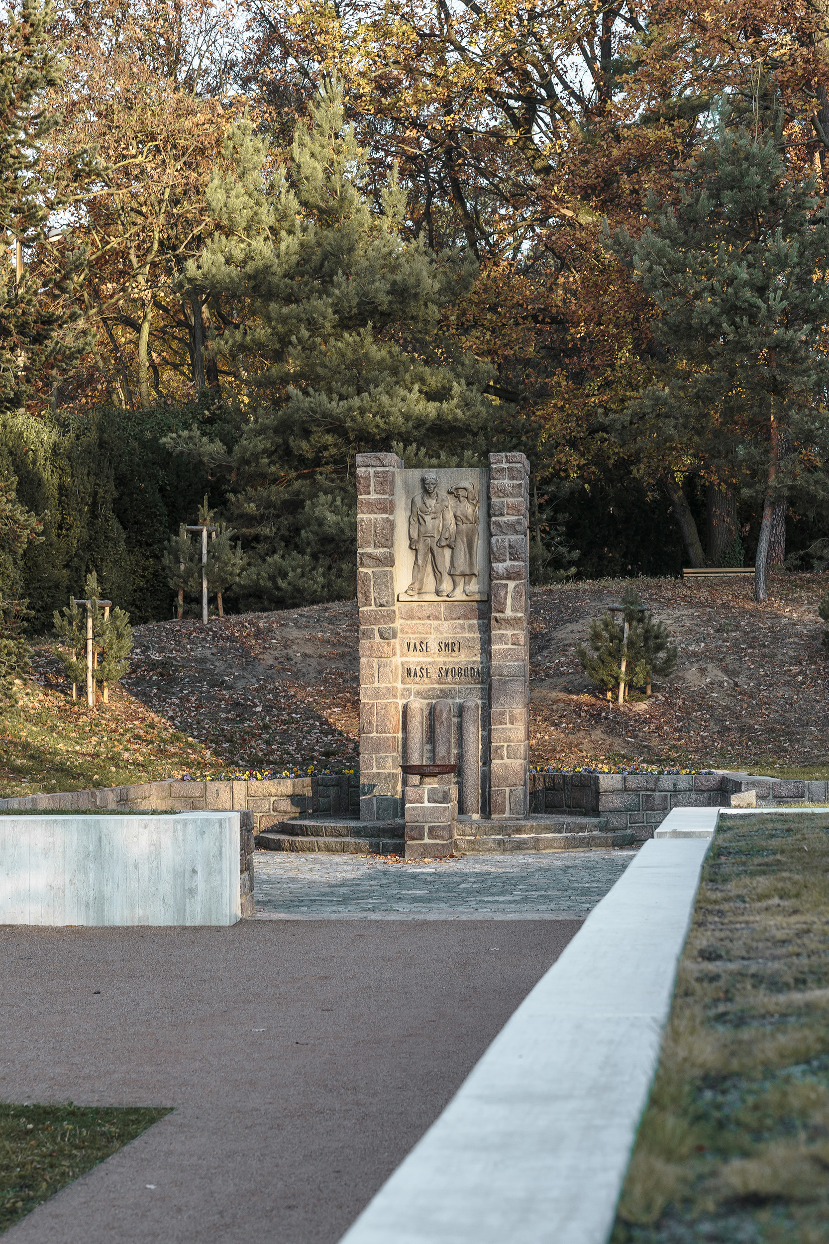 Základom novej kompozície sa stal pomník z roku 1949. Tvorí súčasť osi, na ktorej sa nachádza múzeum, prístupová rampa a tribúna na sedenie pri pietnych stretnutiach.