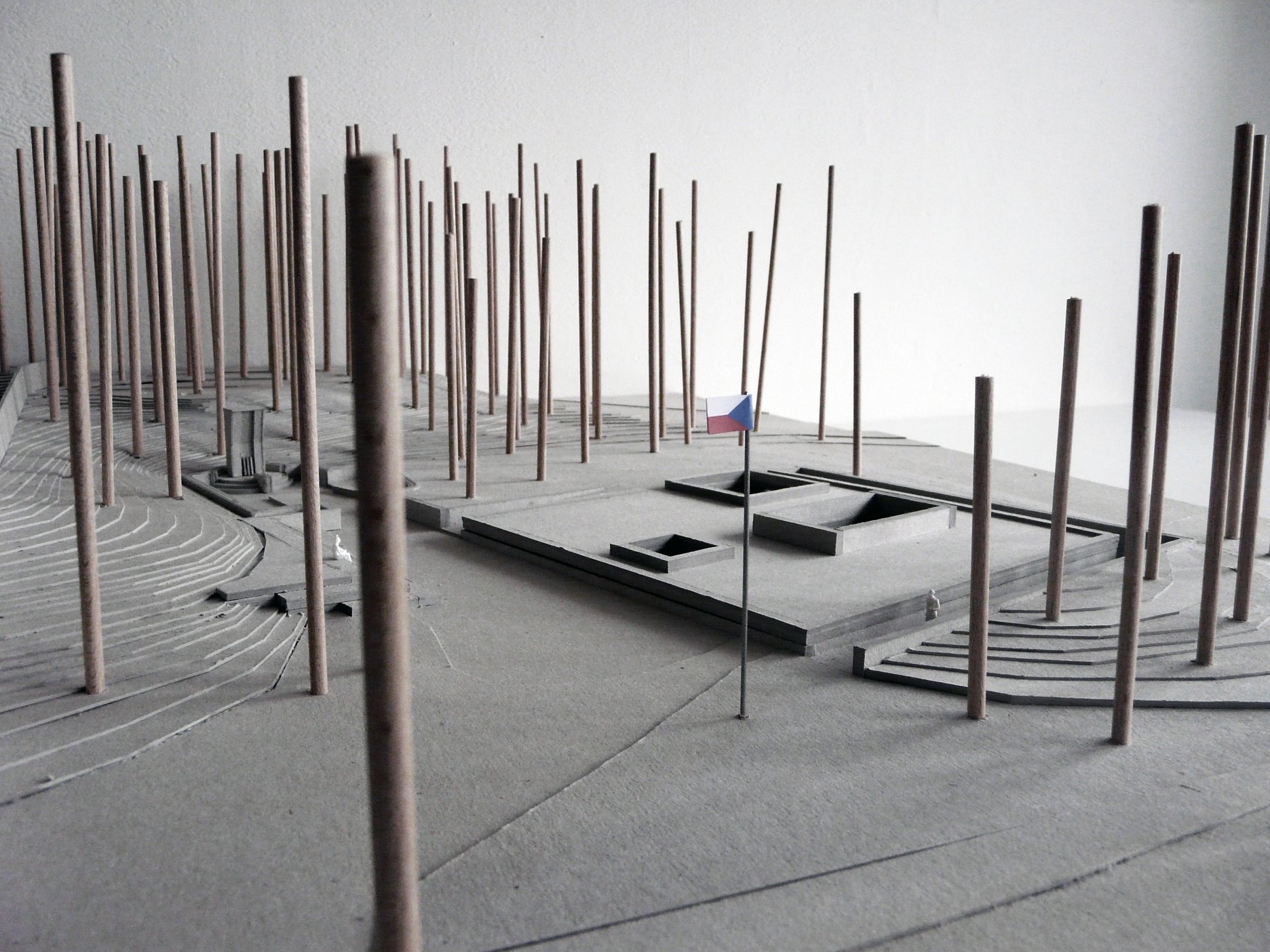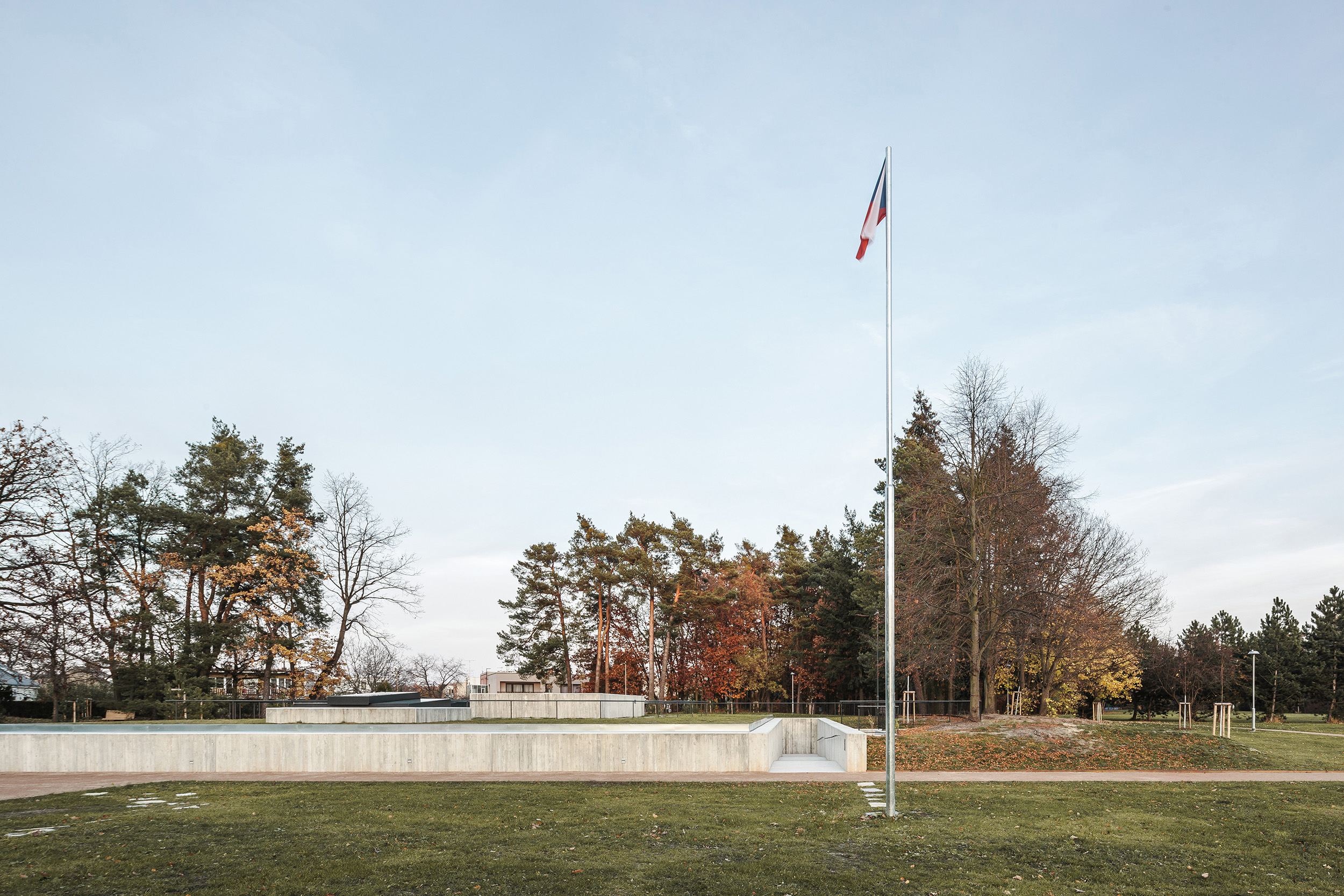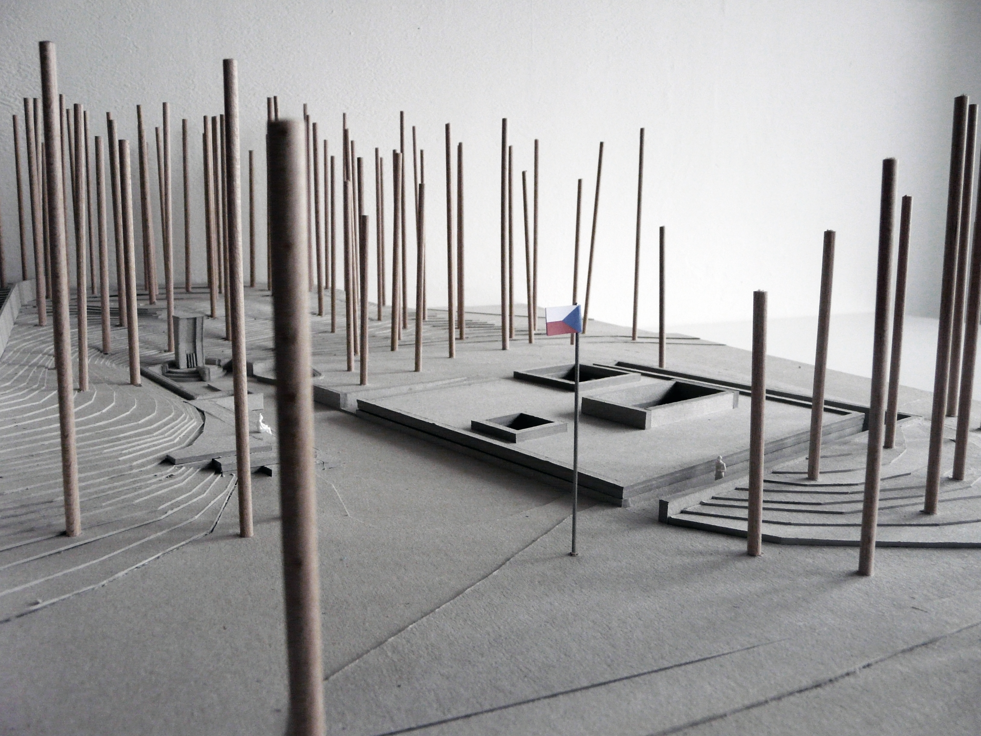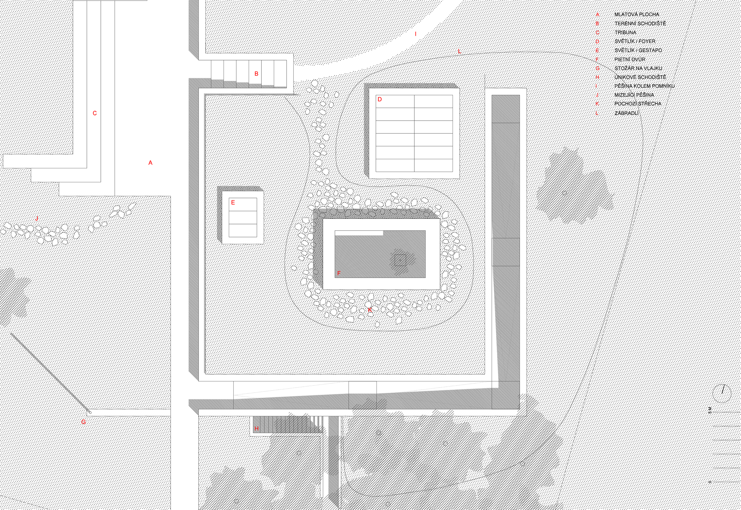 Základom novej kompozície sa stal pomník z roku 1949. Tvorí súčasť osi, na ktorej sa nachádza múzeum, prístupová rampa a tribúna na sedenie pri pietnych stretnutiach.
