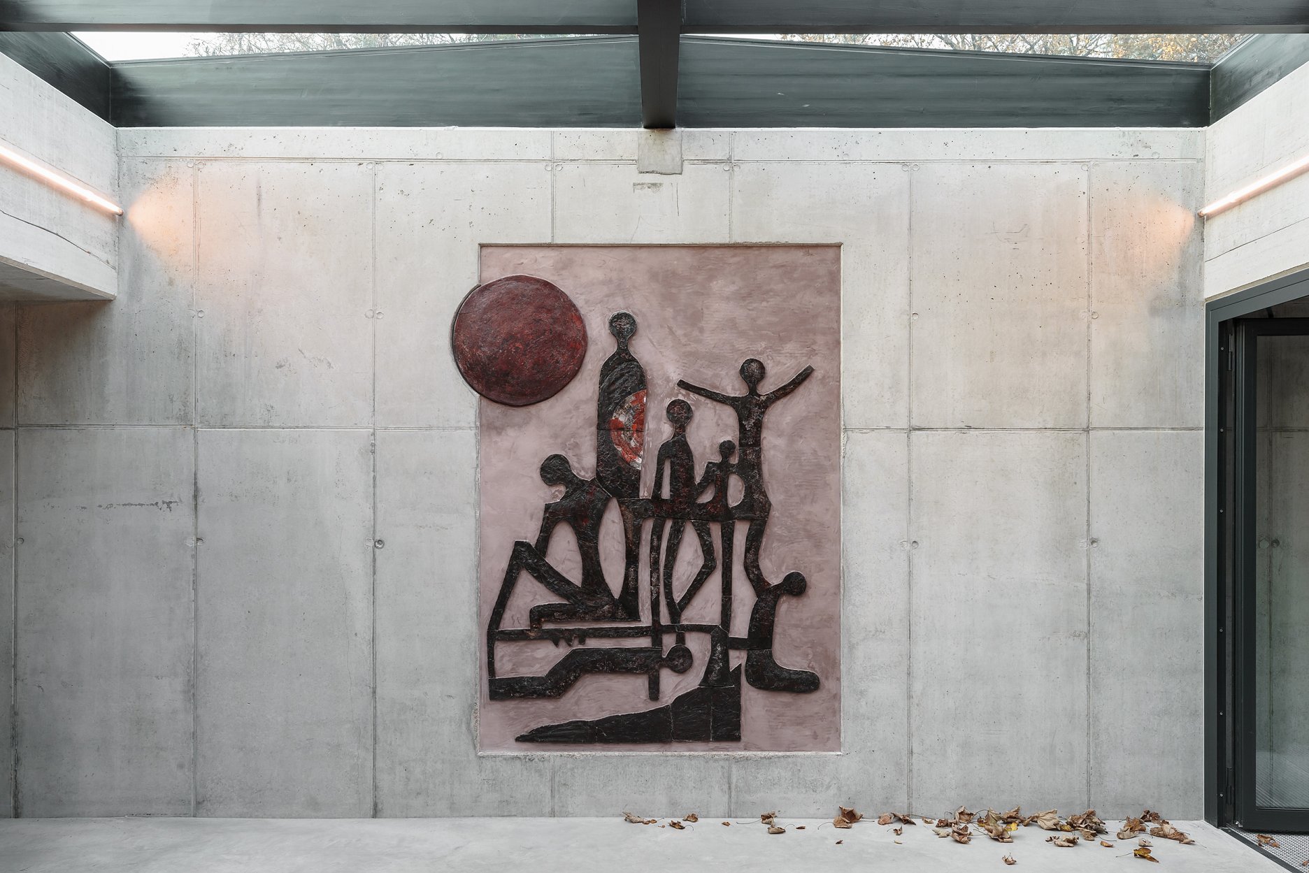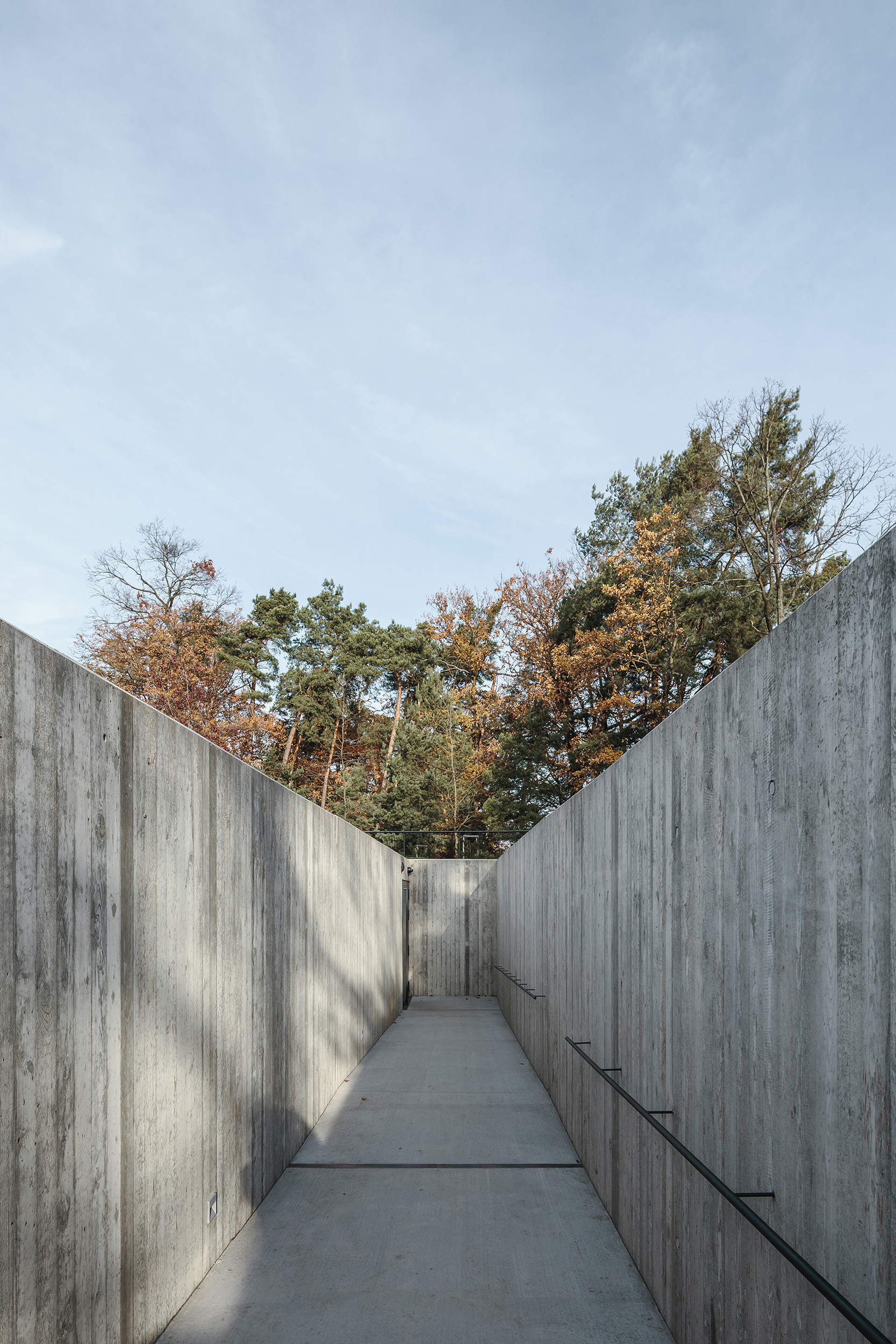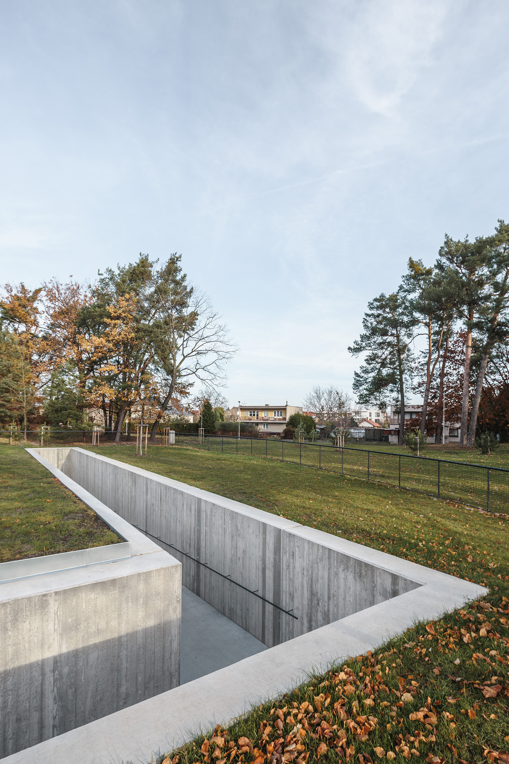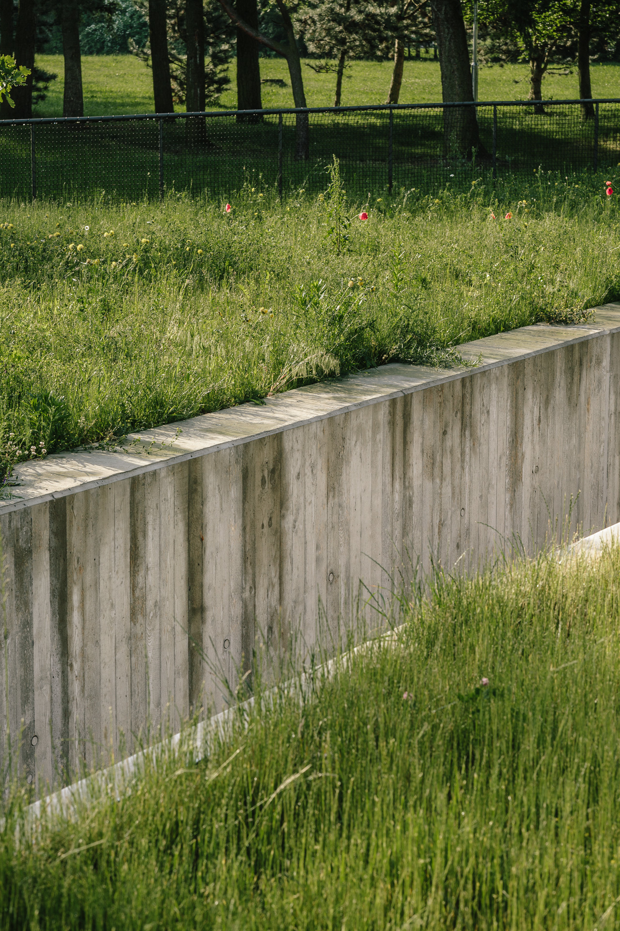 Samotné múzeum, vklinené medzi stromy, tvorí súčasť krajiny a nekonkuruje dominante pomníku. Monolitické steny sa strácajú pod zelenou strechou, prechádzajúcou do okolitej lúky. Objekt pôsobí skôr ako land-art než skutočný dom.