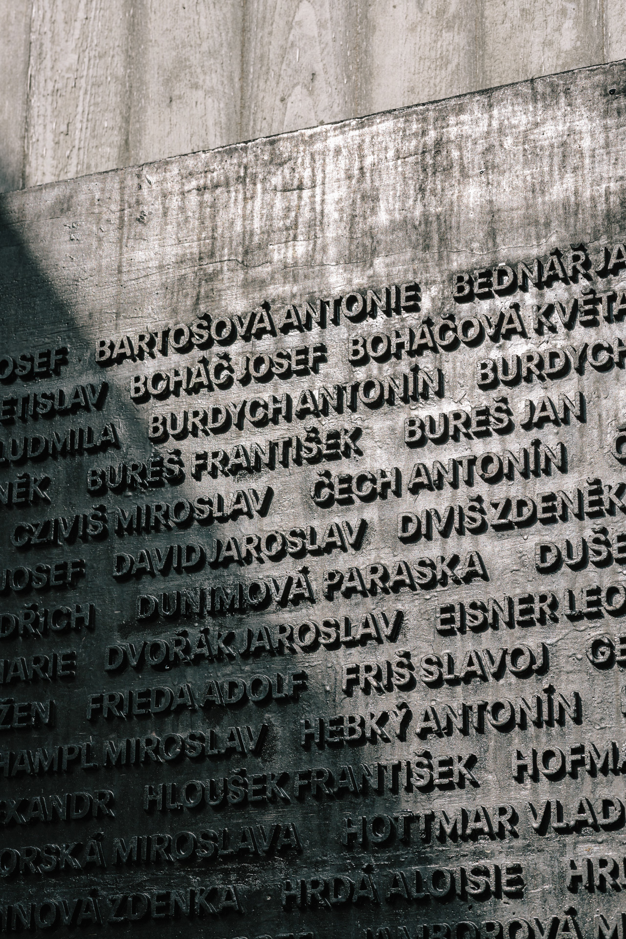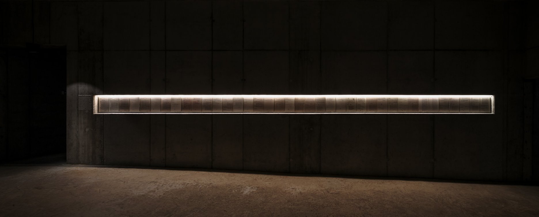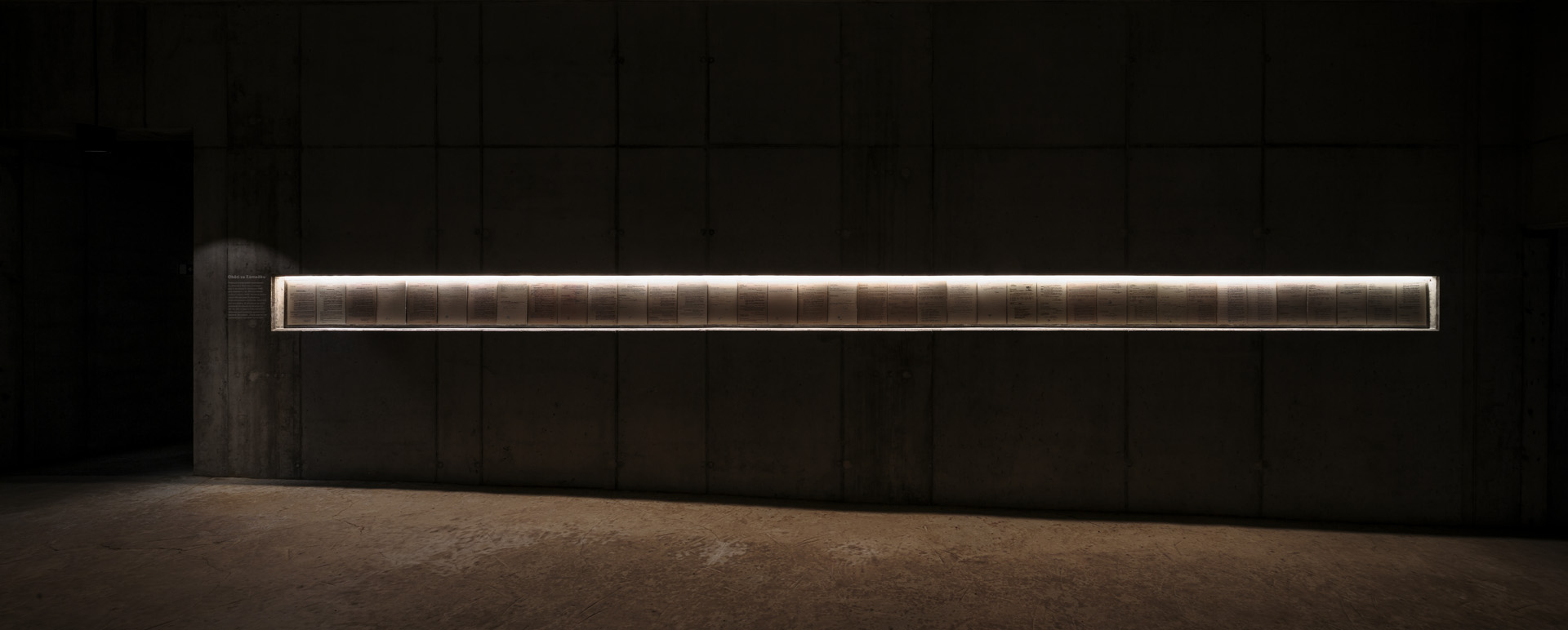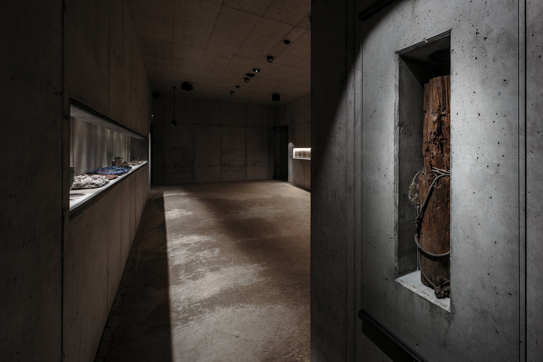 Potom sa opäť ponára do tmy a po rampe schádza do prázdneho priestoru venovaného obetiam. Tu sú na jednej strane vystavené predmety z popraviska a na druhej popravčie protokoly. Drásavú atmosféru umocňuje šikmá hlinená podlaha a chlad.