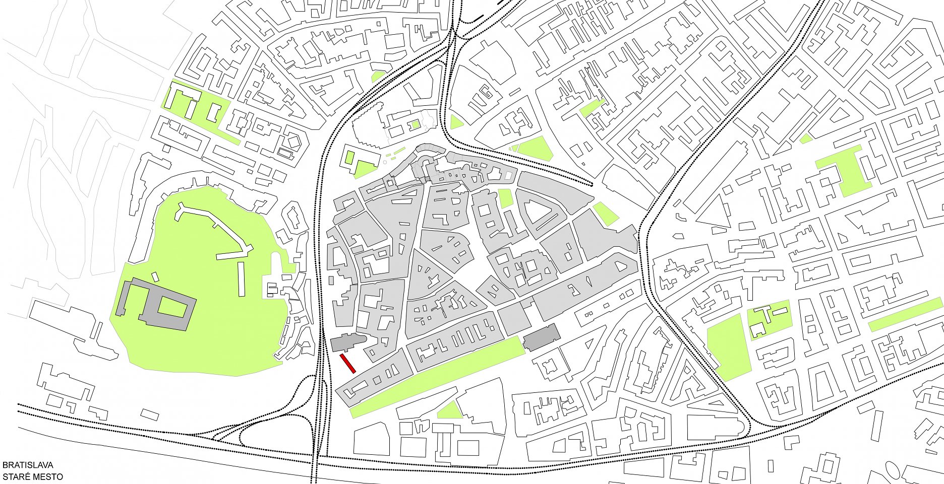 Návrh sa venuje oživeniu zabudnutej budovy, ktorá sa spája s dôležitou historickou skutočnosťou mesta Bratislavy. Dom je, ako jeden z posledných, vstavaný do priestoru medzihradia - "cvingru" - čo sa dá čítať na jeho západnej fasáde, a preto prináleží tomuto domu patričná úcta. Najideálnejšie využitie tohoto objektu počíta s umiestnením prevádzky kultúrnej inštitúcie, ktorá by poukazovala na ducha nielen tohoto domu ale aj celého historického centra niekdajšieho stredovekého Prešporku. Tichú a intímnu atmosféru interiéru umocňujú obnažené časti torza domu, ktoré dokumentujú jeho dlhovekosť a stabilitu starej bratislavskej pevnosti.